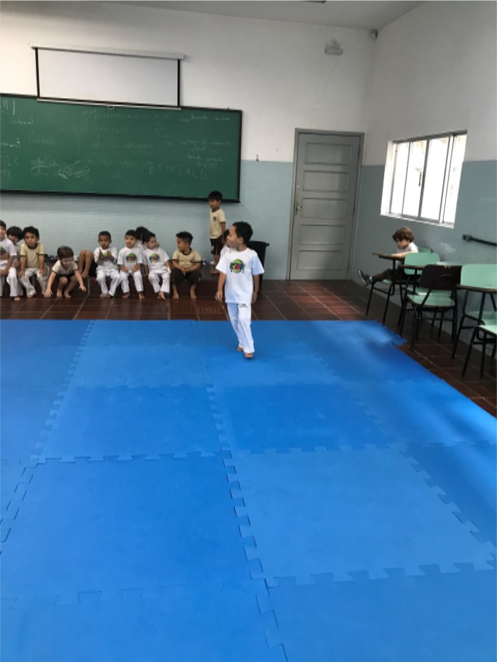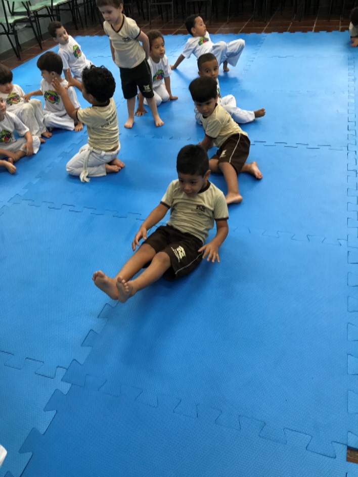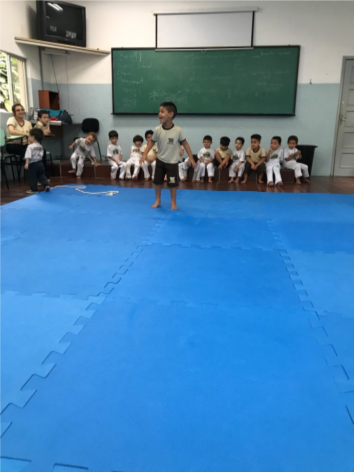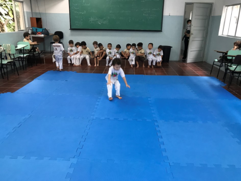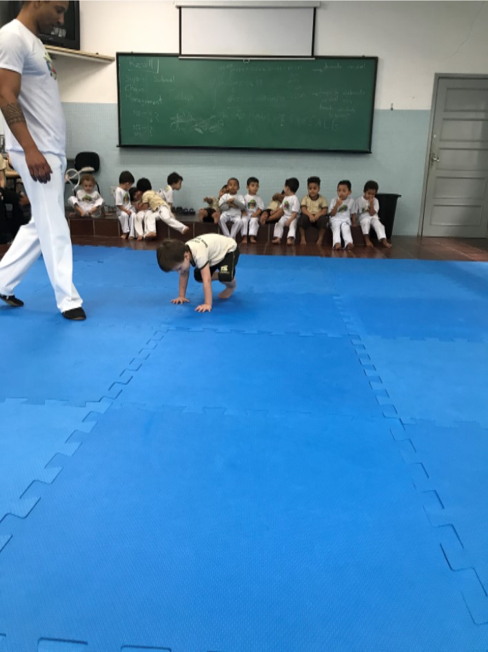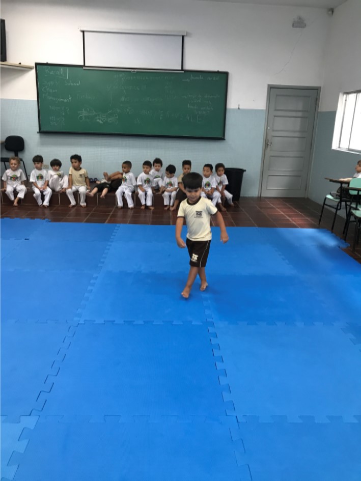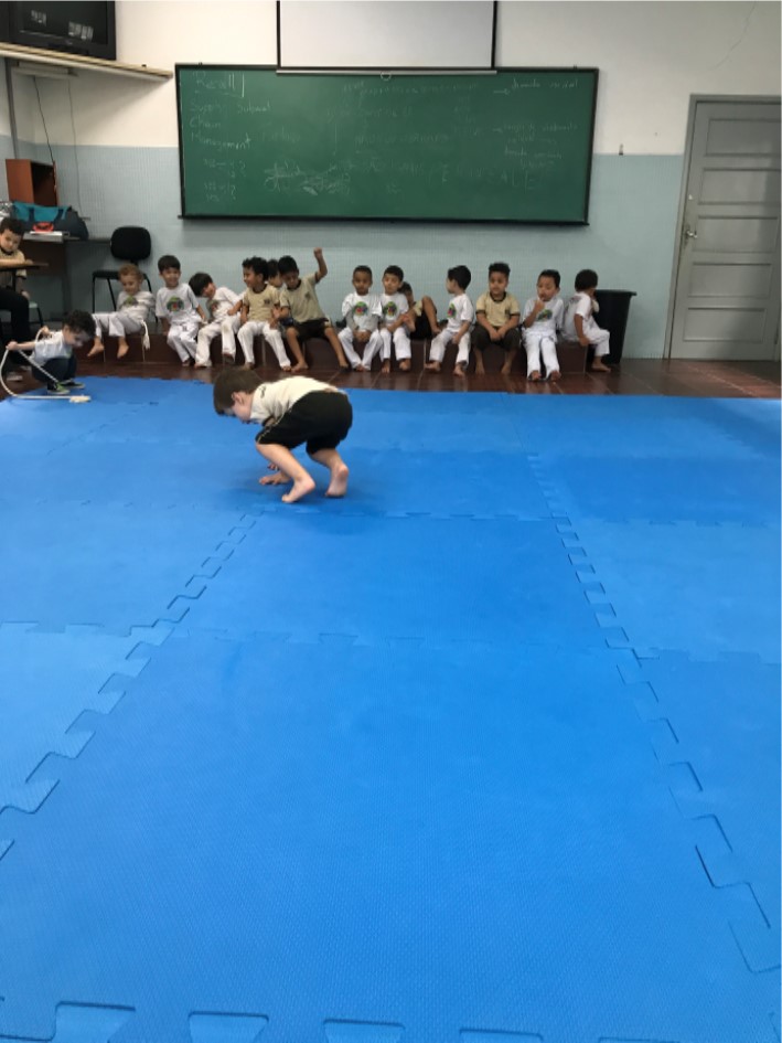 Uma das atividades consistia na execução de movimentos característicos como: a Ginga, movimento básico de Capoeira. Em vez de o capoeirista se fixar numa posição, ele está sempre em movimento, efetuando esta espécie de dança; “Au”, basicamente aquilo a que se chama uma roda, praticada normalmente na ginástica. Também conhecido como Au Regional é usado na Capoeira como uma forma rápida de fugir ou enganar o “adversário”;Cocorinha, que consiste em um método evasivo, nomeadamente consiste na forma de evitar pontapés circulares efetuados em curta distância. Neste movimento é necessário que a mão que toca no solo mantenha o equilíbrio, e, tal como em todos os movimentos e “jogo” capoeirista, é necessário manter sempre o contato visual com o adversário; e Parada de mão. “No Au e na Parada de Mão conseguimos trabalhar a coordenação motora de forma mais específica”, finalizou.
