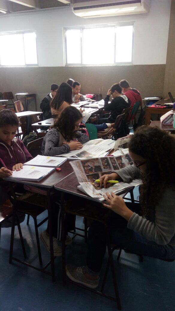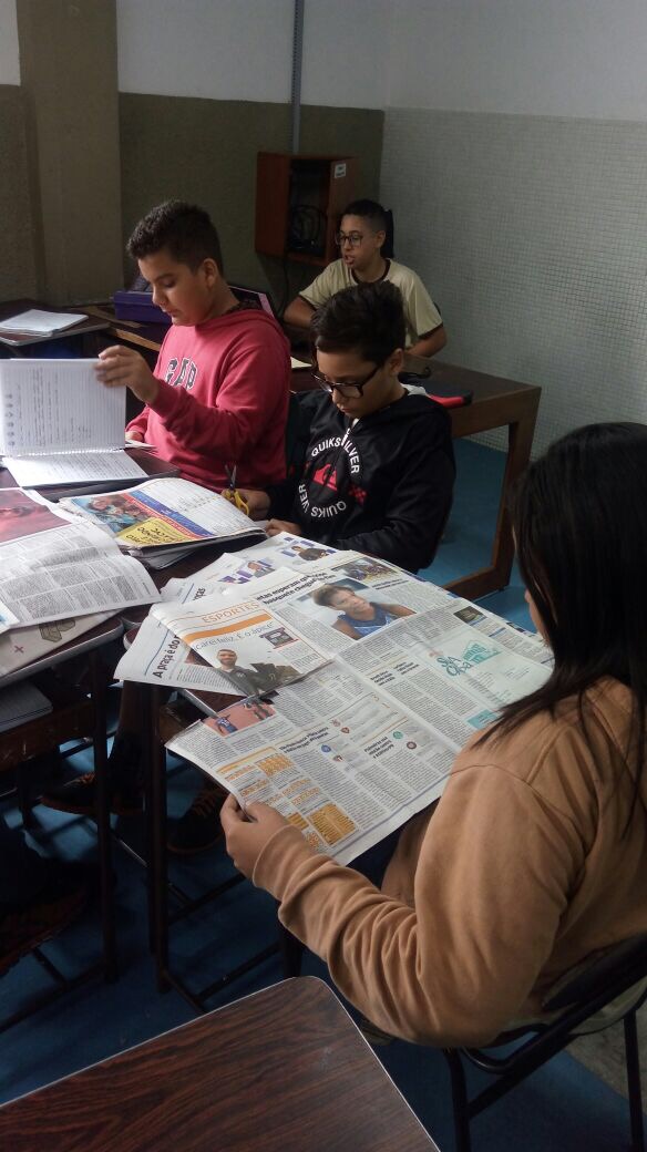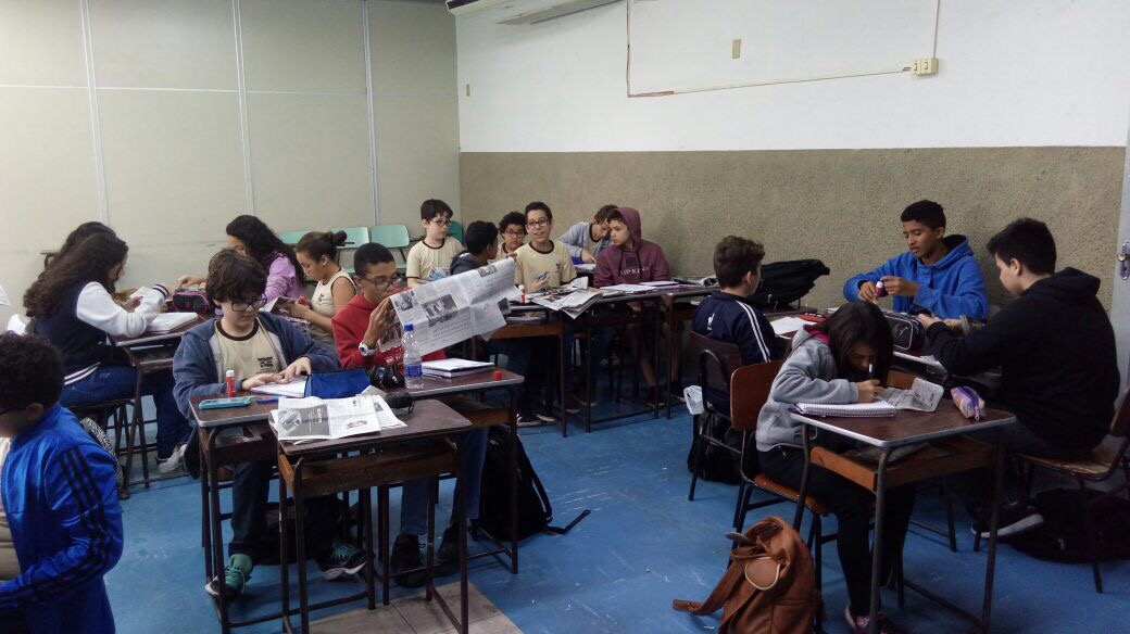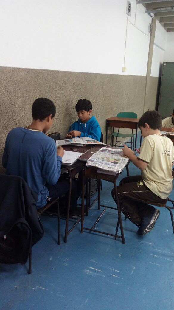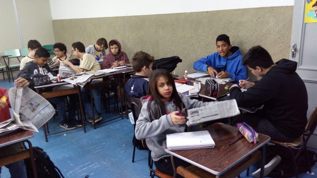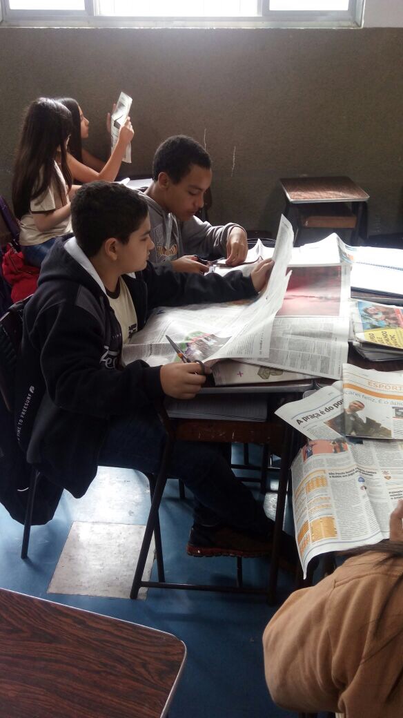 Já no 7 AM e 7BM os alunos participaram de uma atividade de leitura utilizando jornais. “É importante que os alunos se habituem com a linguagem utilizada em jornais e possam perceber a diferença que existe em relação a livros tradicionais e outras publicações”, destaca Ieda. Durante a atividade os alunos trabalharam diversas questões como leads, manchete, até a parte gramatical.