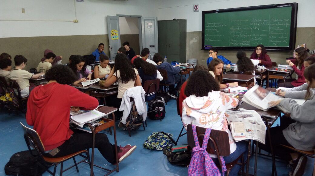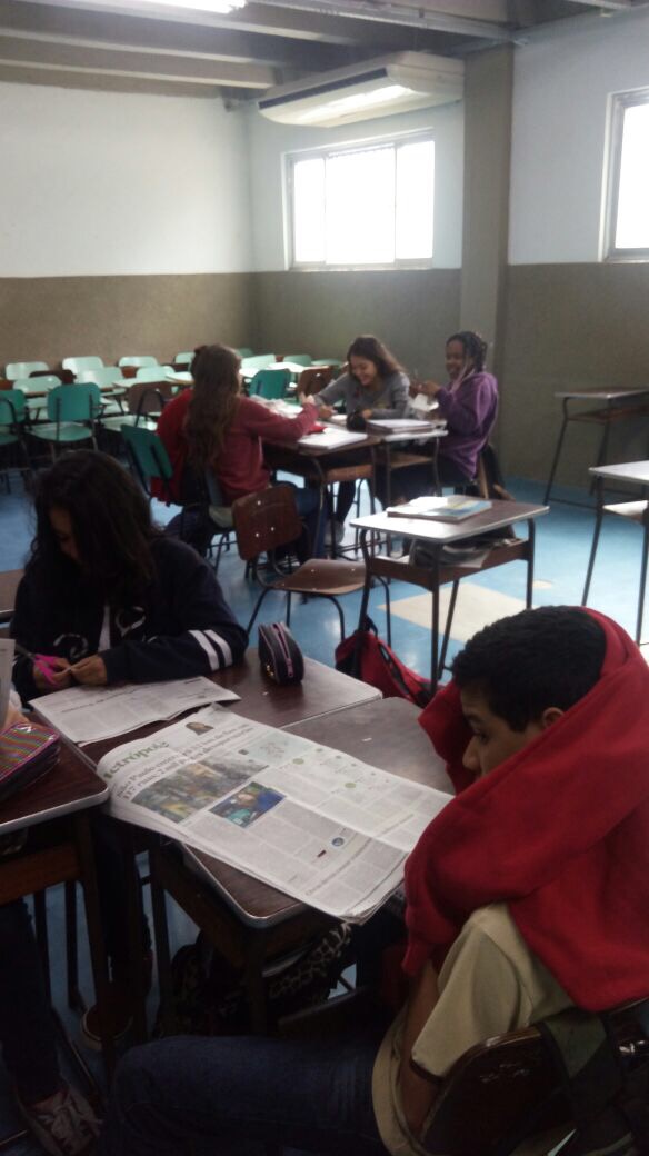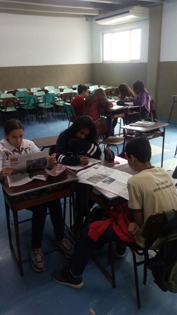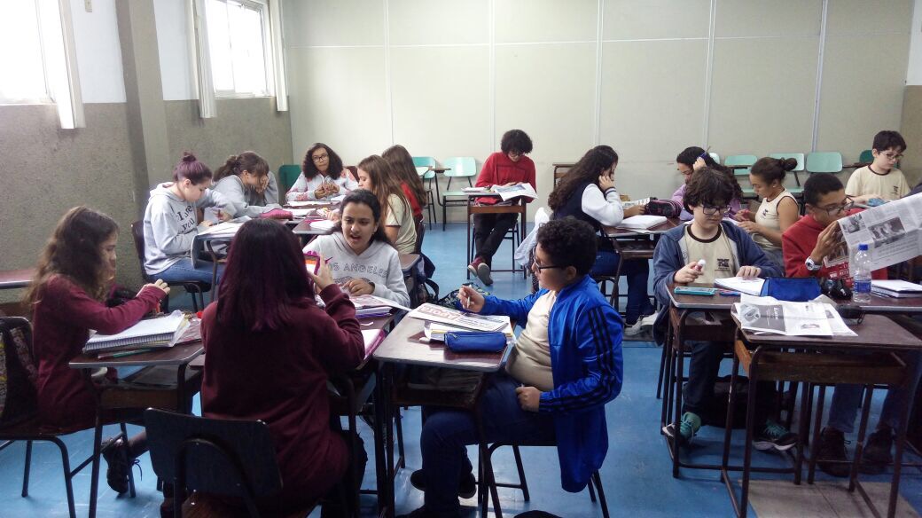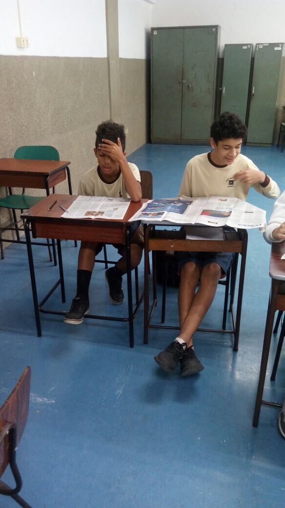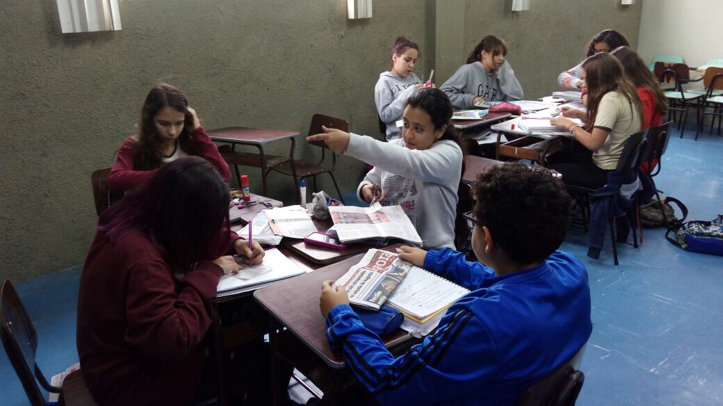Já no 7 AM e 7BM os alunos participaram de uma atividade de leitura utilizando jornais. “É importante que os alunos se habituem com a linguagem utilizada em jornais e possam perceber a diferença que existe em relação a livros tradicionais e outras publicações”, destaca Ieda. Durante a atividade os alunos trabalharam diversas questões como leads, manchete, até a parte gramatical.