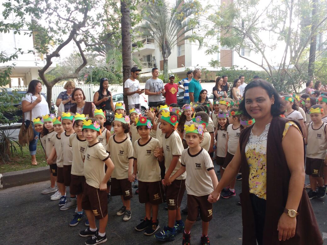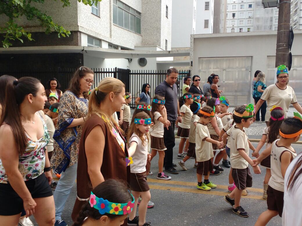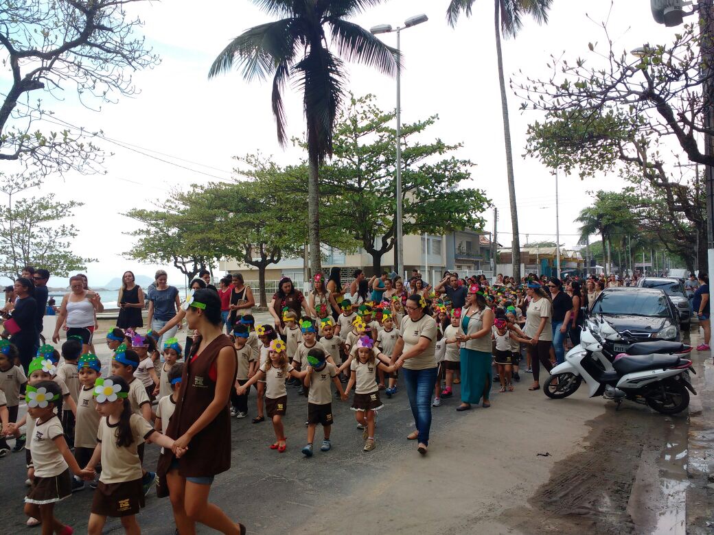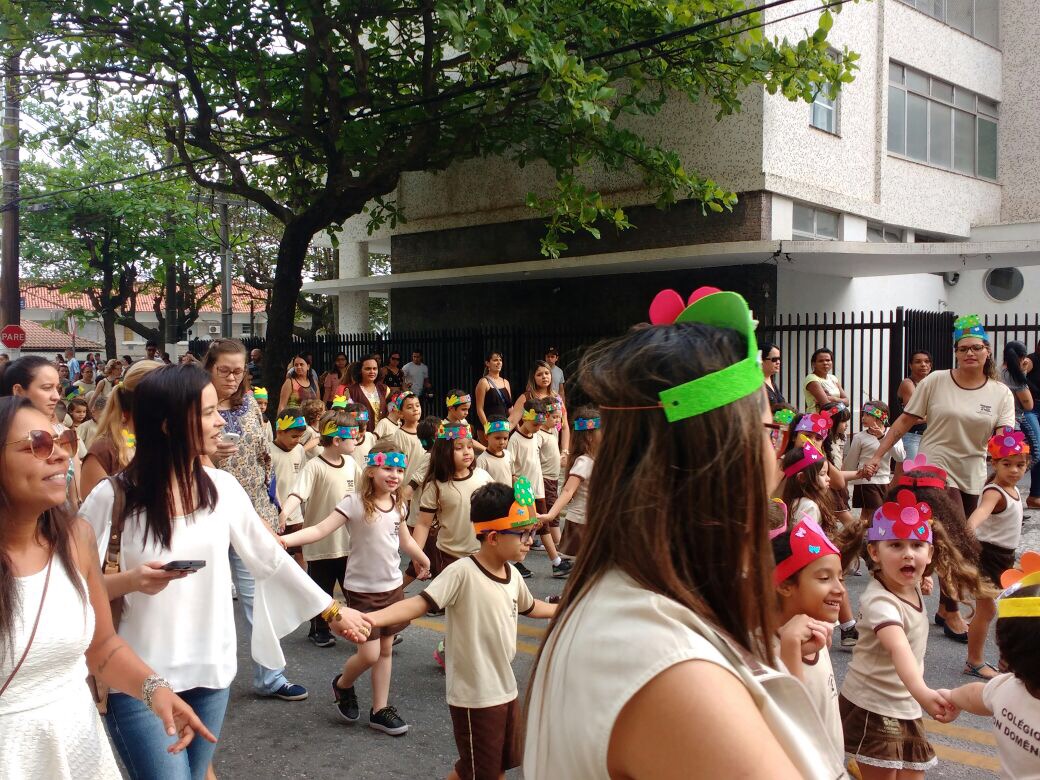 Paramentados com colares e chapéus de flores os alunos desfilaram por avenidas próximas ao colégio, em comemoração ao primeiro dia da primavera 2017, – simbolizante uma festa para o primeiro dia da primavera. O desfile durou cerca de uma hora.