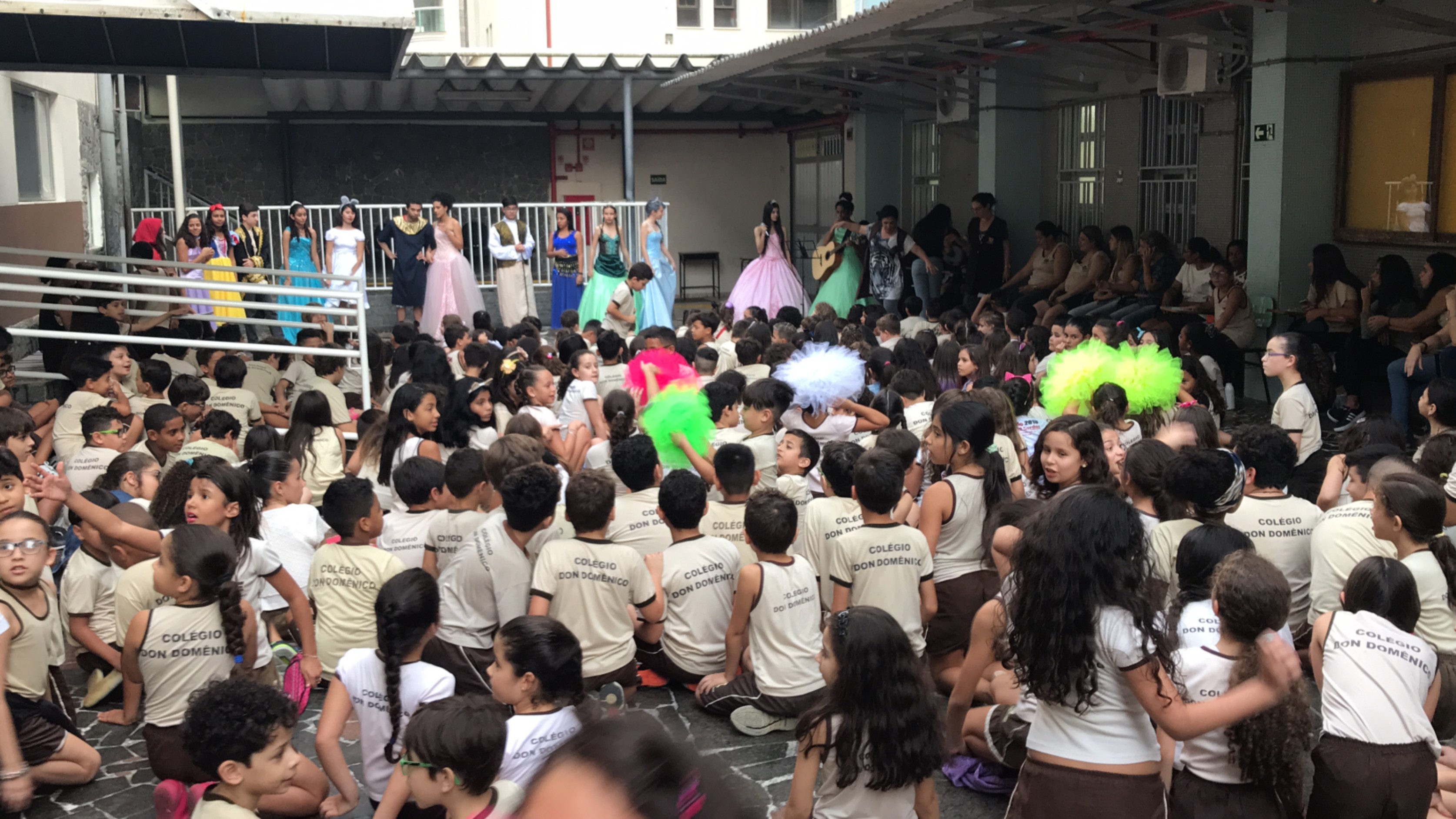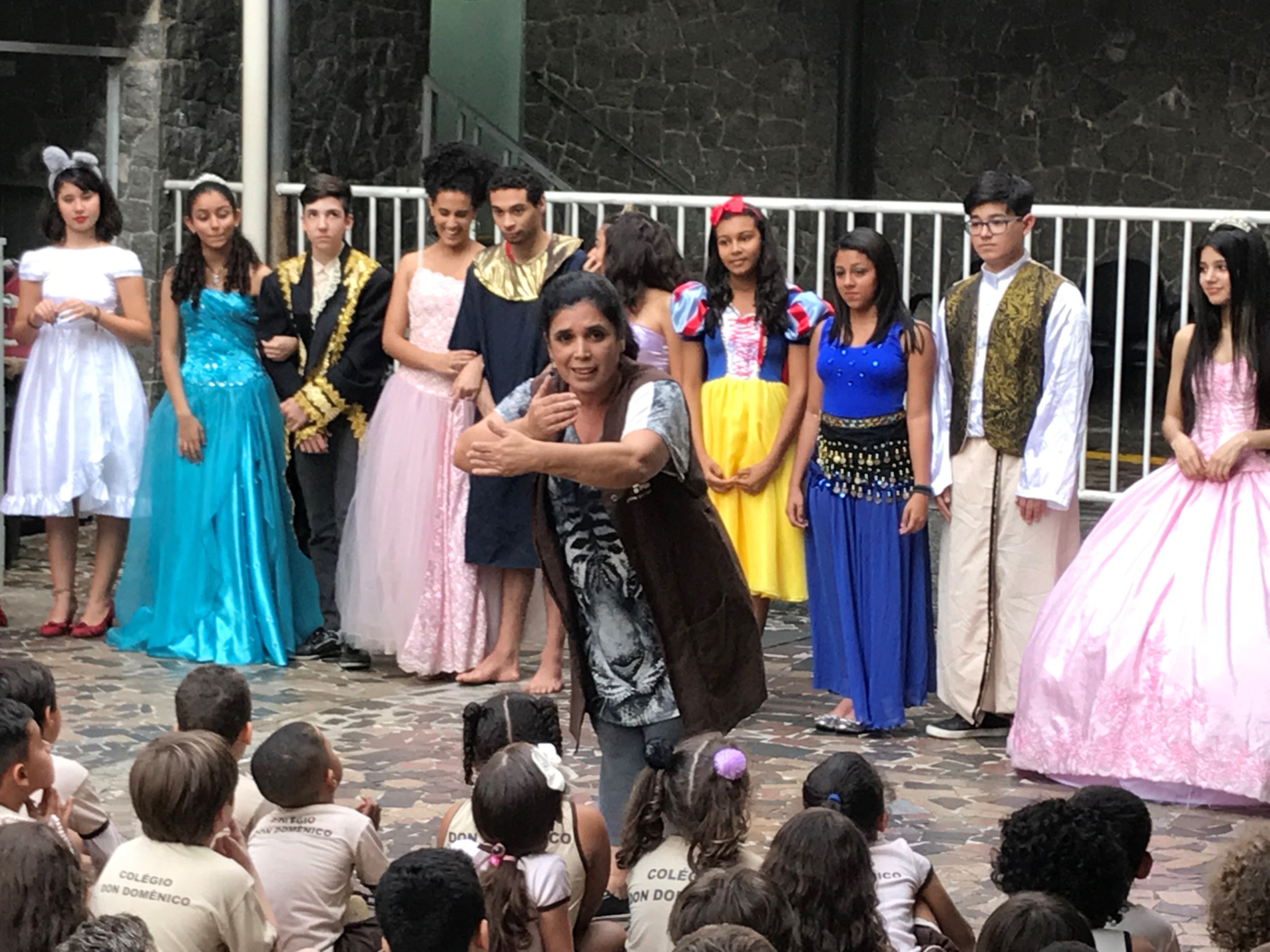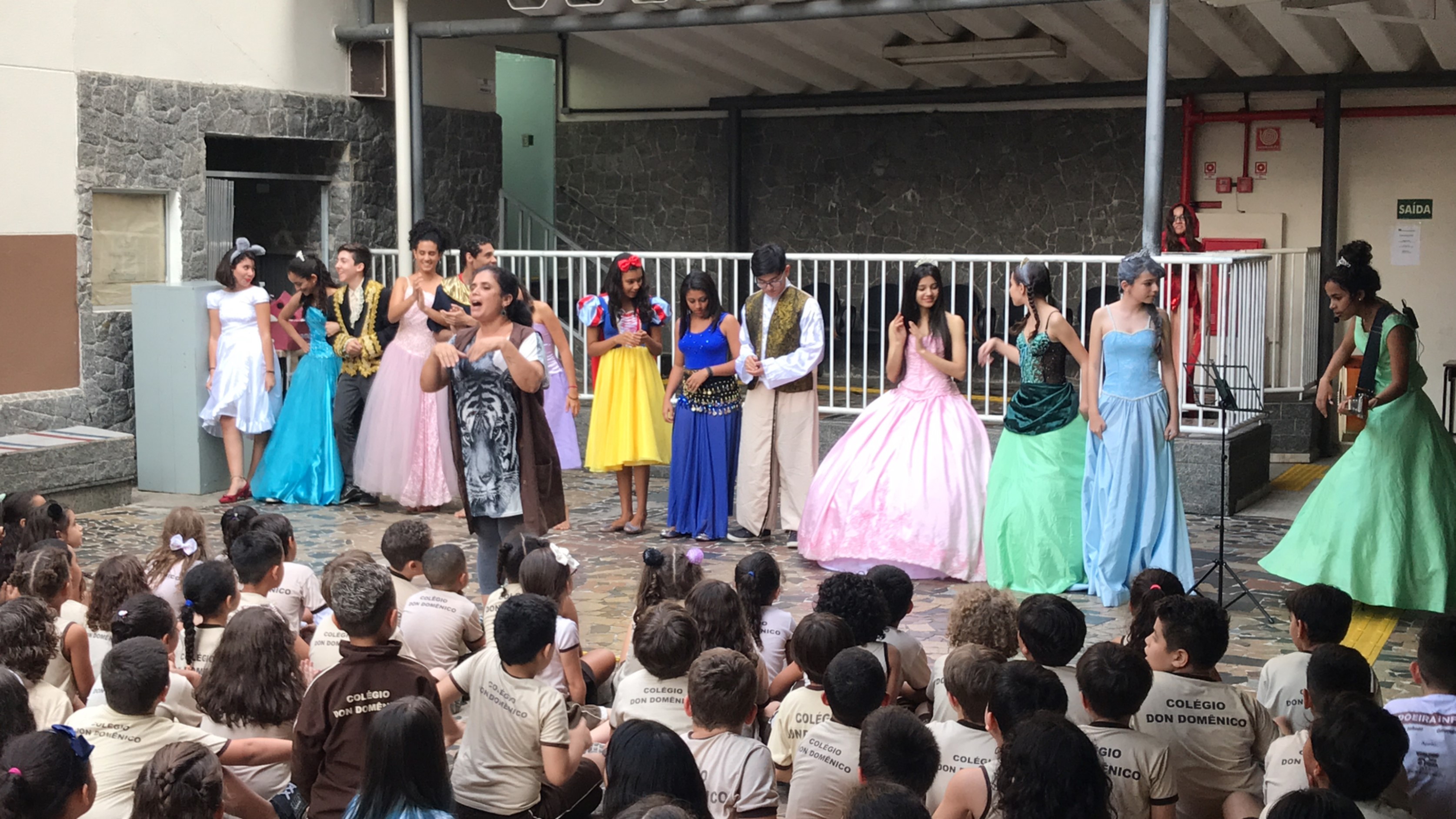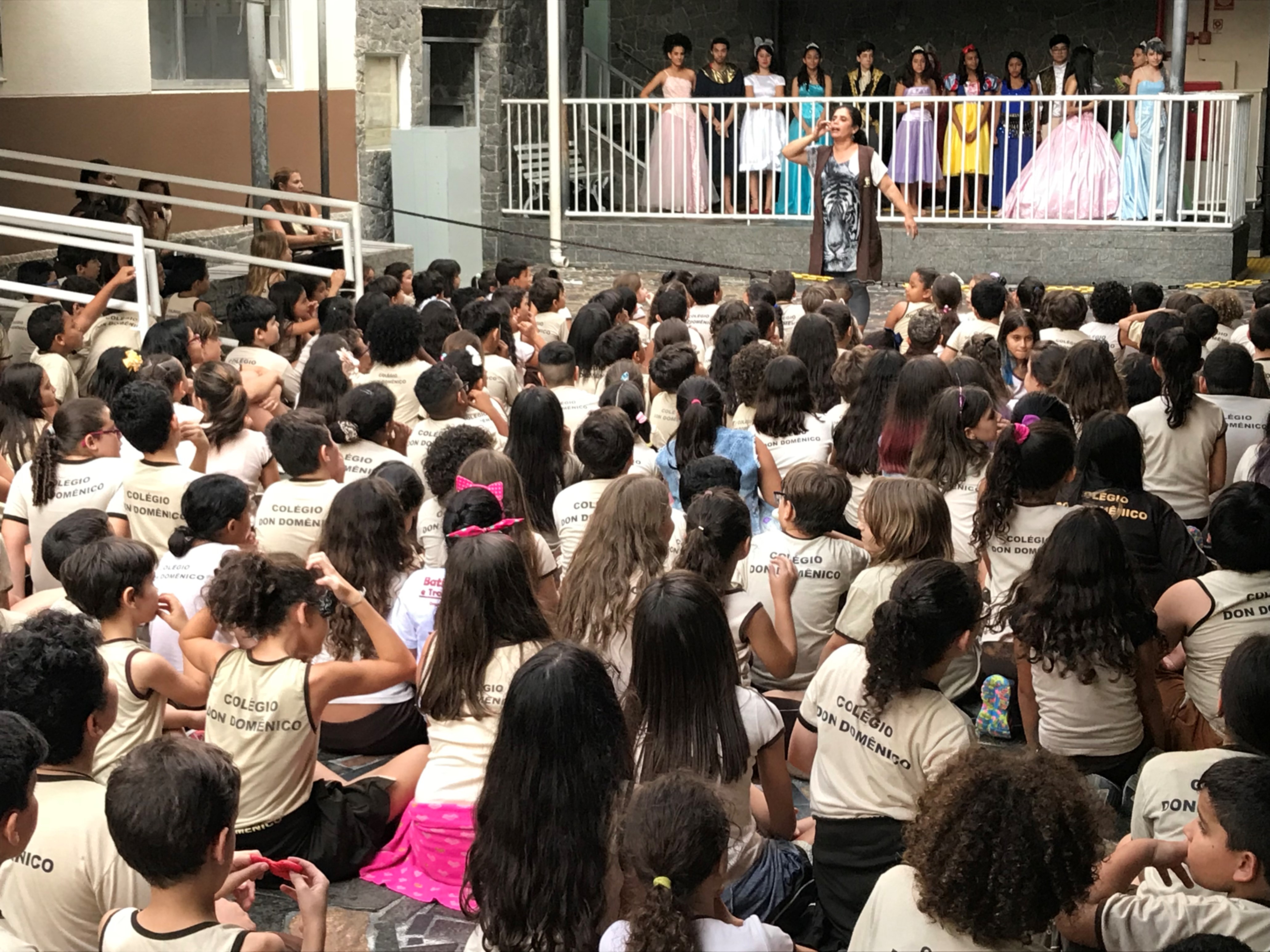 Um dos pontos altos da programação foi a apresentação dos alunos que participam do Projeto “Em Cena Don”. No pátio do colégio, devidamente trajados como personagens de histórias, como Elza e Ana, do Filme Frozen, Cinderela, Bela Adormecida, Aladin, Príncipe Encantado, entre outros, os alunos do “Em Cena Don”, cantaram músicas, dançaram e interagiram com os alunos que assistiam à apresentação.
