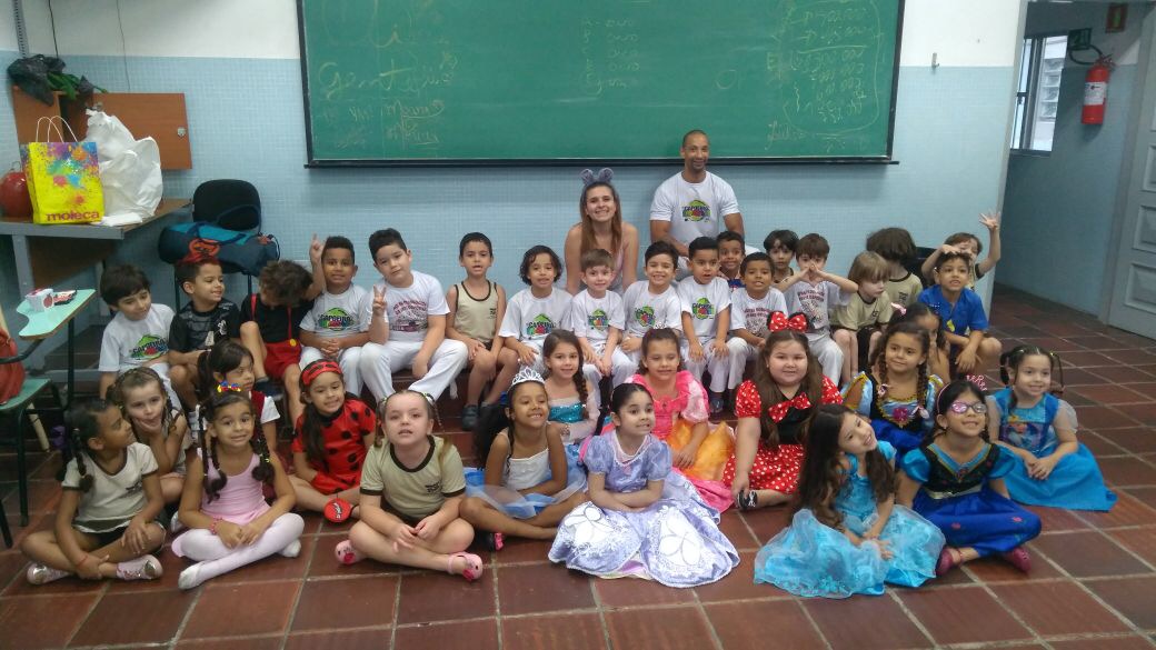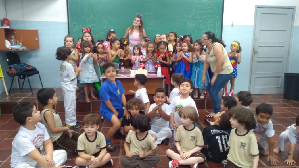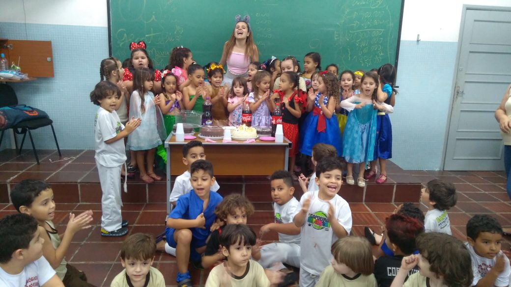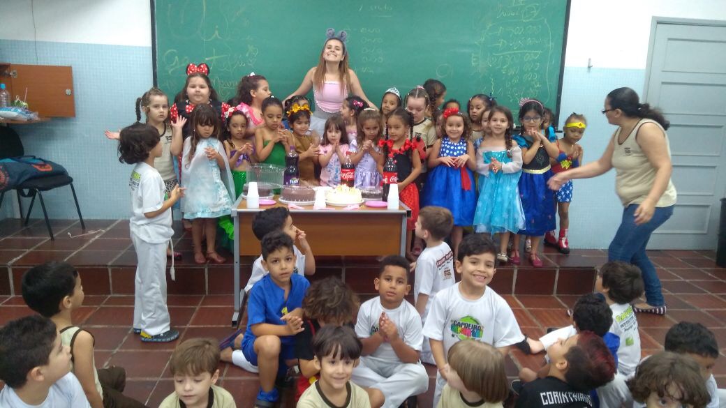 No Projeto de Capoeira Pedagógica, coordenado pelo Prof. Rodolfo Oliveira, os alunos aprenderam a criar um Berimbau, instrumento de corda de origem angolana, elemento fundamental na capoeira, sendo reverenciado pelos capoeiristas antes de iniciarem um jogo. Cada aluno recebeu um Berimbau construído por Rodolfo com material reciclado. Em uma das turmas, os alunos de capoeira e as alunas de Balé participaram juntos da festa de aniversário da Profa. Stephany, responsável pelo Projeto de Balé.