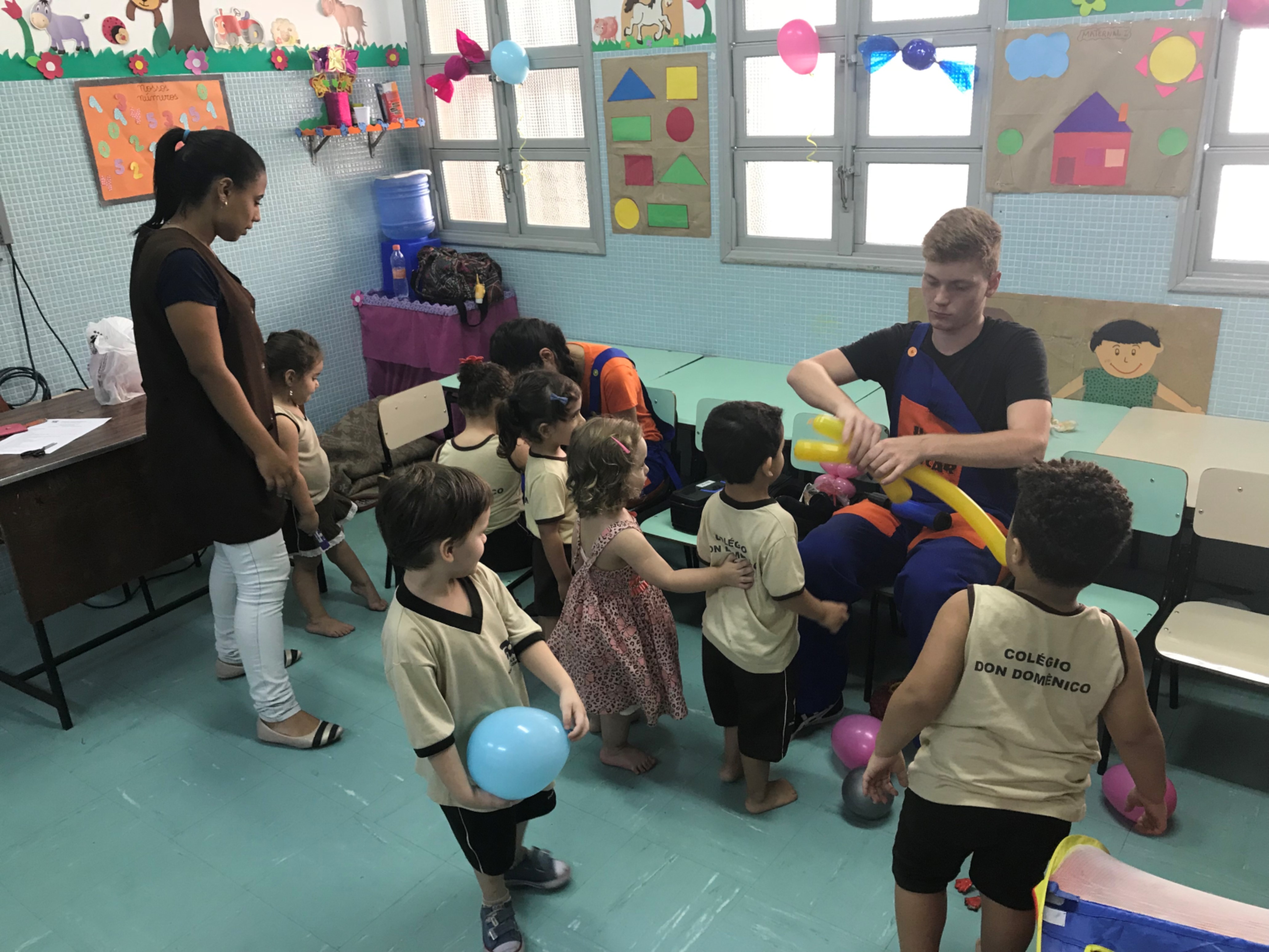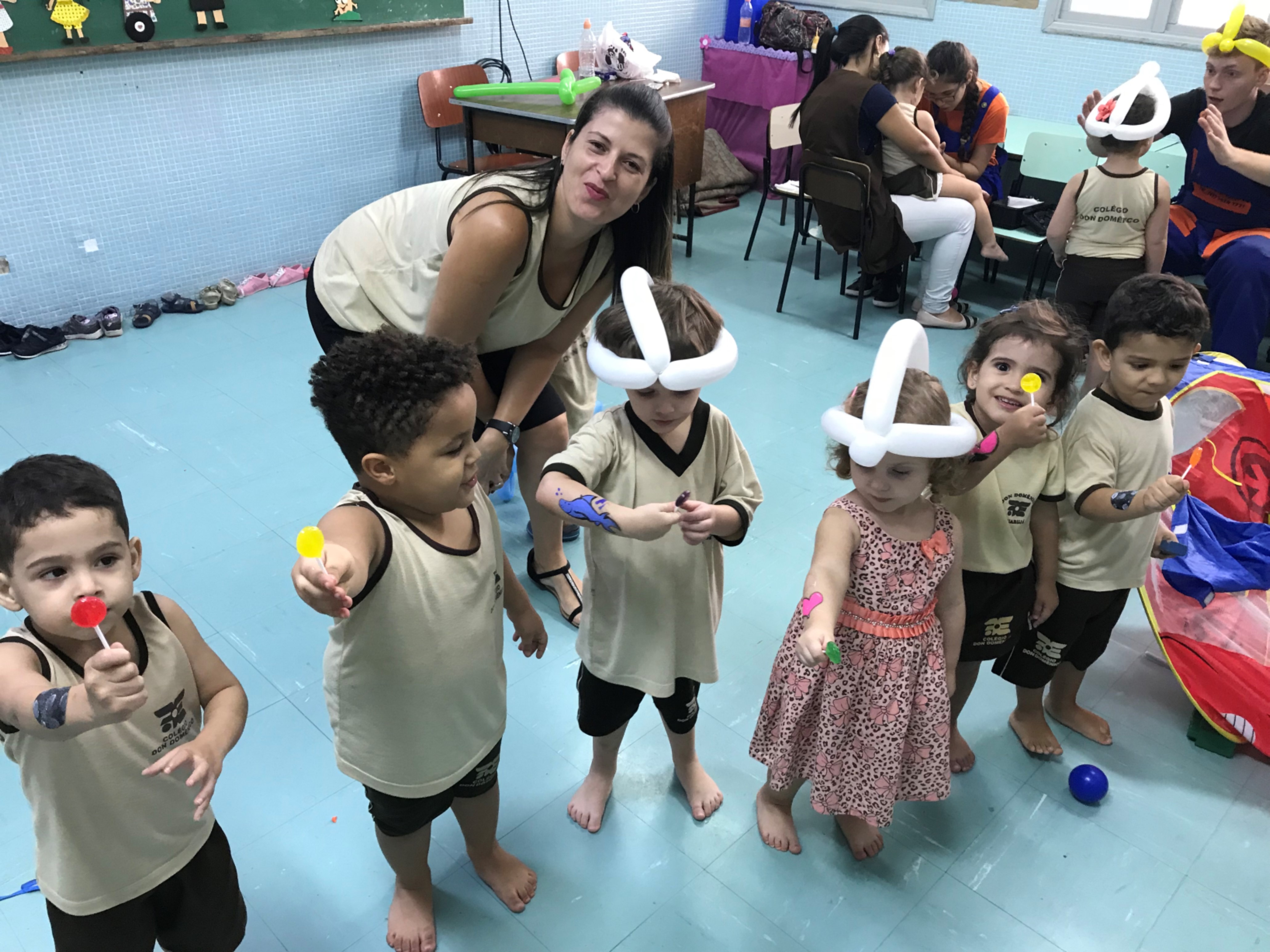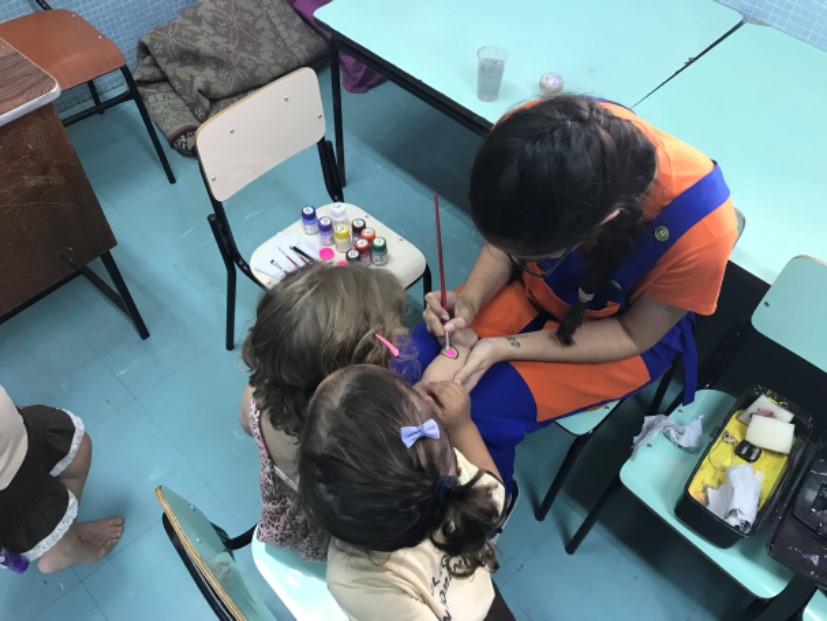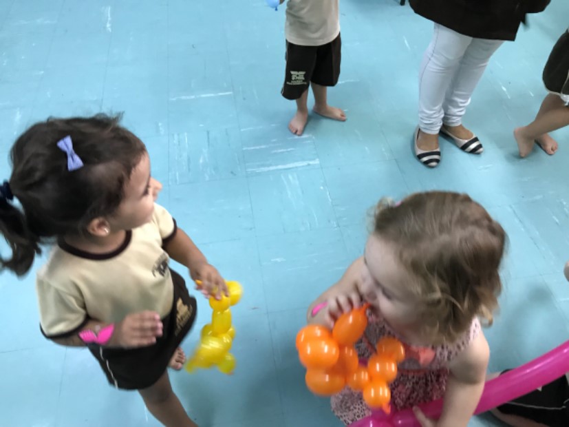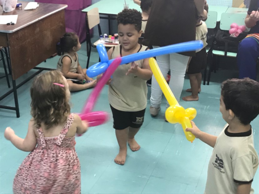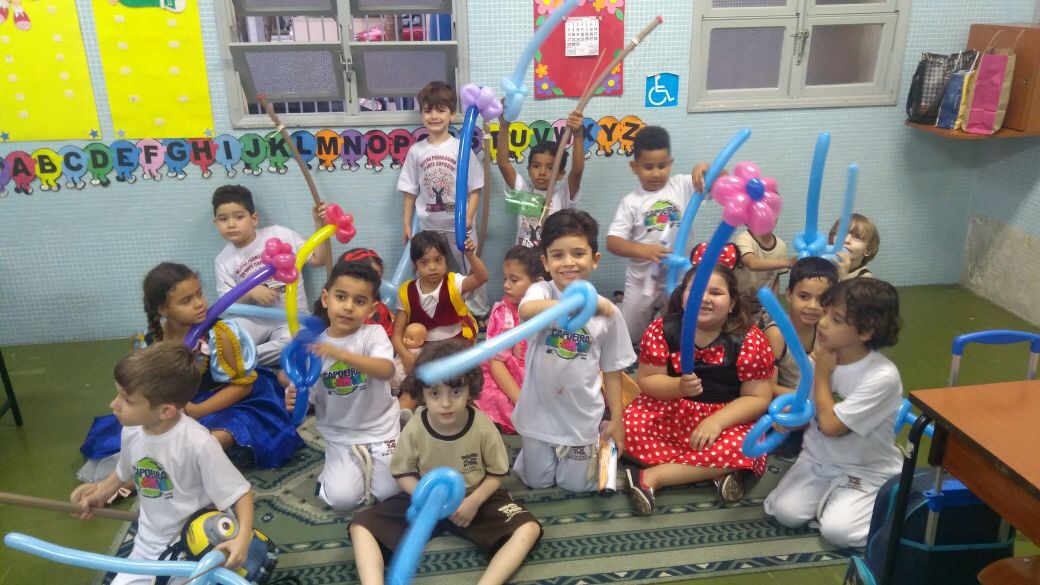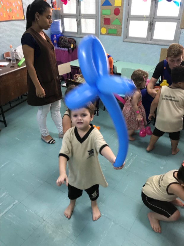 No maternal, as crianças se divertiram com a esculturas de balão, na forma de cachorros, espadas, entre outros, além de uma seção de pintura corporal, onde cada aluno pedia a imagem que queria desenhar em seu braço.