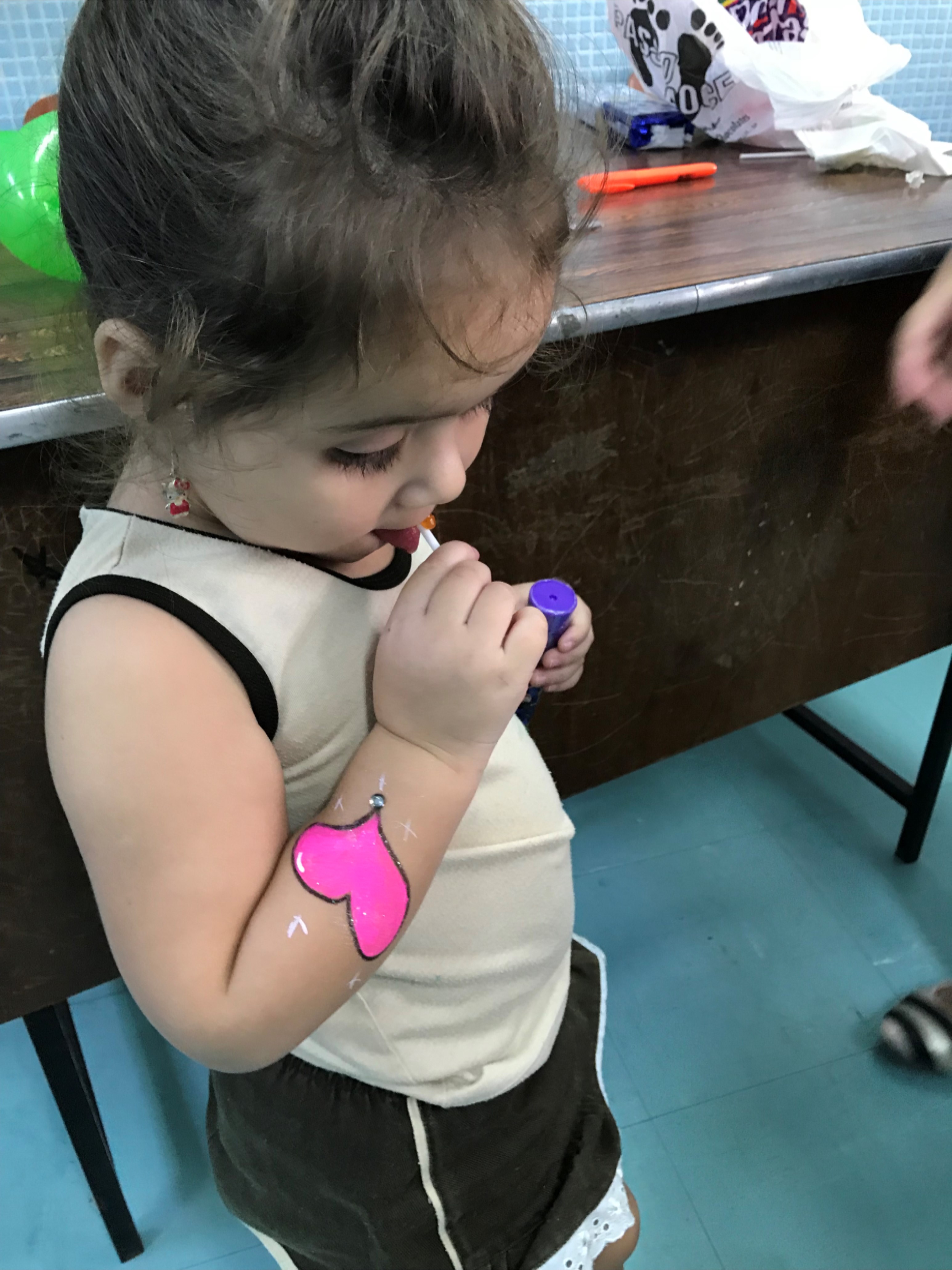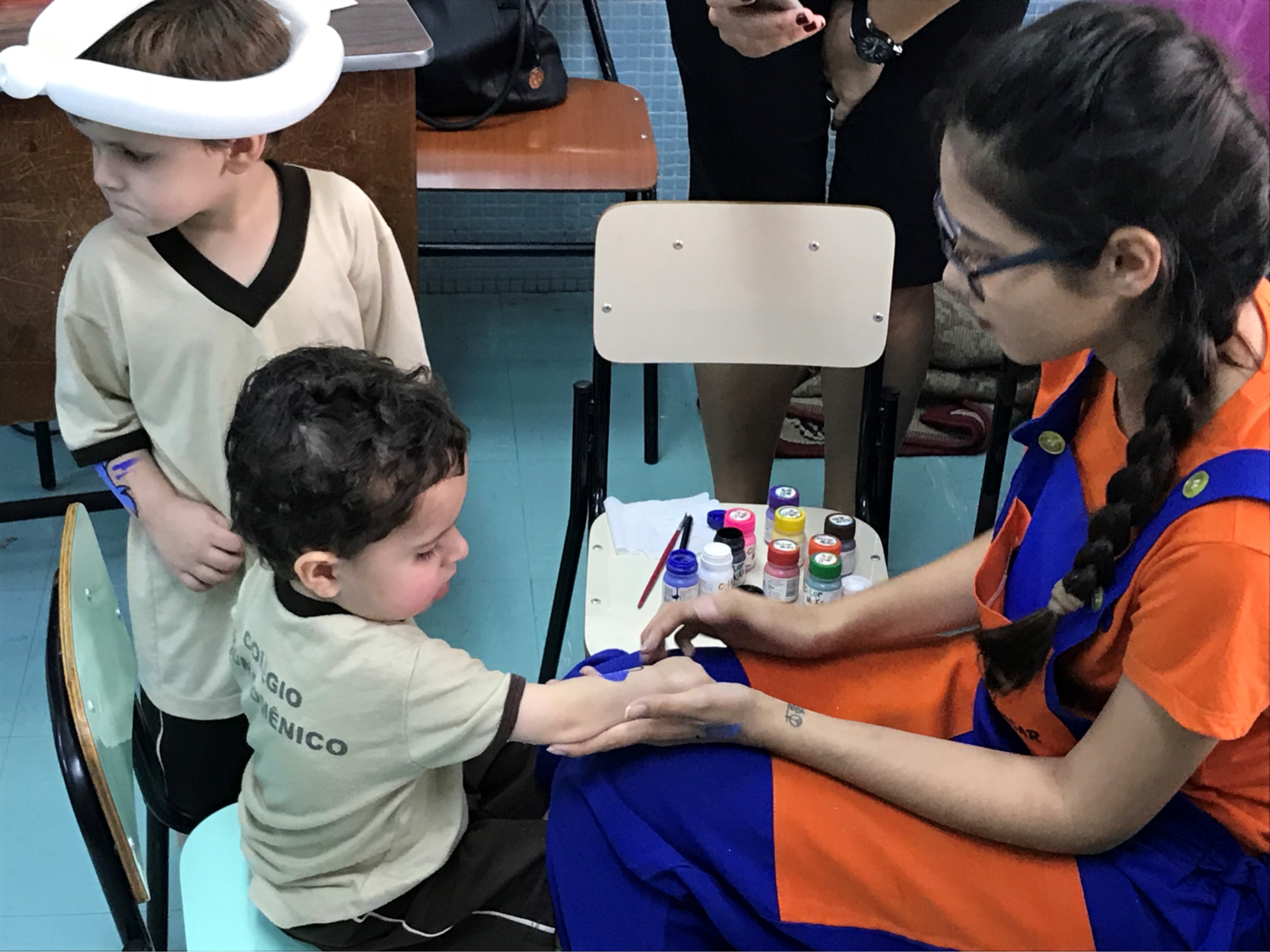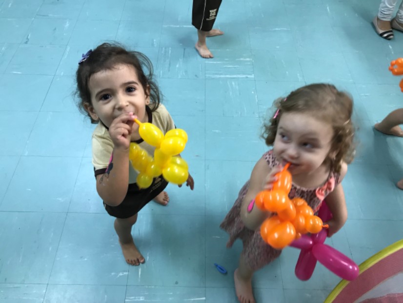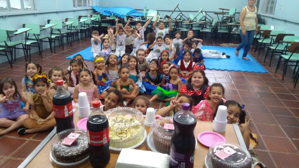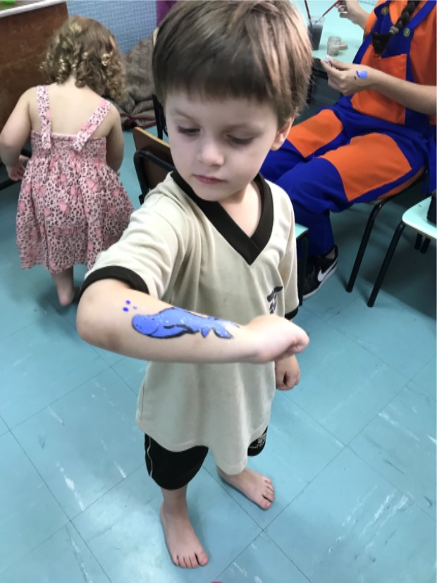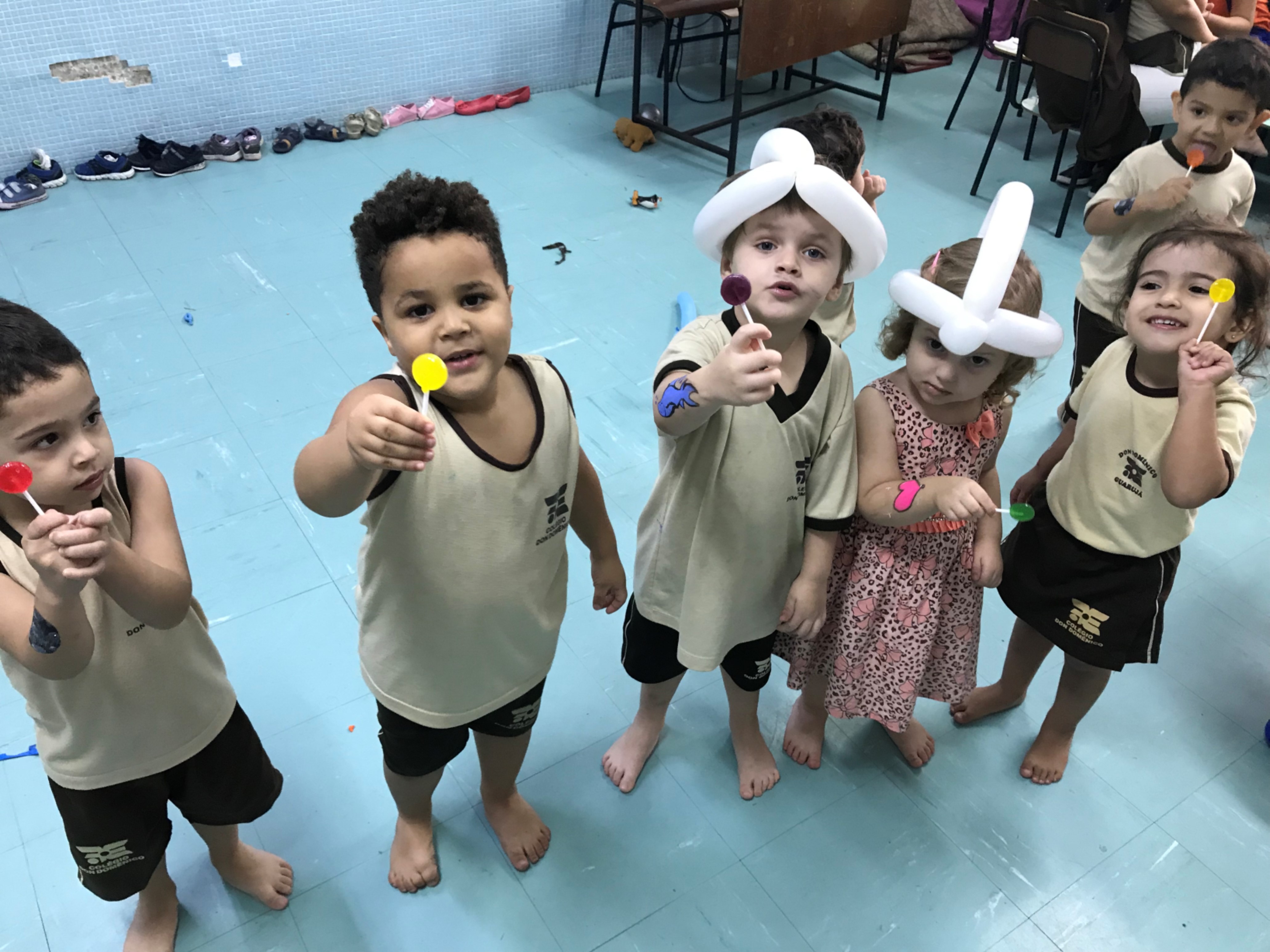 No maternal, as crianças se divertiram com a esculturas de balão, na forma de cachorros, espadas, entre outros, além de uma seção de pintura corporal, onde cada aluno pedia a imagem que queria desenhar em seu braço.