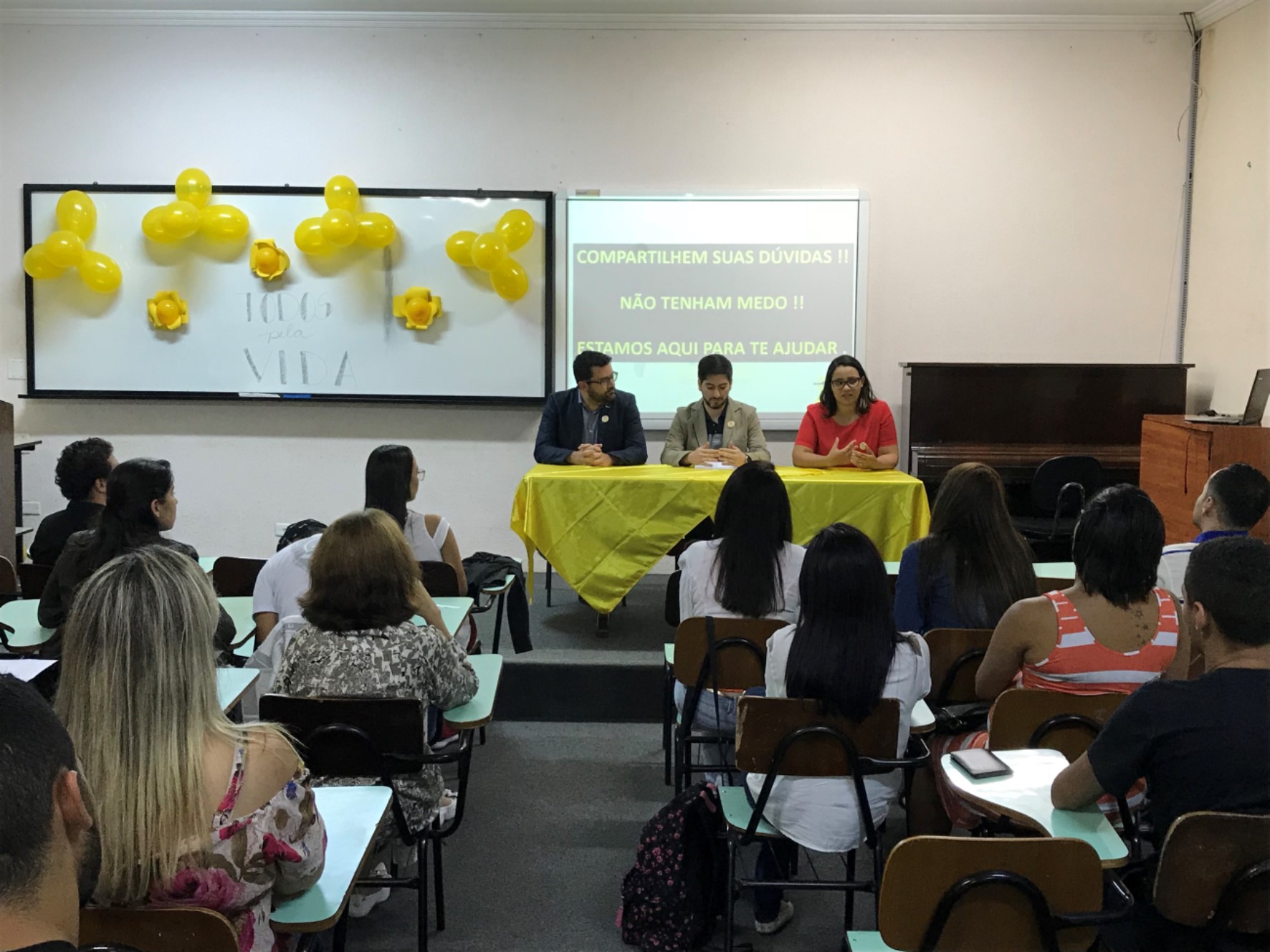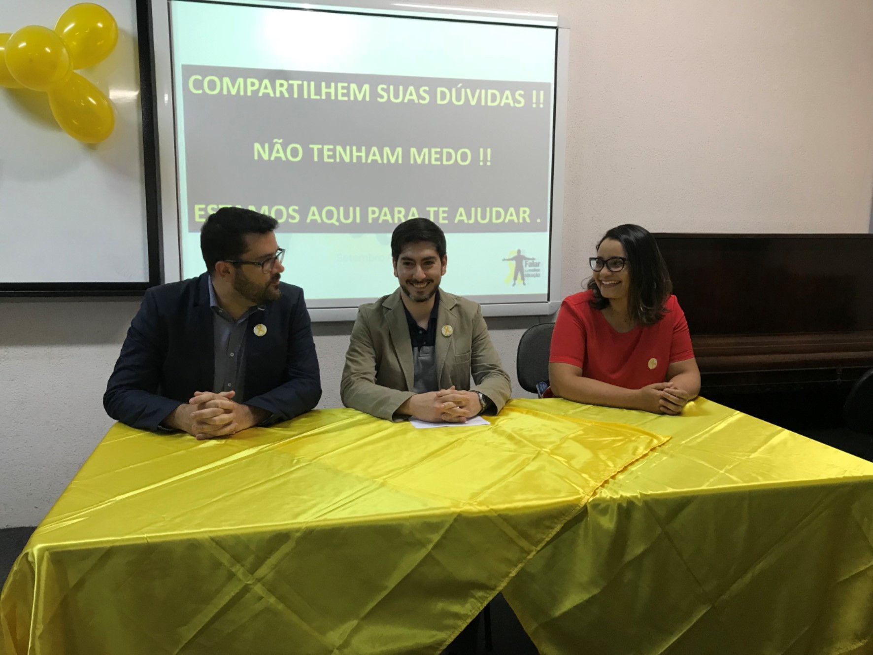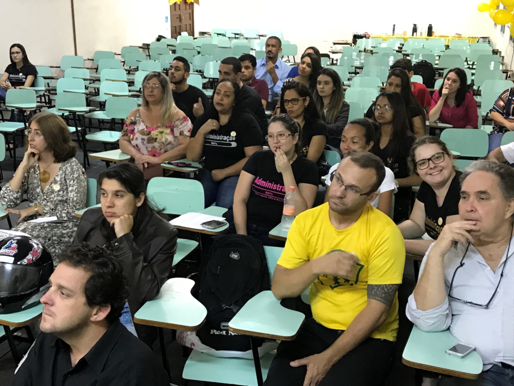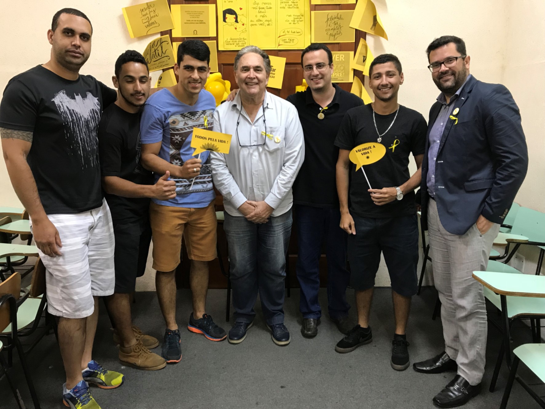 Com o Título “Conscientização do Setembro Amarelo”, o 8º D de Administração promoveu debate a respeito da campanha mundial que ocorre em todo o mês de setembro para prevenção de suicídio. O evento abordou o tema, fazendo ampla discussão a respeito do tema depressão. Para tanto, a turma contou com a participação de três especialistas em diferentes áreas: o Advogado e Professor Universitário, Fabrício Lema, cujo tema da Dissertação de Mestrado é a relação Suicídio/Trabalho, o Psicólogo Luiz Carlos Francisco Junior e a Psicóloga, Suellen Izidoro.