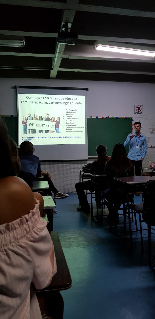No encerramento, o 2º B de Administração abordou a importância de um segundo idioma na vida profissional de um administrador de empresas, com a palestra do Fábio…falando sobre a necessidade de um gestor conhecer outros idiomas para enfrentar o concorrido mercado de trabalho e as características do mundo de negócios cada vez mais globalizado.