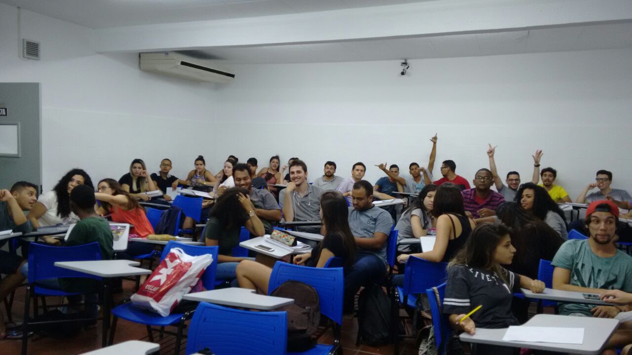 O Prof. Me. Junior dos Santos, no 5º semestre de Administração, na disciplina Gestão da Produção I, utilizou a metodologia Peer Instruction para avaliar dois temas trabalhados anteriormente, Nova Lei da Terceirização e Sobrevivência das Empresas, utilizando relatório do SEBRAE – Serviço Brasileiro de Apoio às Micro e Pequenas Empresas. “Enviei o material previamente para análise e estudo. No dia da aula, os alunos receberam questões a respeito do material e conforme acertavam as respostas os grupos avançavam”.
