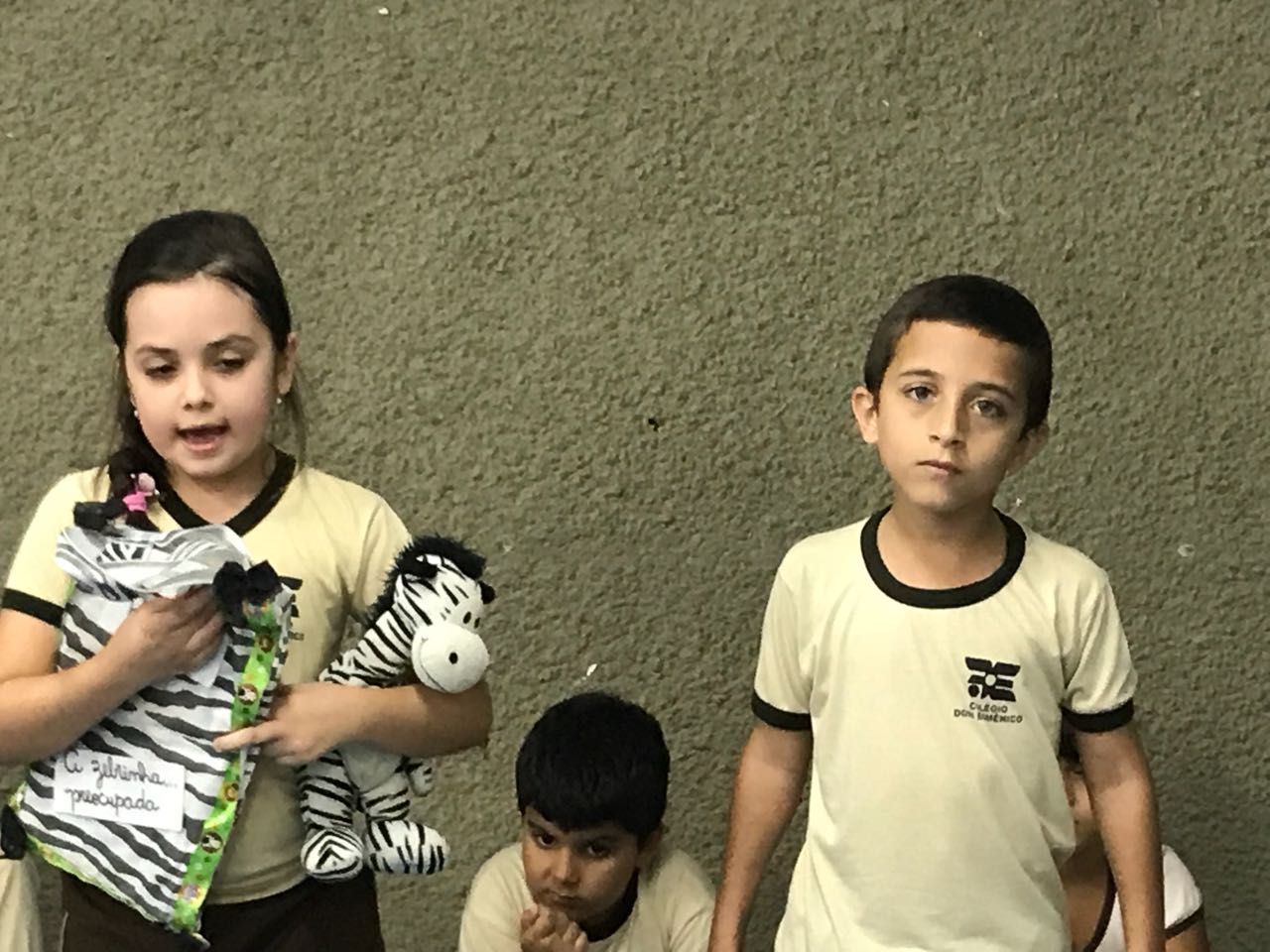 Na tarde desta quinta-feira (30/11), os alunos do 2º Ano do Ensino Fundamental realizaram o fechamento do Projeto “A zebrinha preocupada”, desenvolvido com o objetivo de combater o bullying, iniciado no início de outubro deste ano. “O objetivo do projeto é trabalhar, desde cedo, a tolerância, o respeito ao próximo, a convivência pacífica, entre outras questões importantes para o desenvolvimento das crianças”, destacou a Profa. Camila Gomes.