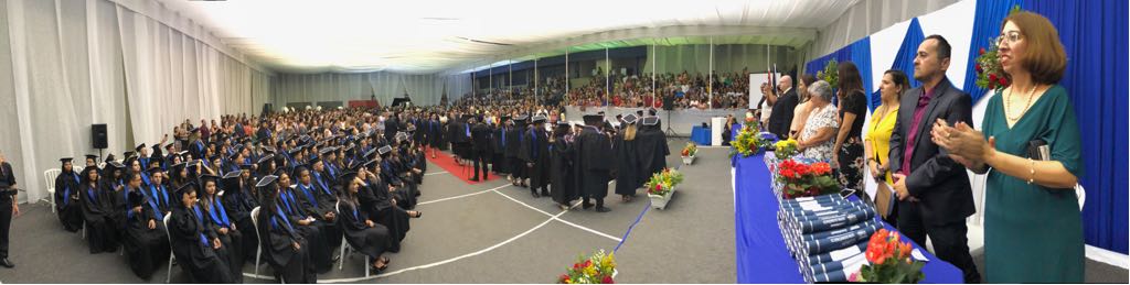 Cerca de 200 alunos participaram no último sábado de Solenidade de Colação de Grau, encerrado um dos mais importantes ciclos de sua vida. Alunos dos cursos de Administração, História, Letras e Pedagogia receberam o grau e comemoraram muito seu feito. A cada aluno chamado pelo cerimonial para receber seu diploma, gritos entusiasmados, carregados de orgulho e felicidade, ecoavam pelo salão, contribuindo para uma atmosfera carregada de emoção.