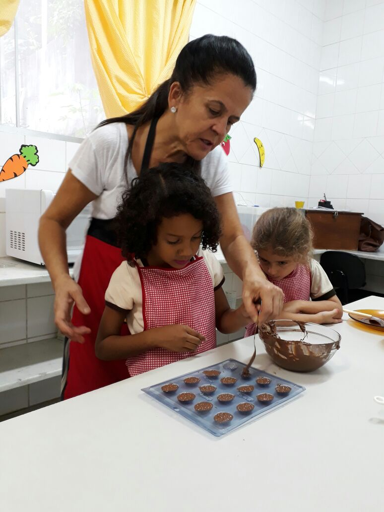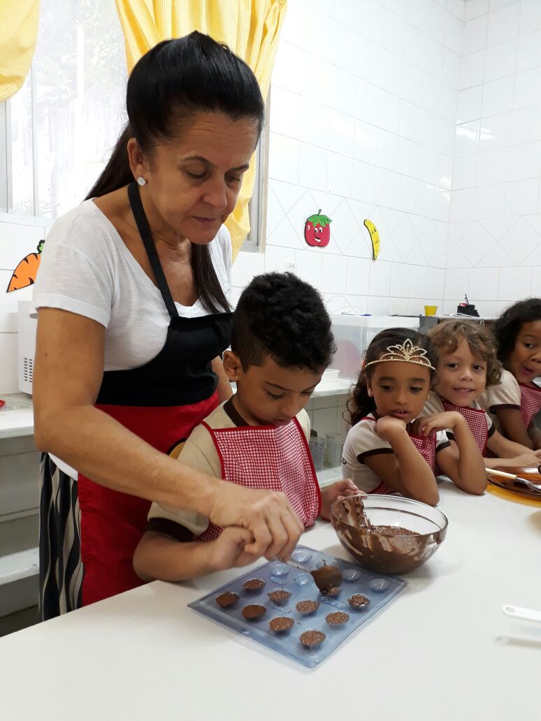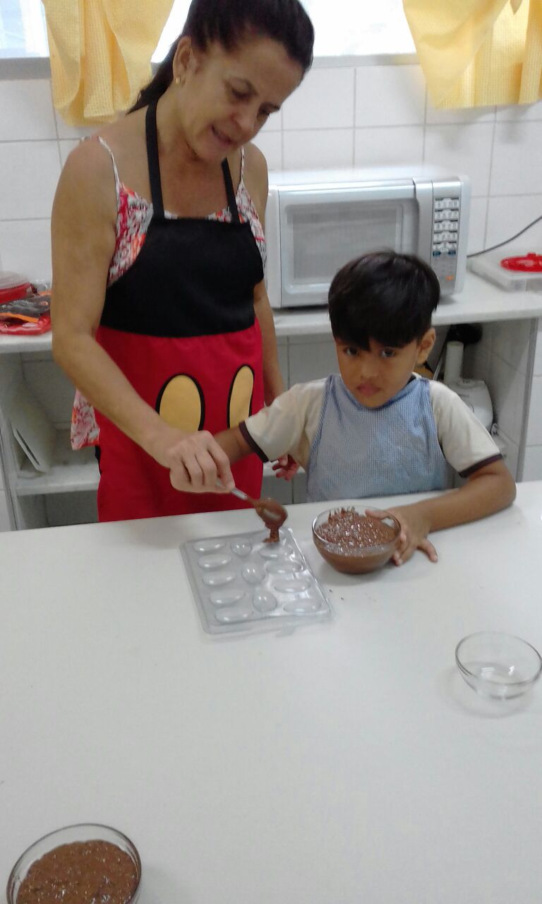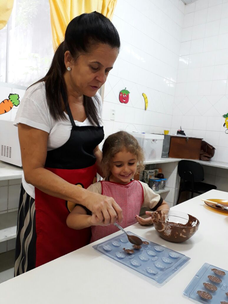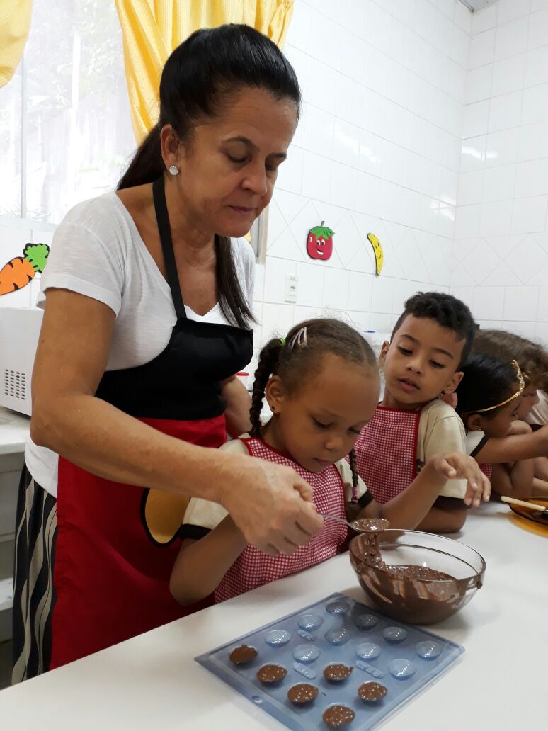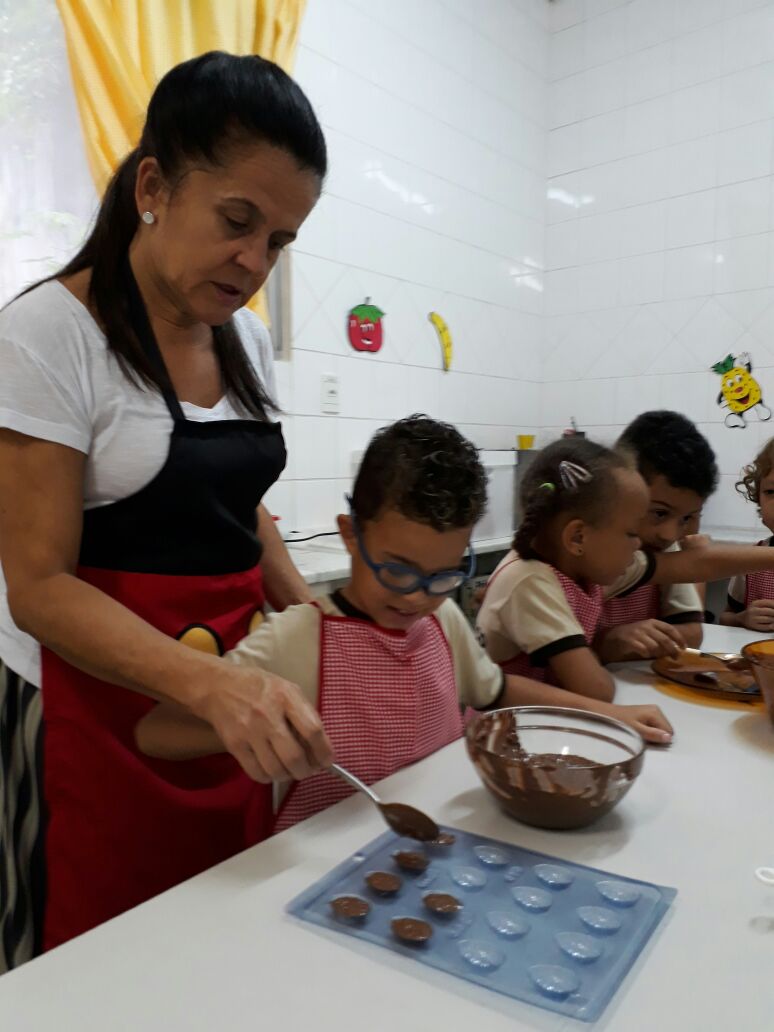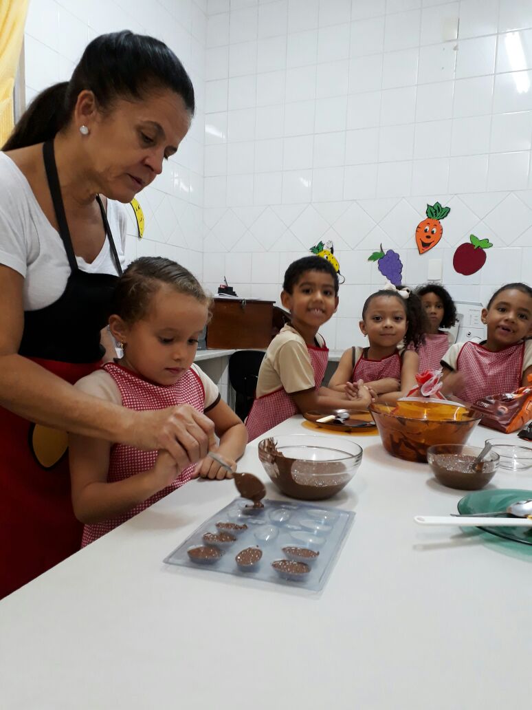 Foram realizadas receitas de ovos de chocolate crocantes, entre outras. “As aulas contaram com muita participação dos alunos, pois, sendo o chocolate um produto amado por quase todas as crianças, elas queriam participar de todas as etapas, tornando a experiência um sucesso absoluto”, comemora Lêda.