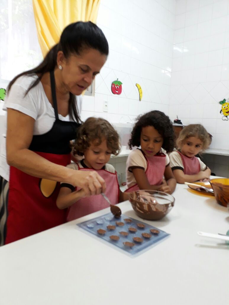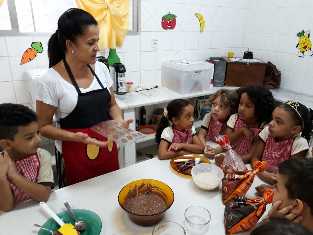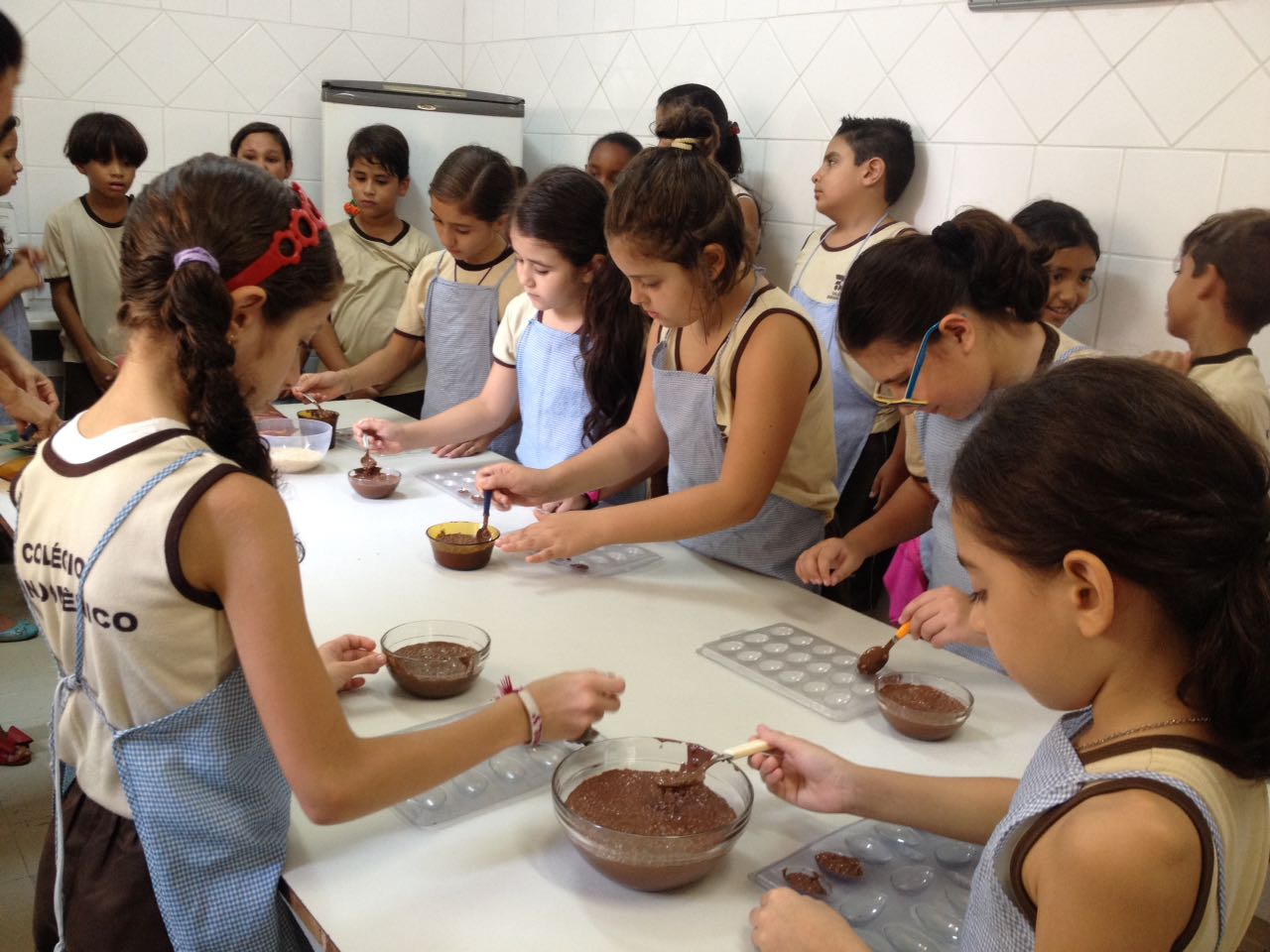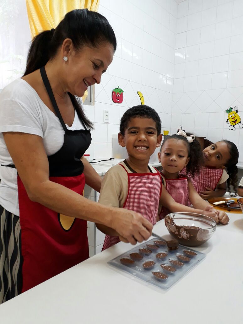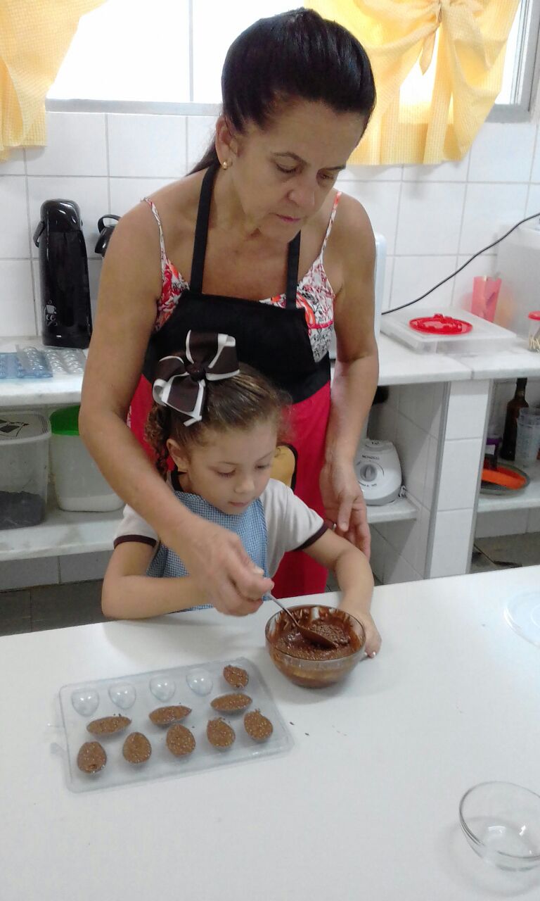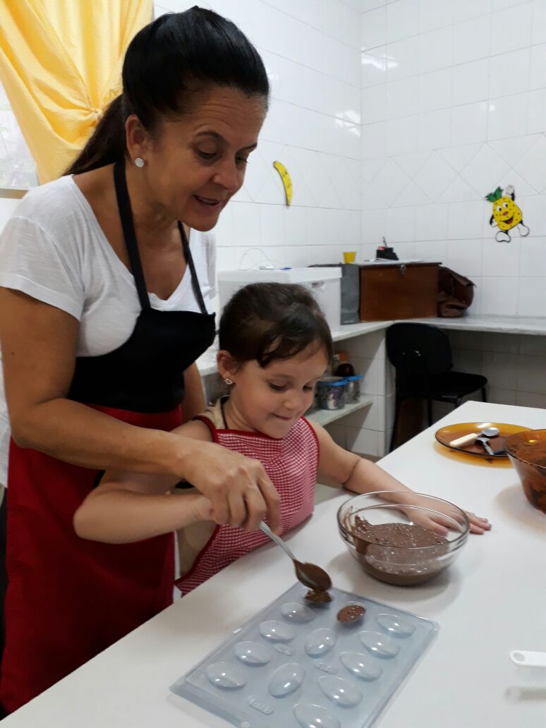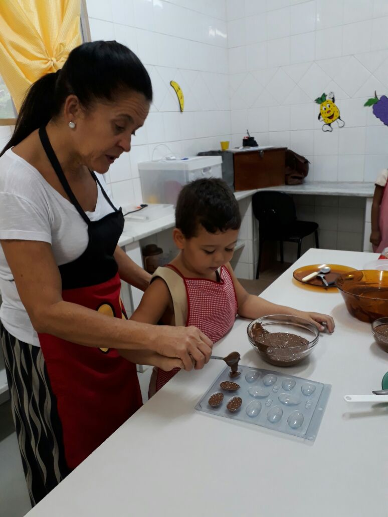 Foram realizadas receitas de ovos de chocolate crocantes, entre outras. “As aulas contaram com muita participação dos alunos, pois, sendo o chocolate um produto amado por quase todas as crianças, elas queriam participar de todas as etapas, tornando a experiência um sucesso absoluto”, comemora Lêda.