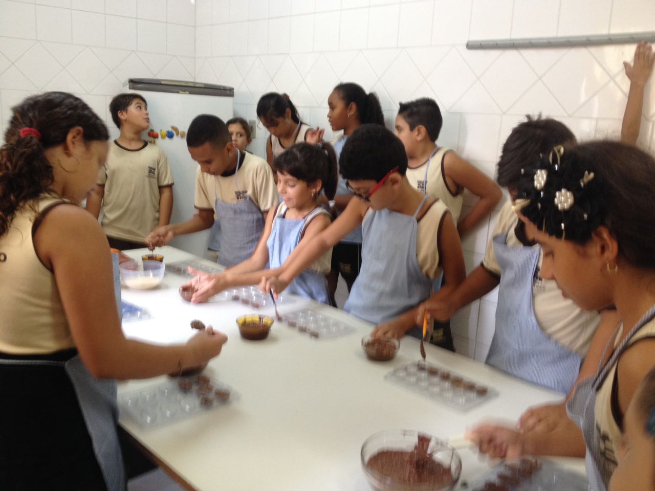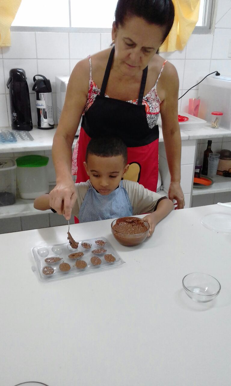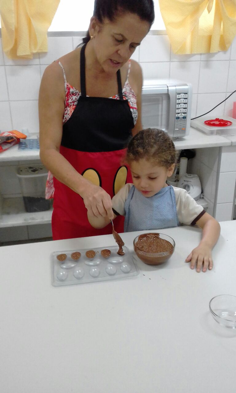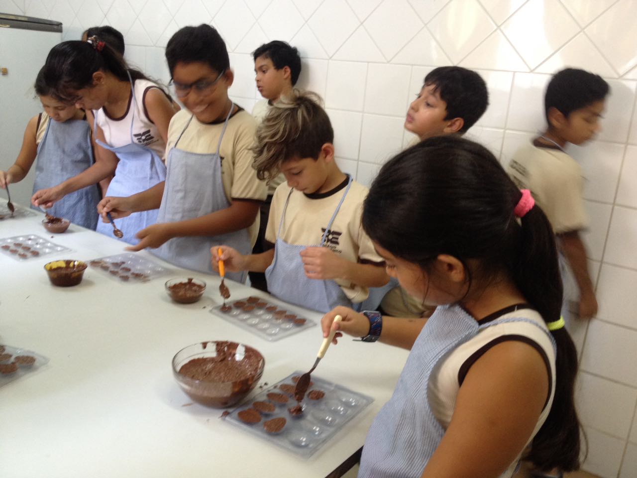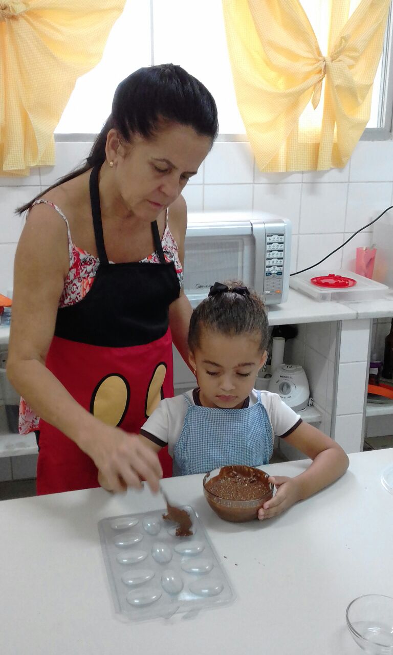 Foram realizadas receitas de ovos de chocolate crocantes, entre outras. “As aulas contaram com muita participação dos alunos, pois, sendo o chocolate um produto amado por quase todas as crianças, elas queriam participar de todas as etapas, tornando a experiência um sucesso absoluto”, comemora Lêda.