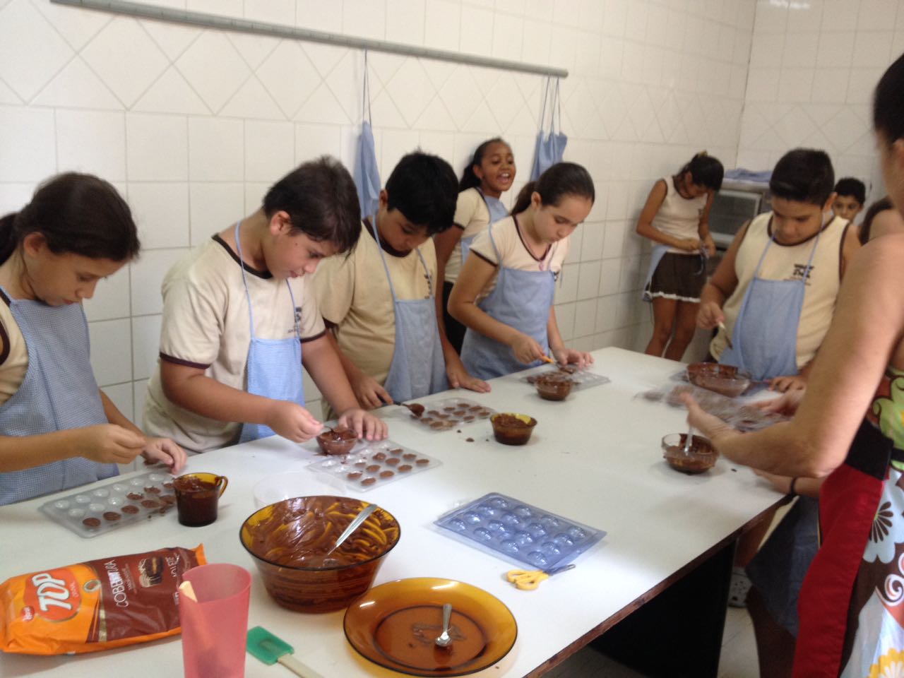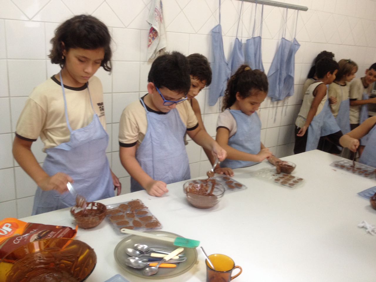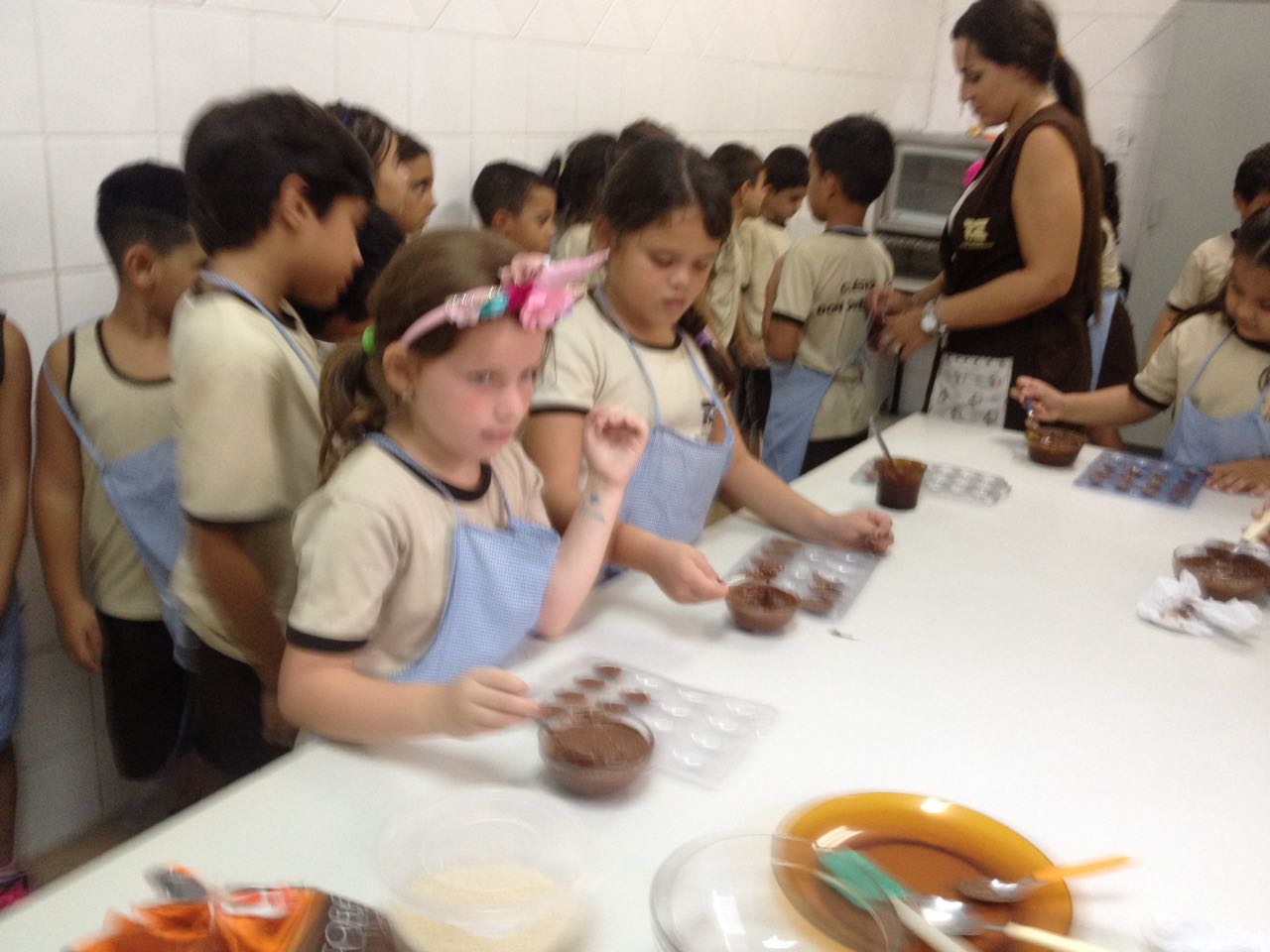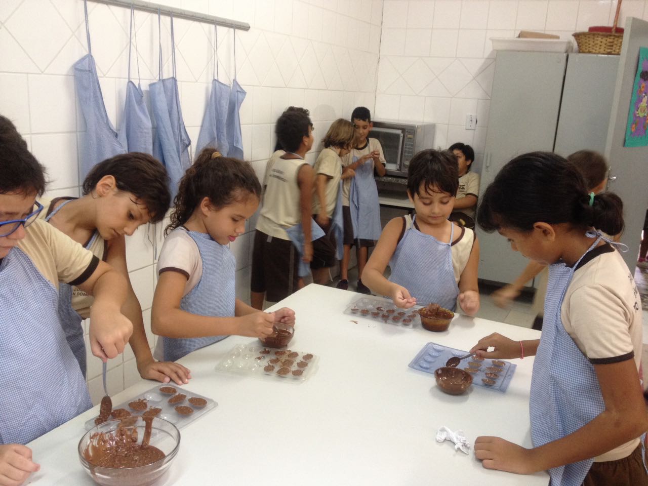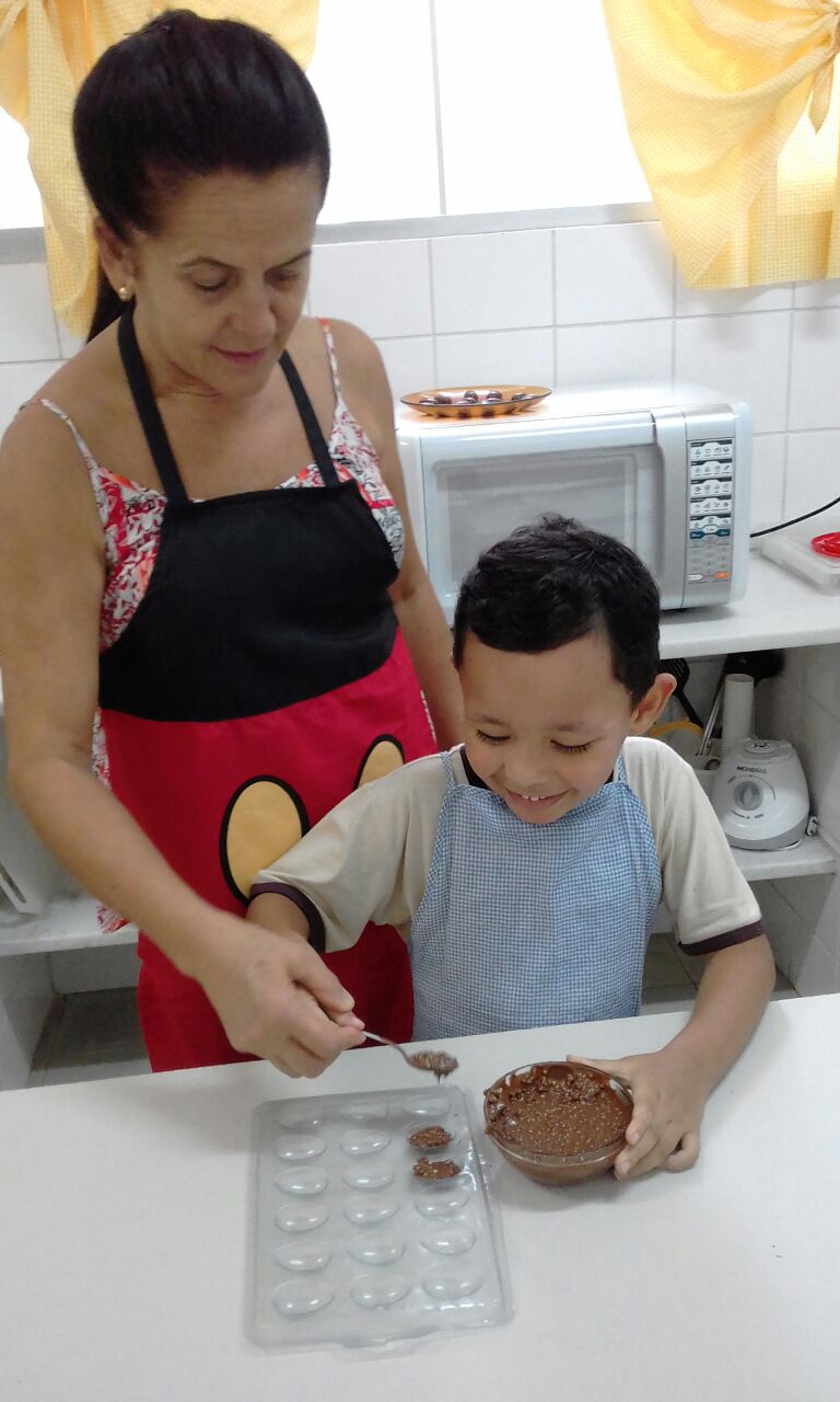 Foram realizadas receitas de ovos de chocolate crocantes, entre outras. “As aulas contaram com muita participação dos alunos, pois, sendo o chocolate um produto amado por quase todas as crianças, elas queriam participar de todas as etapas, tornando a experiência um sucesso absoluto”, comemora Lêda.