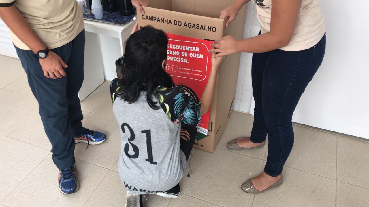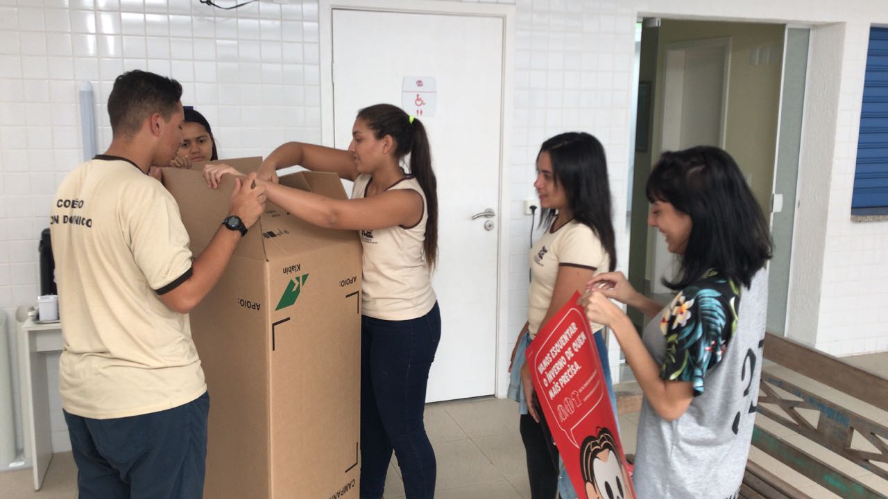 Os Alunos envolvidos foram nos locais que firmaram parceria com a Campanha do Agasalho entregar caixas para receber doações.