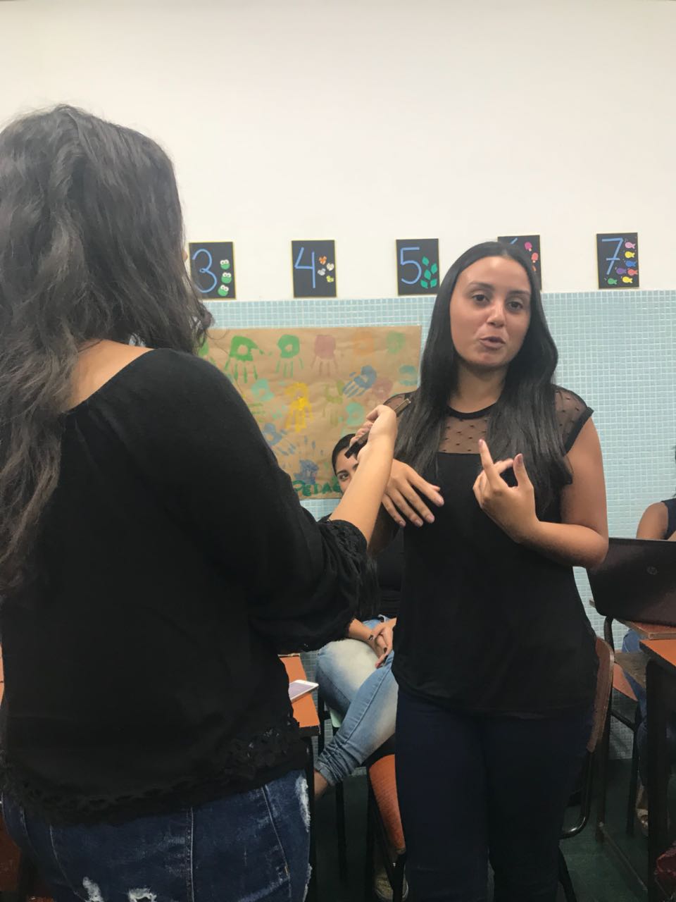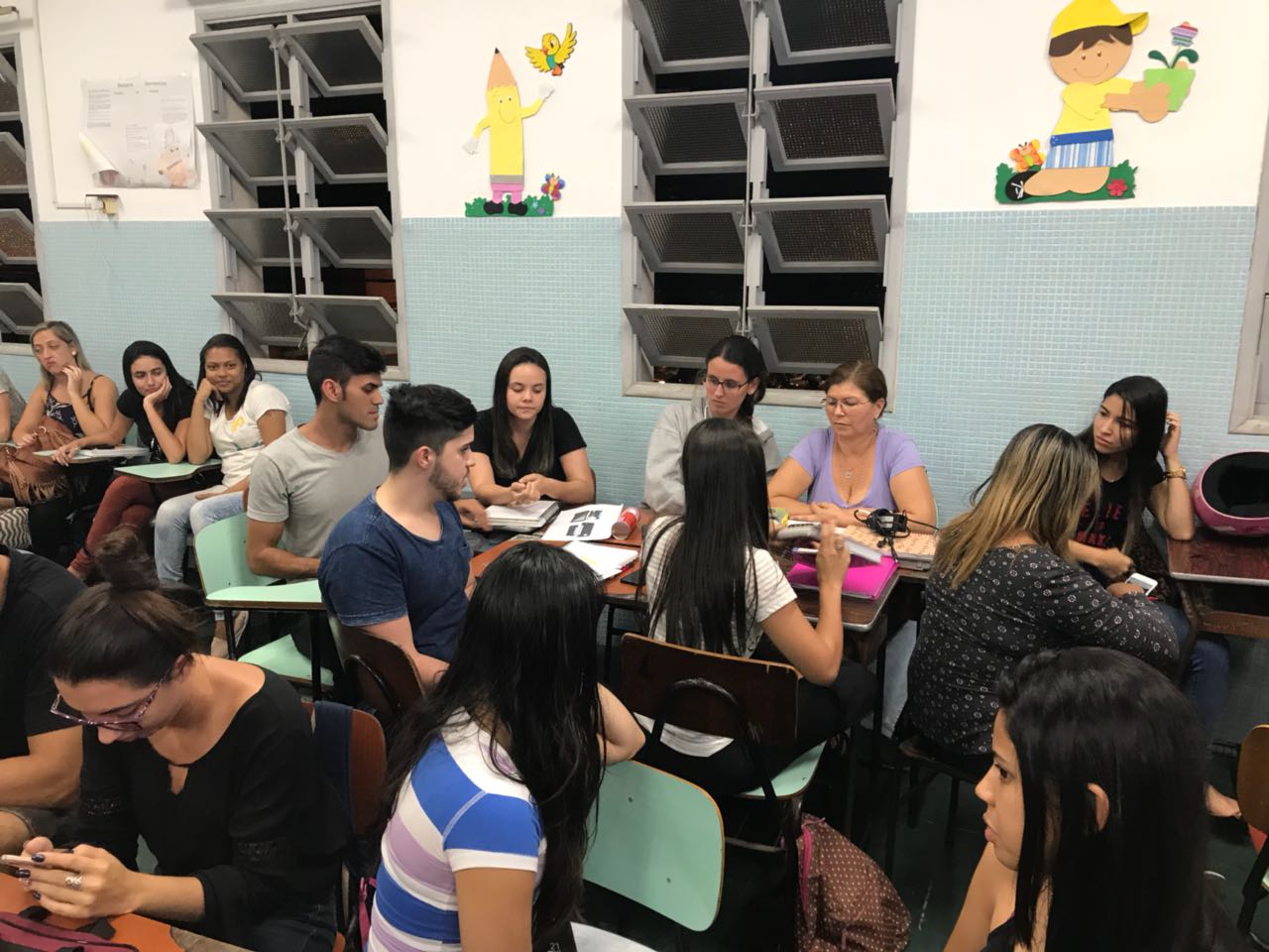 O Prof. Olair Garcia no 6º Semestre de Pedagogias desenvolveu dinâmica baseada na metodologia PBL (Aprendizado baseado em Problemas), na qual os alunos tinham que elaborar paródias sobre quatro grandes grupos da matemática (Números e Operações, Grandezas e Medidas, Espaço e Forma e Tratamento de Informação). “O objetivo é preparar os alunos, futuros professores, a transmitirem informação para as crianças de 4 e 5 anos sobre os conceitos de matemática”, destaca Olair.