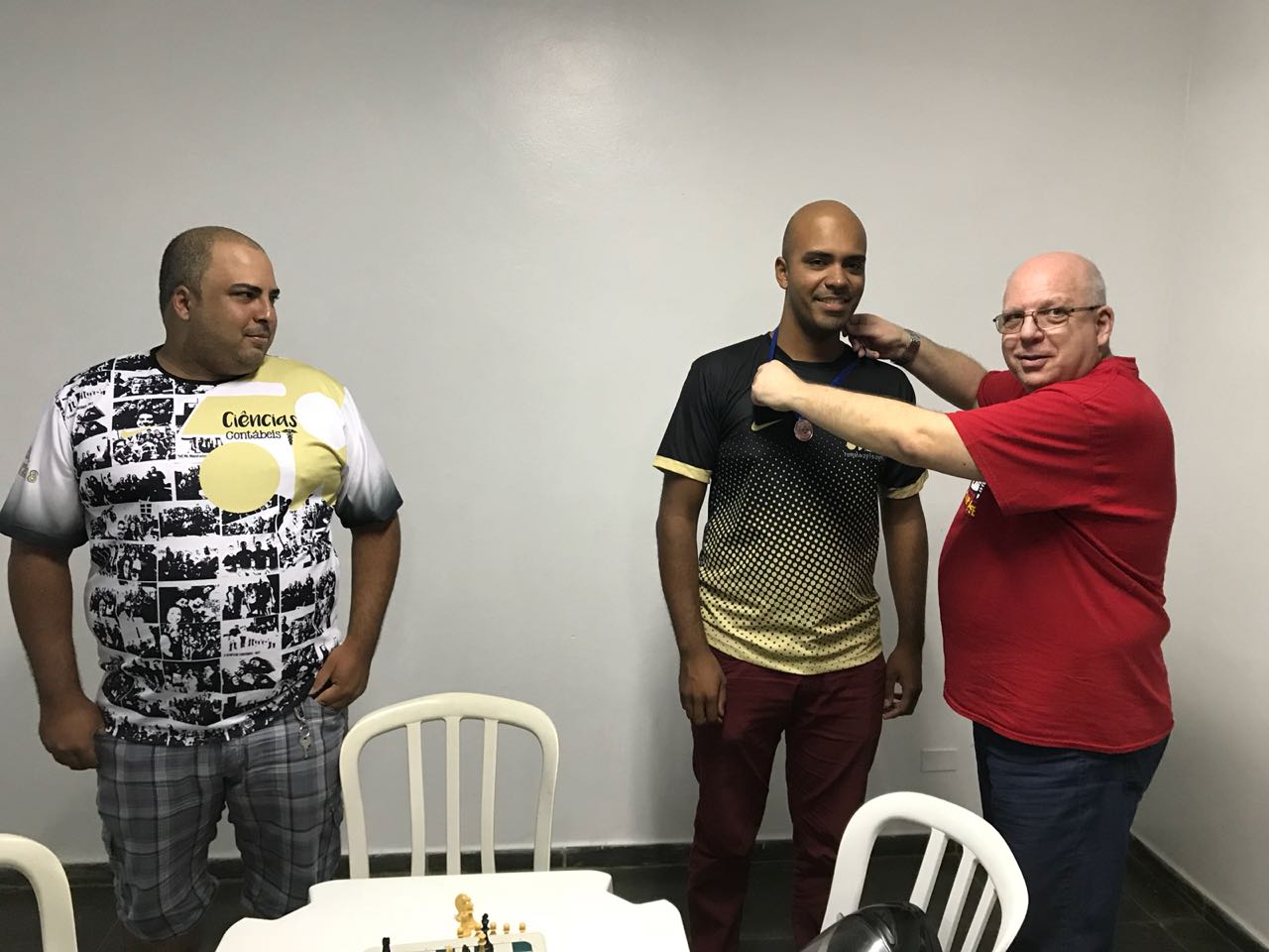 Uma disputa acirrada marcou as últimas rodas do Xadrez, quando 3 participantes chegaram em igualdade de vitórias na última rodada. No final, Felipe Pereira do 7º Semestre de Ciências Contábeis foi o grande vencedor, com Rafael Evangelista, também do 7º Semestre de Ciências Contábeis e Jhonny Lin do 7º Semestre de Administração em 2º lugar.