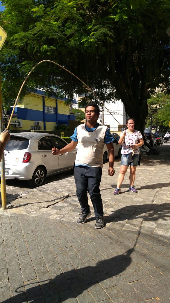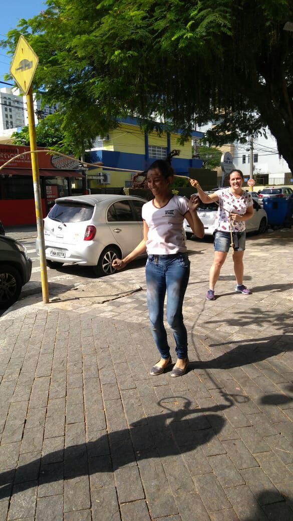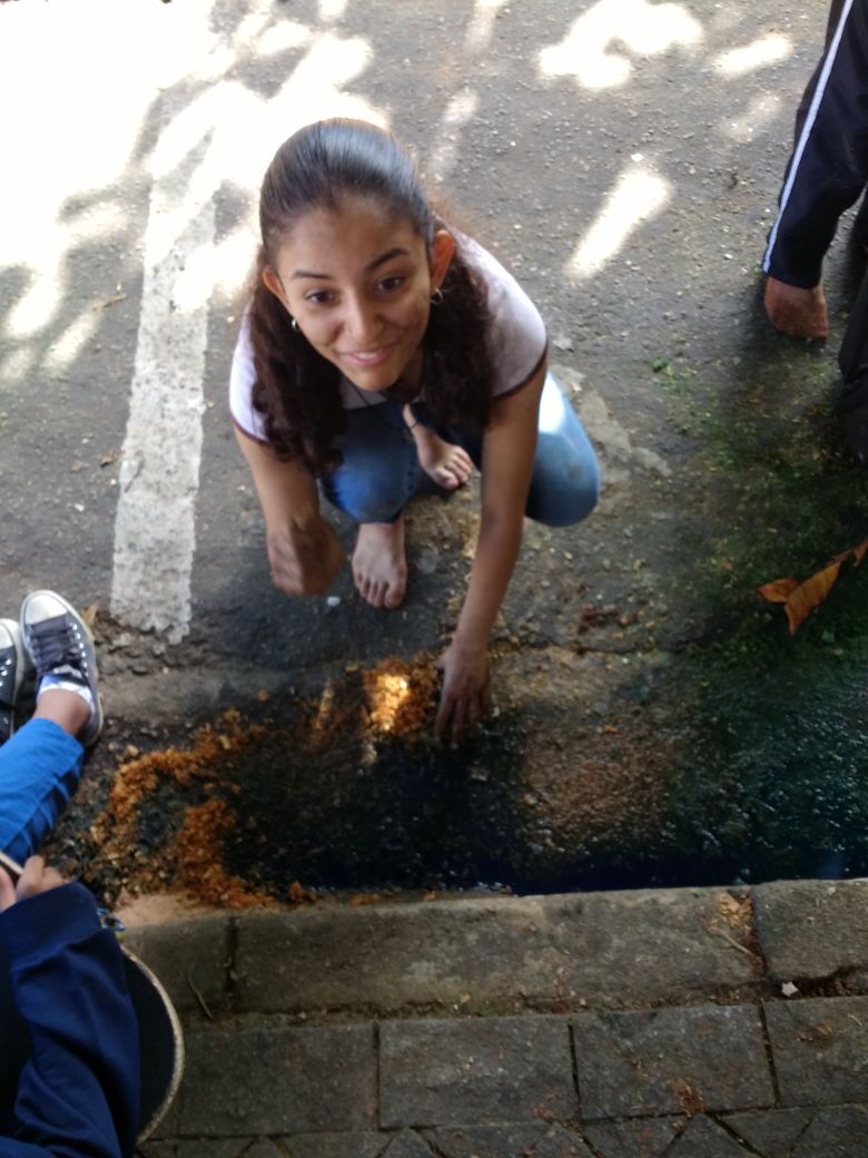 A Aluna Nair Lledó do 8ºBm foi a escolhida para fazer a transcrição do desenho no asfalto, e, logo em seguida, os alunos fizeram a parte da pintura por cima da arte, sempre acompanhados de Ana Cristina que corrigia alguns pontos mostrando a eles a melhor forma de realizar o trabalho. “A orientação é importante, especialmente, no sentido de inspirá-los e mostras a importância do cuidado com detalhes que podem fazer grande diferença na obra de arte”, destacou.