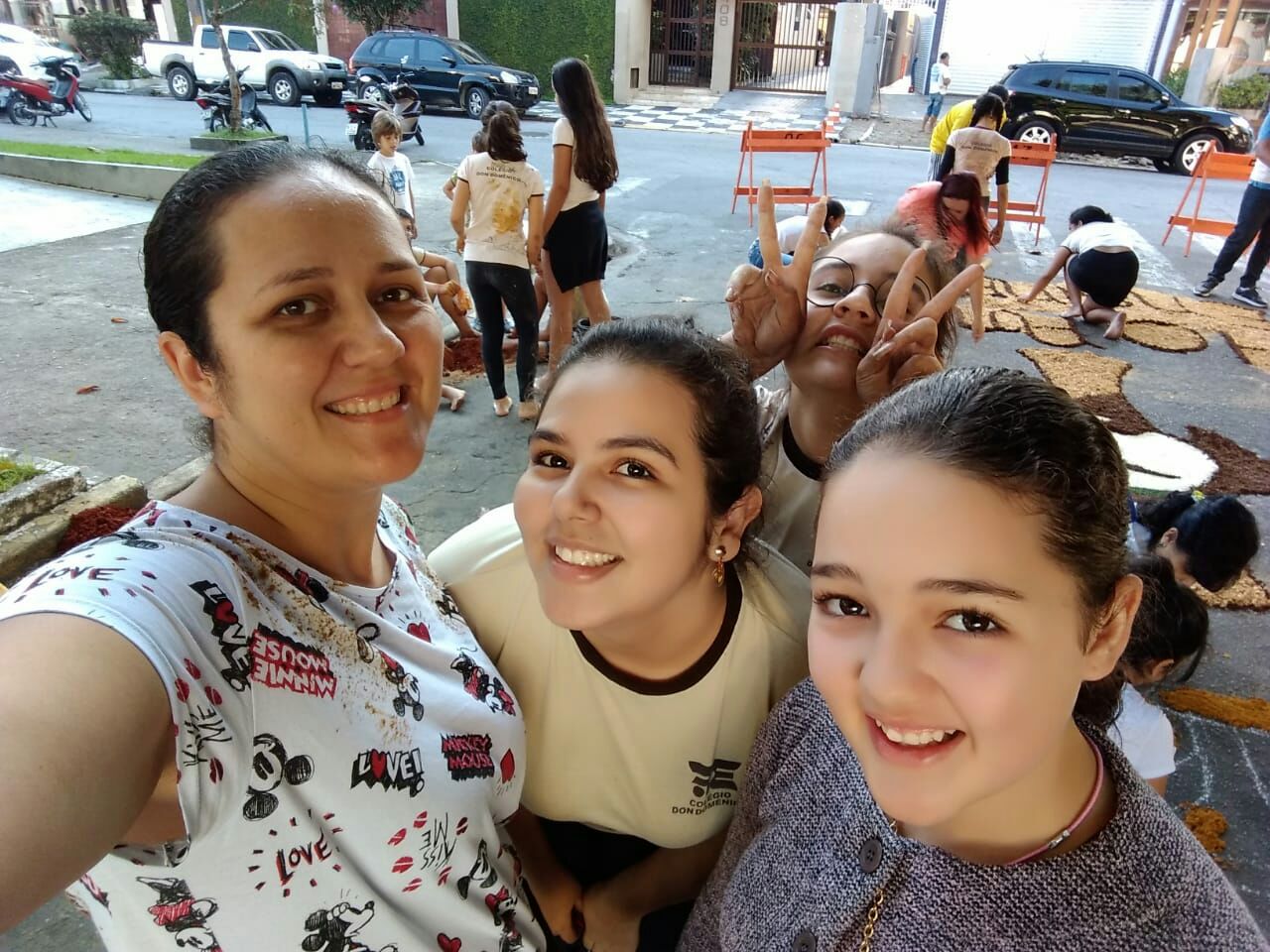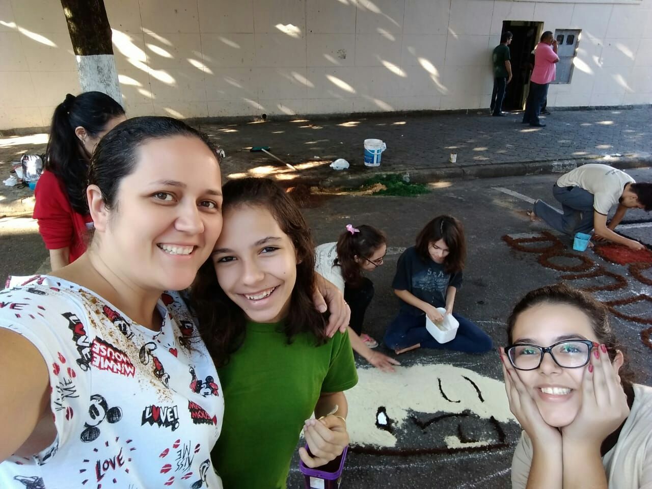 Além da professora Ana Cristina, estiveram presentes também, a professora Gisele A. Dutra e a estagiária da professora de Artes Mariane Nascimento. “Foi uma honra coordenar as crianças e estar mais uma vez com elas. Acordamos bem cedo, mesmo sendo feriado, para conseguirmos um bom lugar, chegamos todos por volta das 7:00 e 7:30 e trabalhamos até as 13:00.”, afirmou a professora Ana Cristina de Artes.