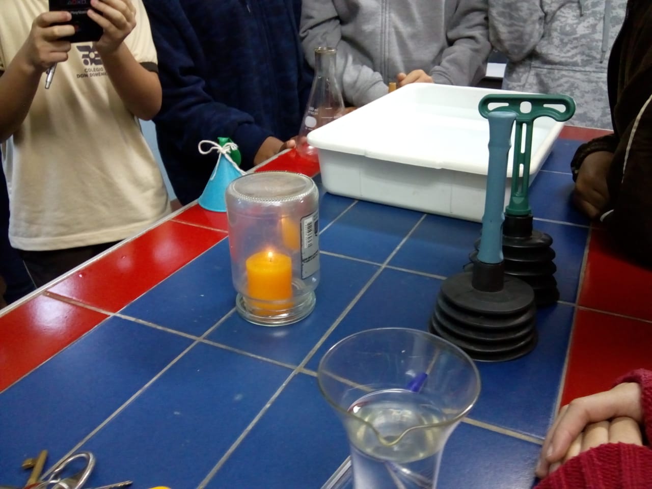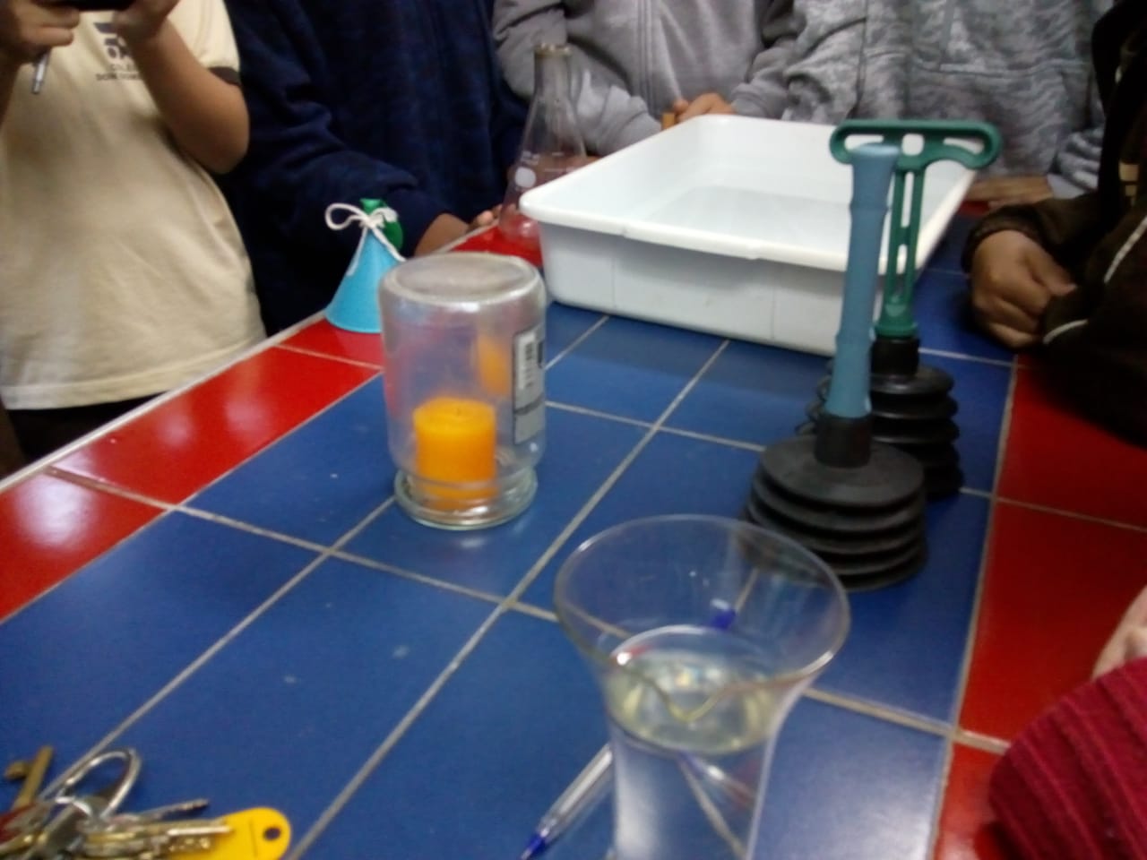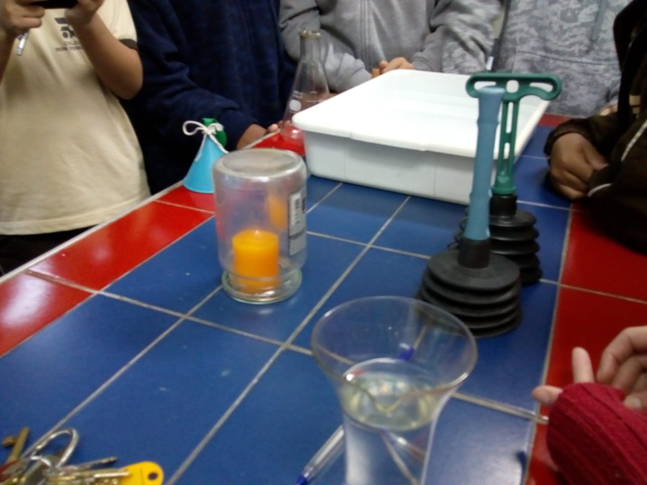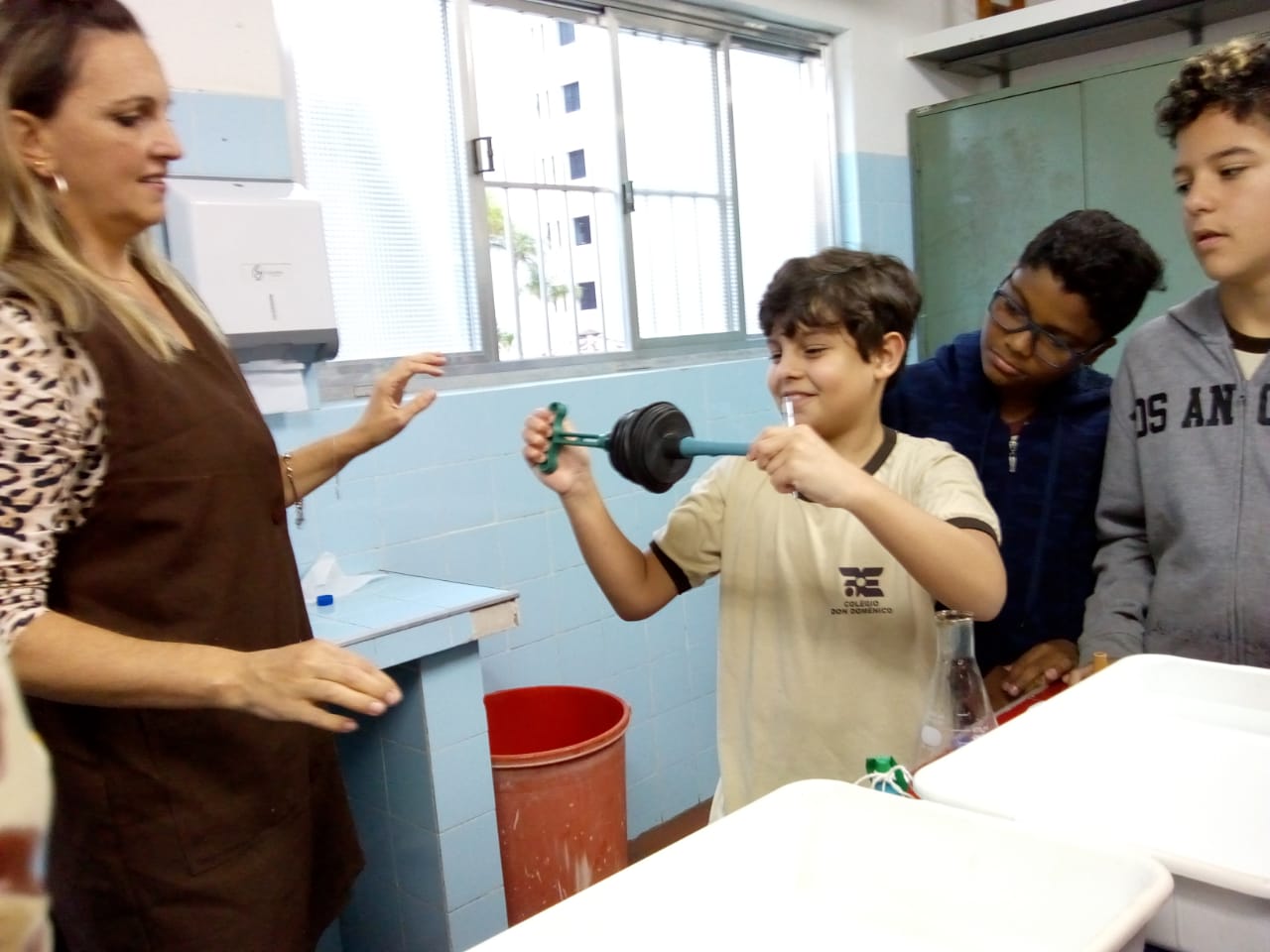 Já no 6AT, os alunos desenvolveram uma atividade prático sobre Pressão Atmosférica, utilizando algumas experiências. “Ao todo desenvolvemos três experiências. Na primeira, demonstramos a razão pela qual uma vela se apaga quando a colocamos no pote de vidro. Na sequência, utilizando um copo de água, a experiência demonstrou como a pressão do ar impede que a água do corpo caia. E, para finalizar, utilizamos um desentupidor de pia”.