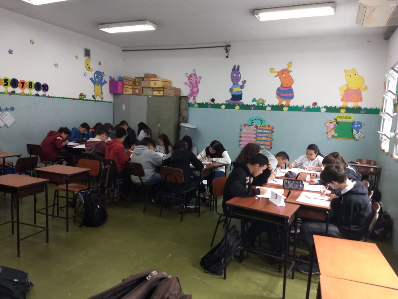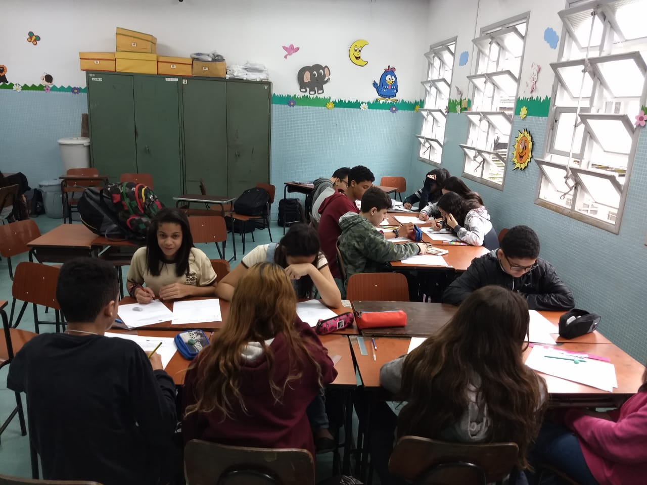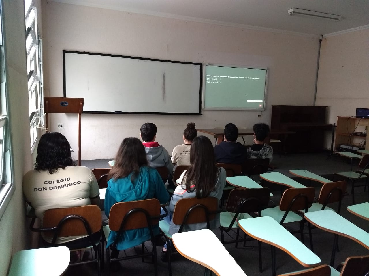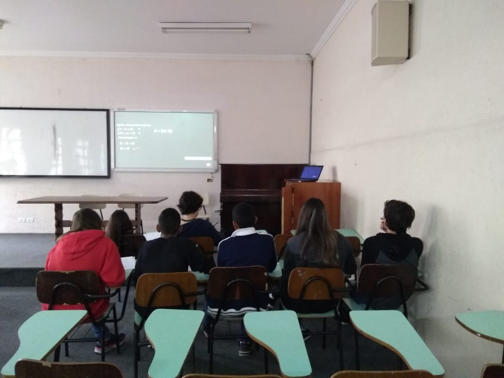 Os alunos do 8º Ano do Ensino Fundamental participaram de uma aula diferente coordenada pela Profa. Gisele. Na oportunidade, os alunos trabalharam Sistemas de Equações do Primeiro Grau com duas incógnitas. “Em cada estação tinha a explicação de um método de resolução. Eles utilizaram quatro métodos para resolver os exercícios: substituição, adição, comparação e gráfico”, destaca.
