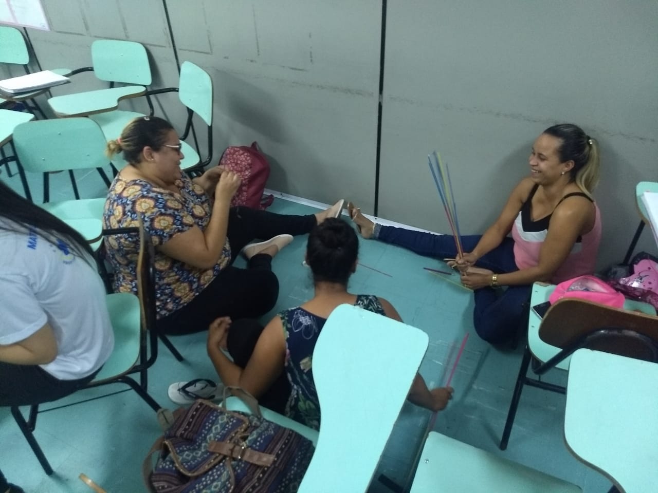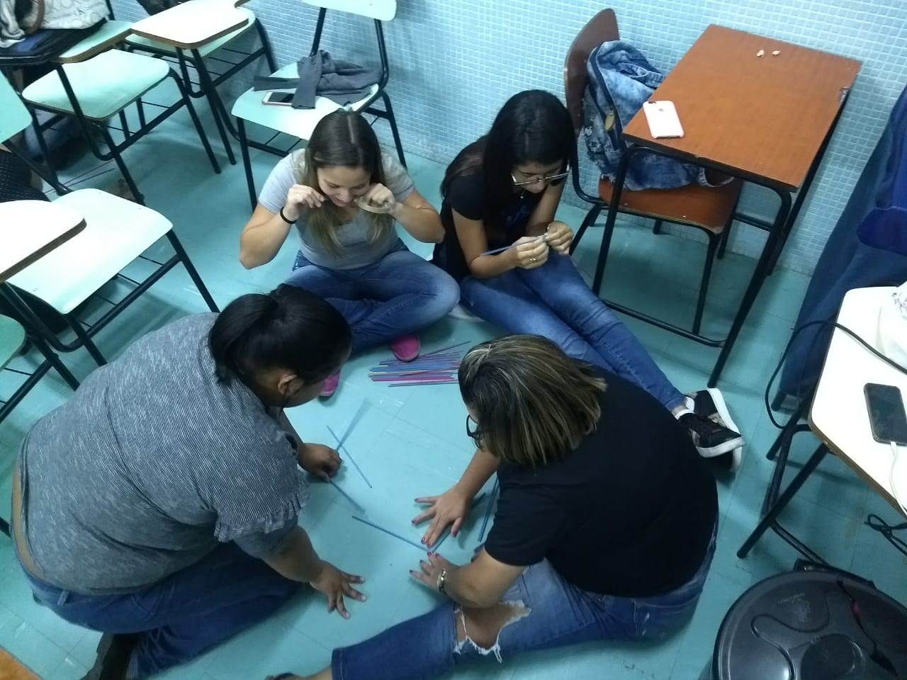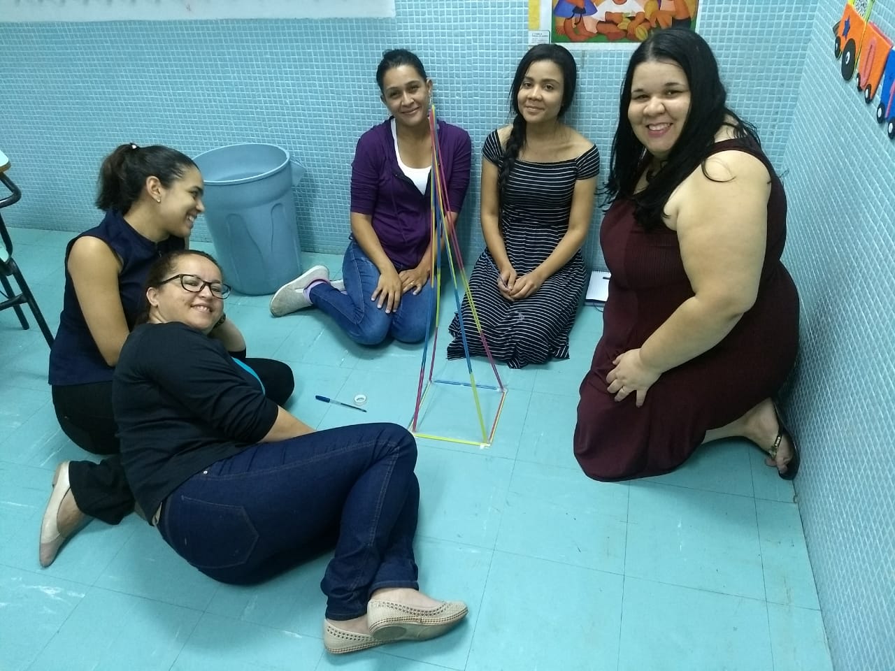 A mesma metodologia foi aplicada pelo Prof. José Tartanhar no 3º semestre de Pedagogia, onde os alunos trabalharam com a resolução de um problema estabelecido pelo professor e, mais tarde, finalizaram com a construção da pirâmide, utilizando canudos, fita crepe e barbante.