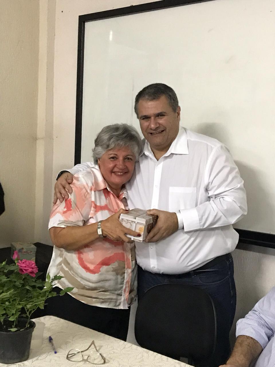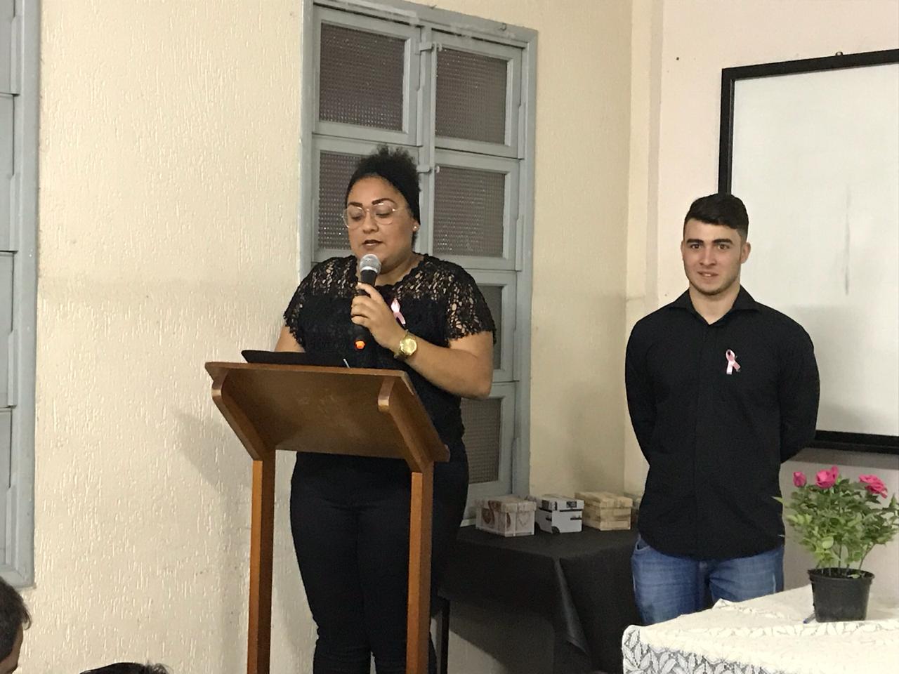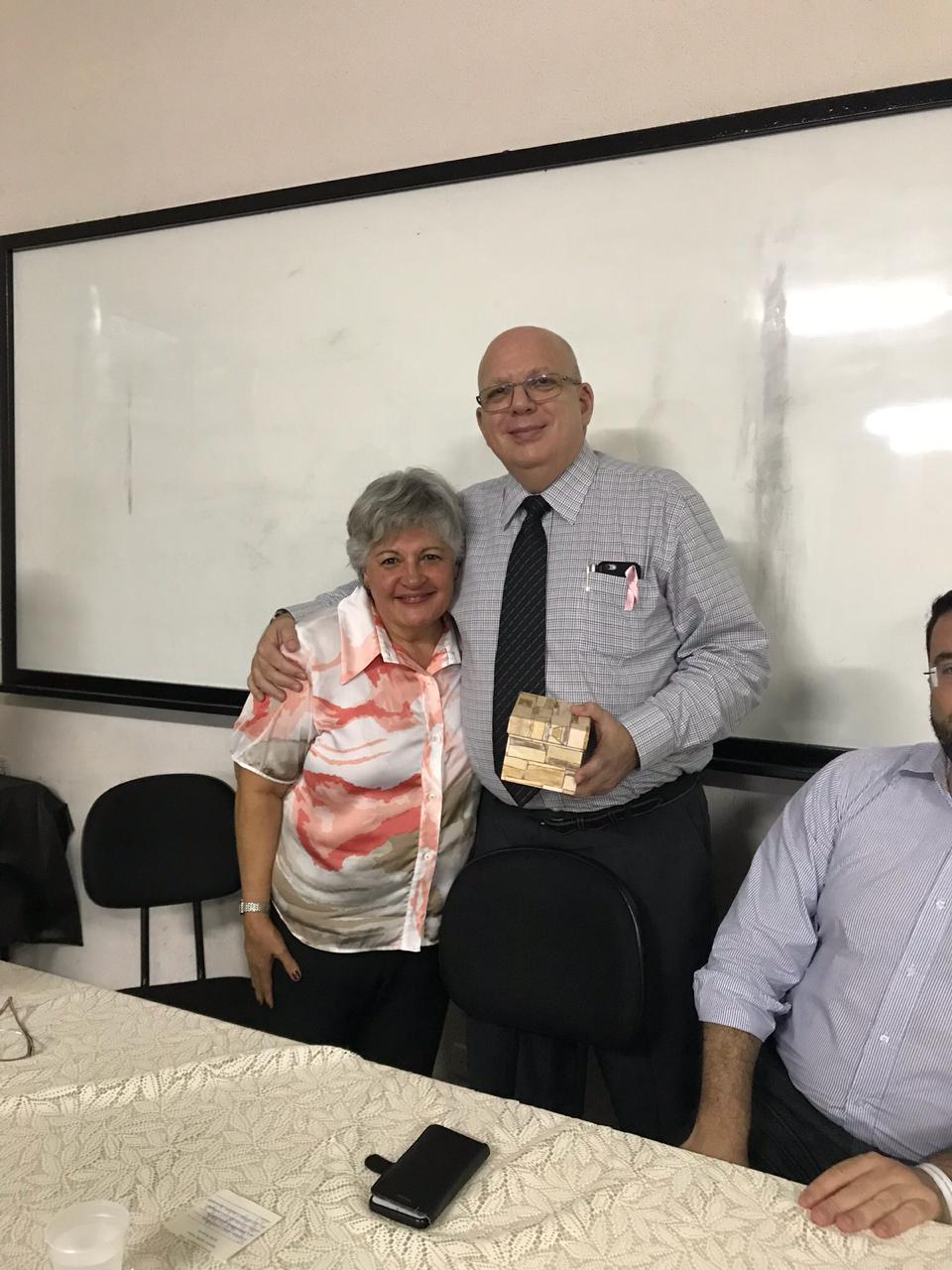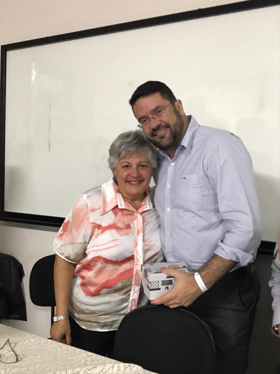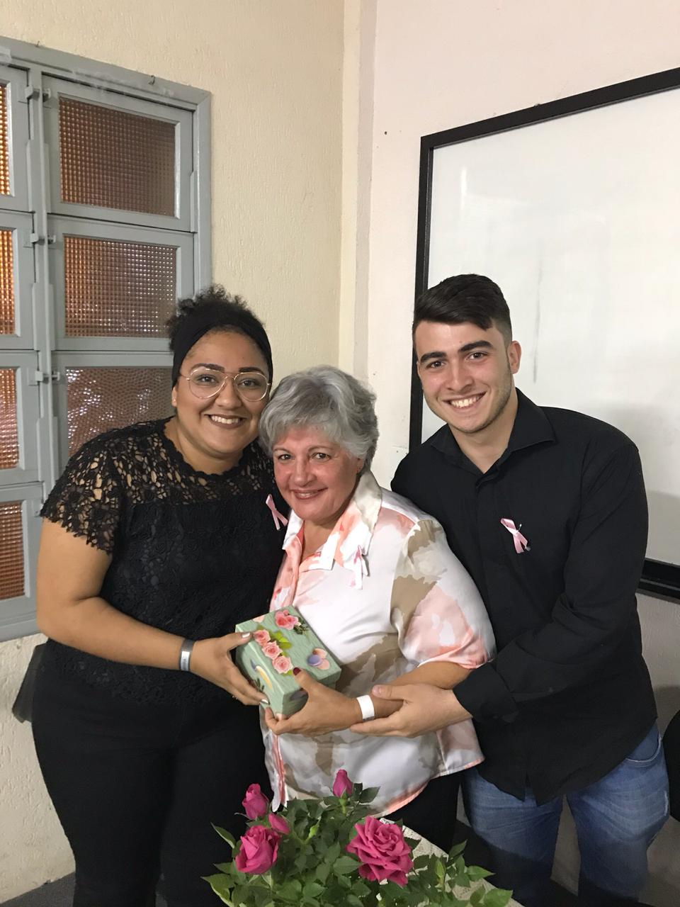 Os alunos aproveitaram a oportunidade para homenagear o palestrante, Prof. Me. Fernando Mendes Passaes, o coordenador do Curso de Administração, Prof. Me. Marcel André Valluis e, especialmente, a Profa. Nadja da Silva Oliveira.