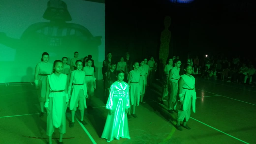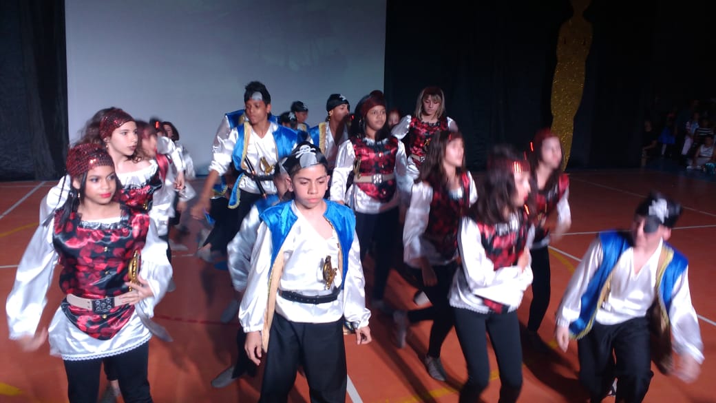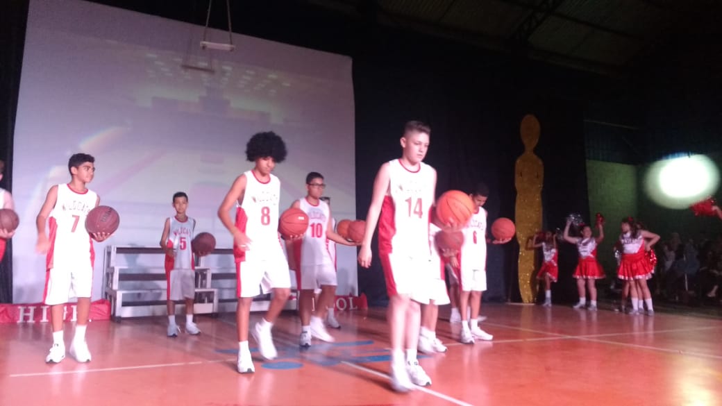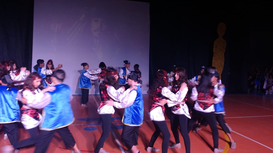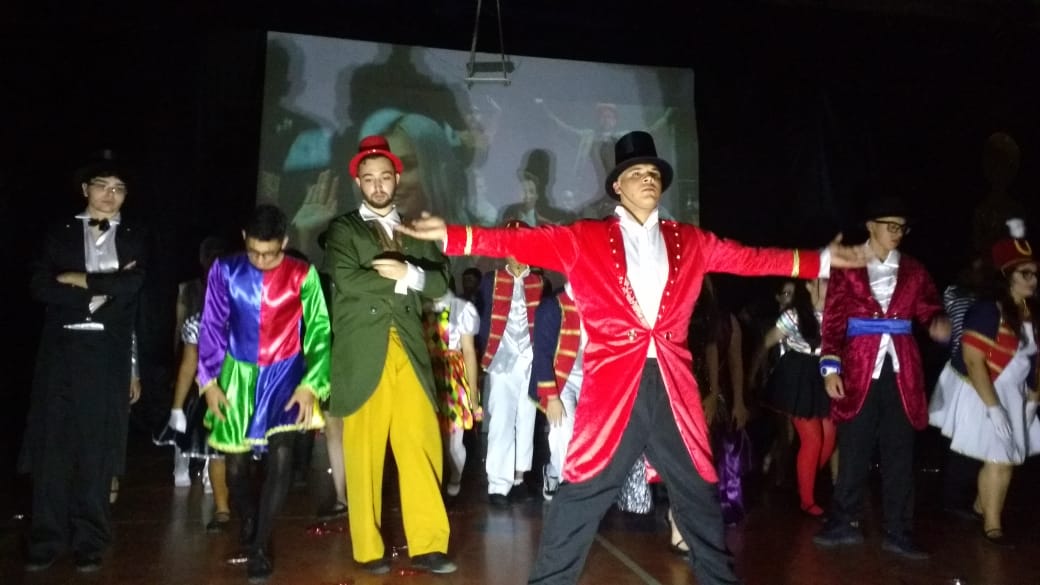 Para finalizar o evento, foi a vez dos alunos do 6º AM, 7º AM e Ensino Médio se apresentarem, utilizando filmes de grande sucesso como Moulin Rouge, High School Musical e O Rei do Show.