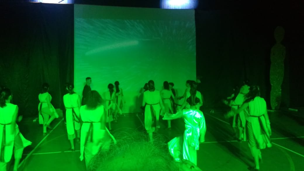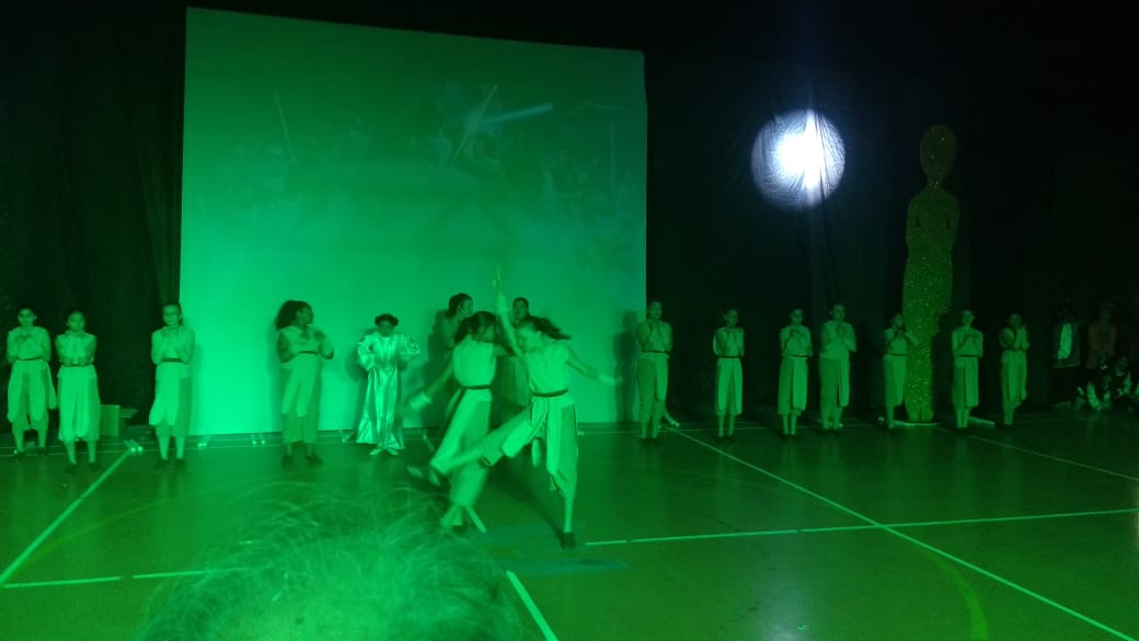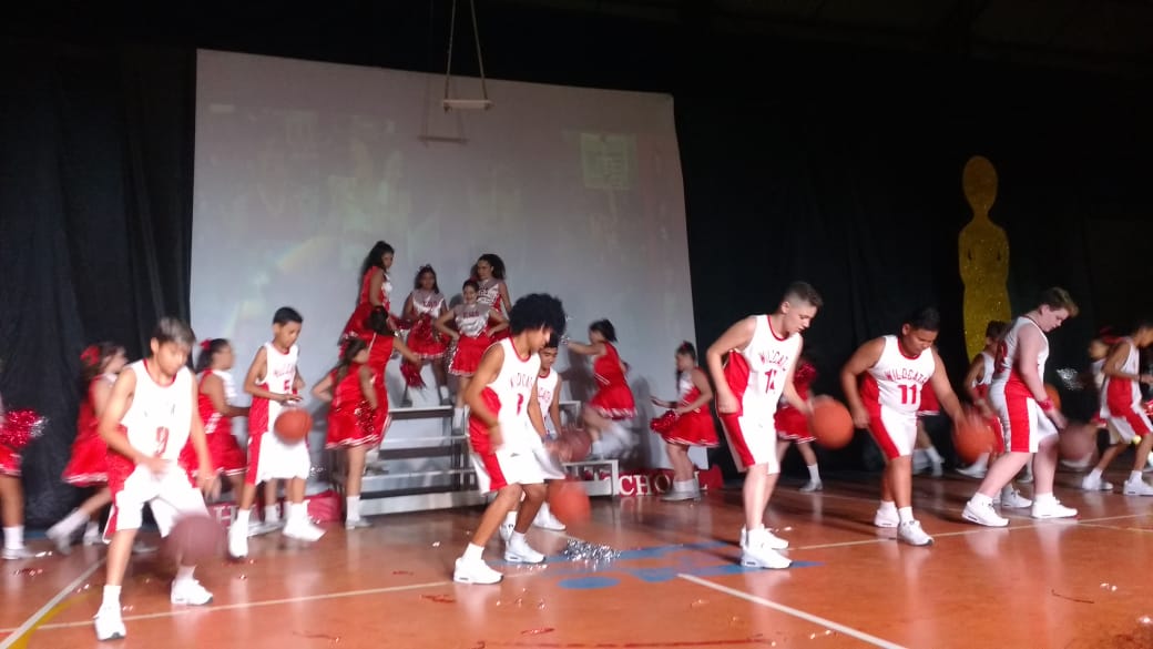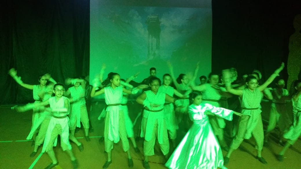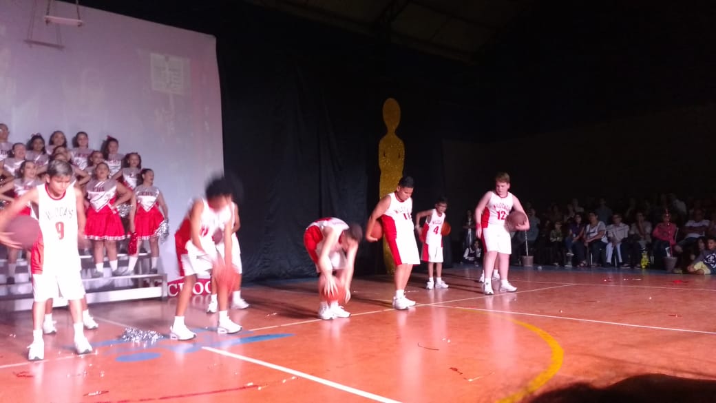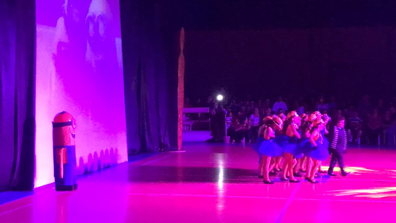 Para finalizar o evento, foi a vez dos alunos do 6º AM, 7º AM e Ensino Médio se apresentarem, utilizando filmes de grande sucesso como Moulin Rouge, High School Musical e O Rei do Show.