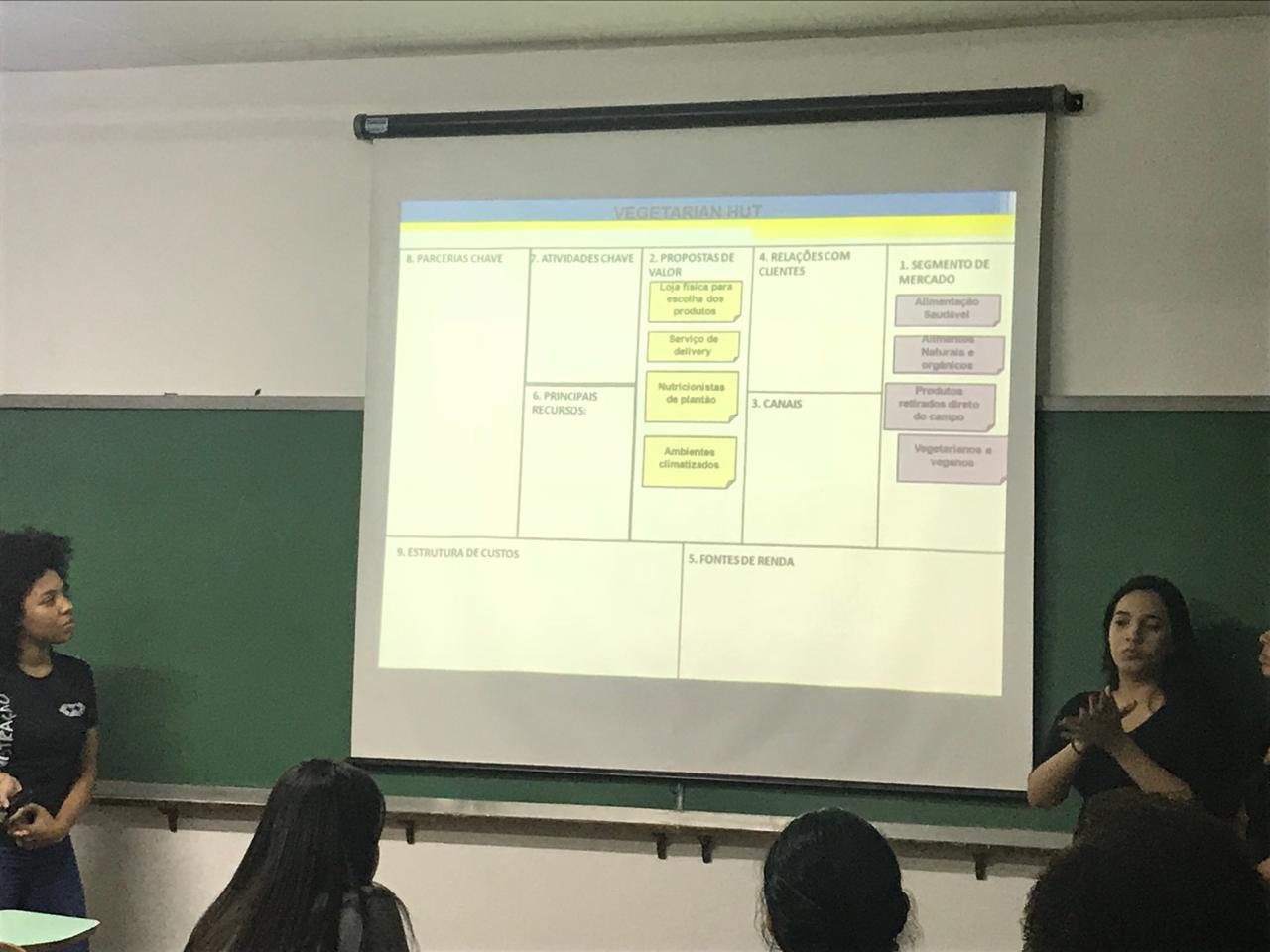A Profa. Sandra Vilarinho desenvolveu junto aos alunos do 1º semestre de Administração a Sala de Aula Invertida tendo como tema a Metodologia do Trabalho Científico. “Os alunos realizaram pesquisa de campo a respeito de temas definidos anteriormente e apresentaram os resultados dentro da estrutura exigida pelas normas ABNT”, afirmou. Além disso, os alunos estão desenvolvendo o draft de um plano de negócios utilizando o Canvas.