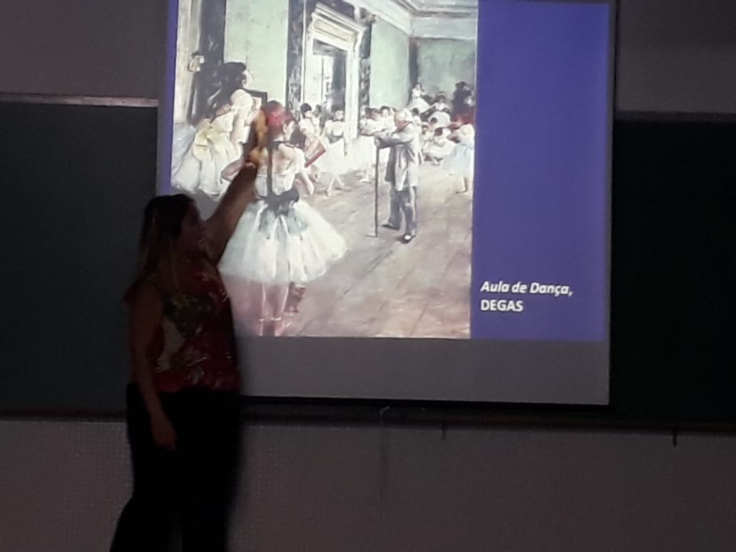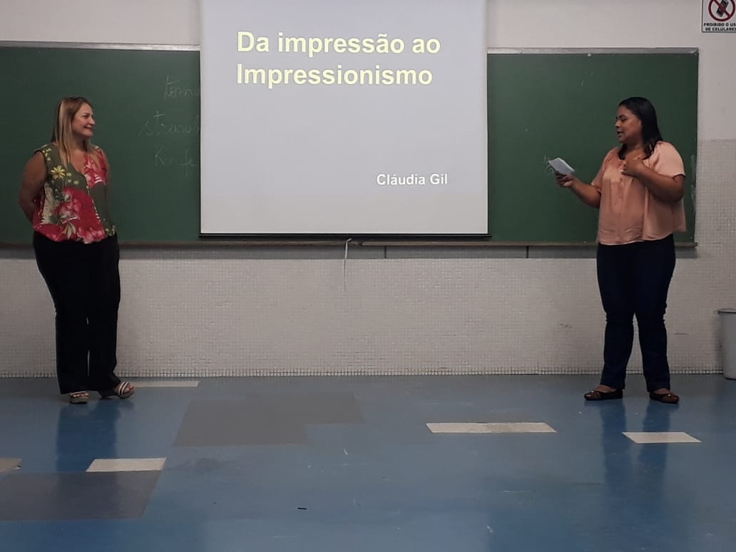 No segundo dia do Encontro de Letras as convidadas do evento foram as professoras Claudia Magalhães Gil e Isabella Pinheiro. Na primeira palestra sobre o tema “Da Impressão Ao Impressionismo”, Claudia mostrou aos alunos diversas obras de artes e explicou o que os artistas queriam dizer para o publico com elas. “Existem vários tipos diferentes de se expressar e a arte é um deles. O impressionismo foi um movimento artístico que surgiu na França no final do século XIX. Uma arte visual. Pintores como o Courbet, Manet, Monet, Renoir e Degas se expressam por meio de suas obras”, afirmou.