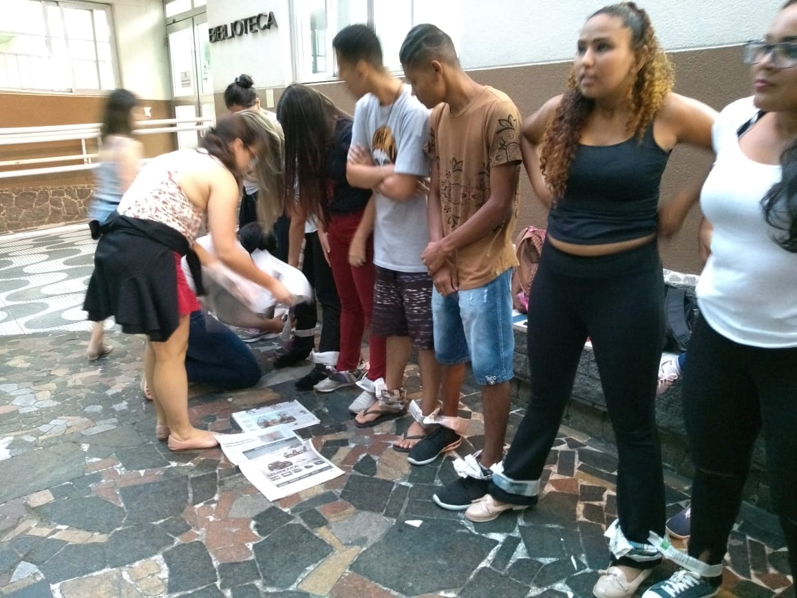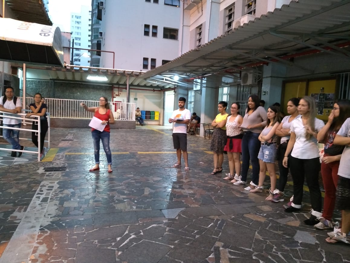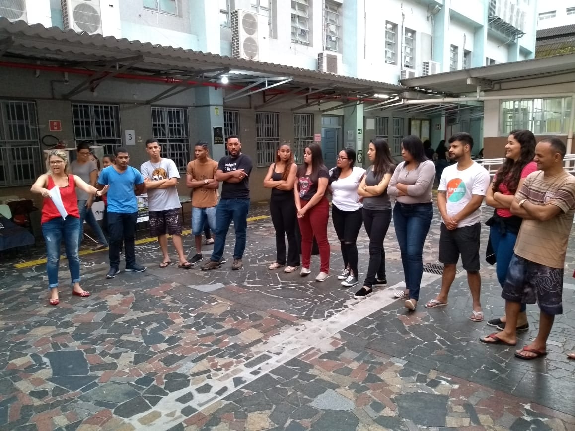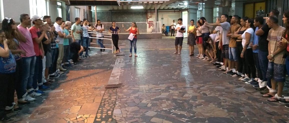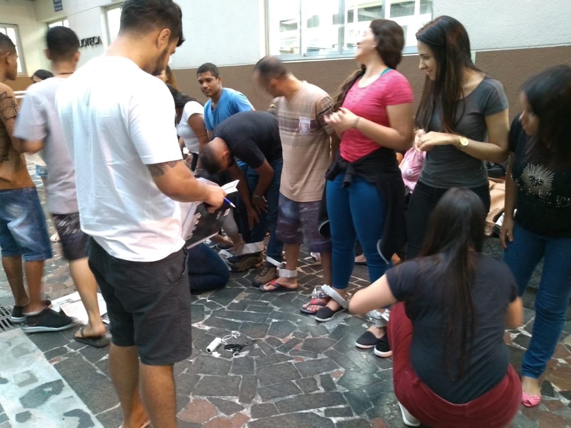 “A dinâmica consistiu na divisão da turma em dois grandes grupos que representavam dois turnos de trabalho na produção de uma empresa. Ambos os grupos receberam o mesmo material para produção: jornais, tesoura, durex, barbante e grampeador, e tiveram alguns minutos para decidir como fariam para realizar a produção de anéis de jornal que devem ser presos aos participantes formando uma fila”, explicou.