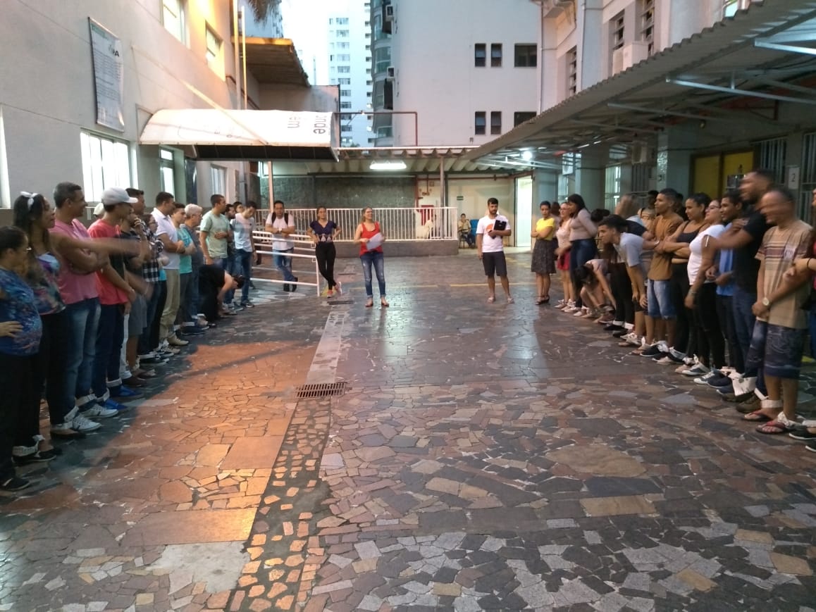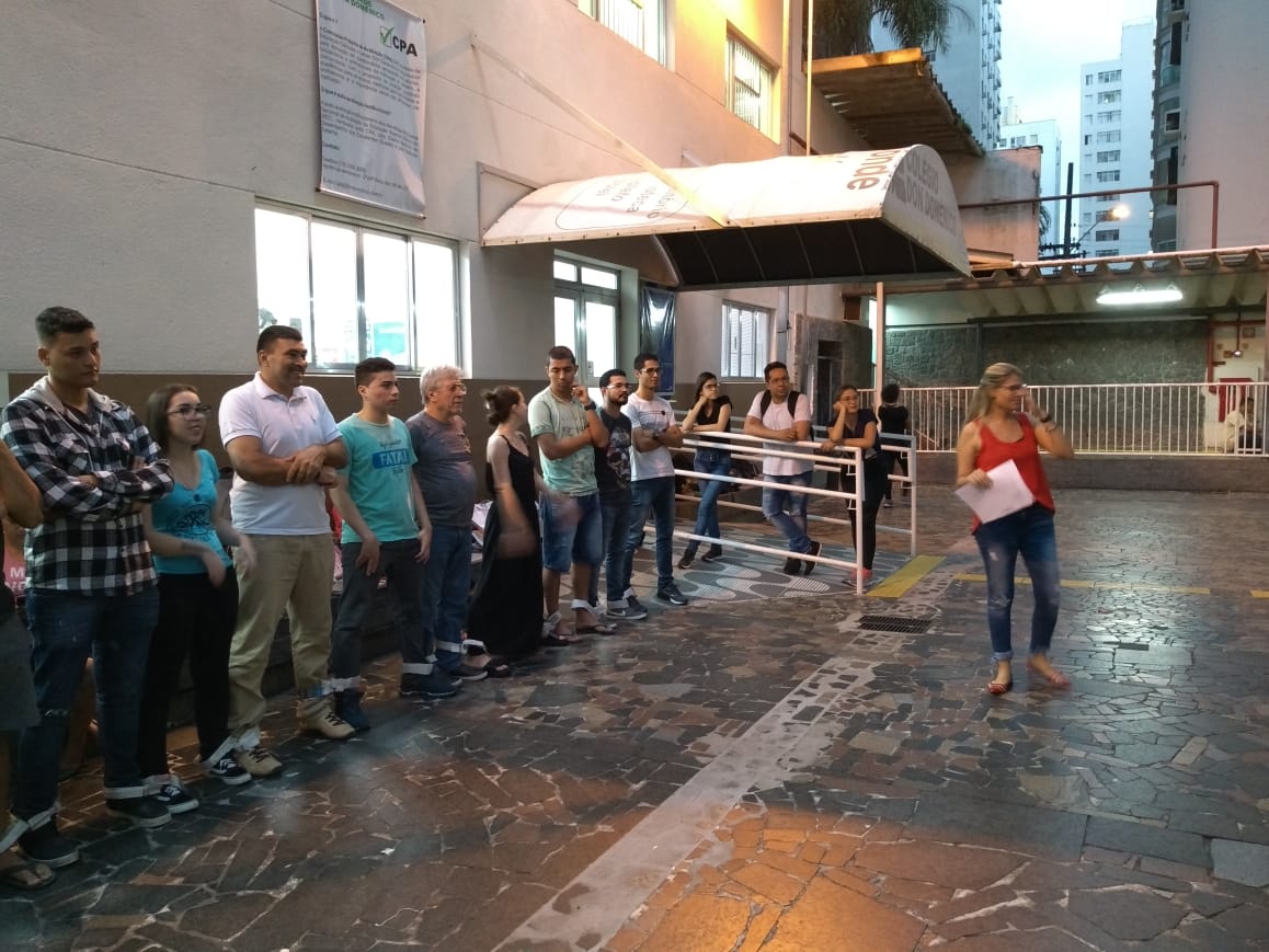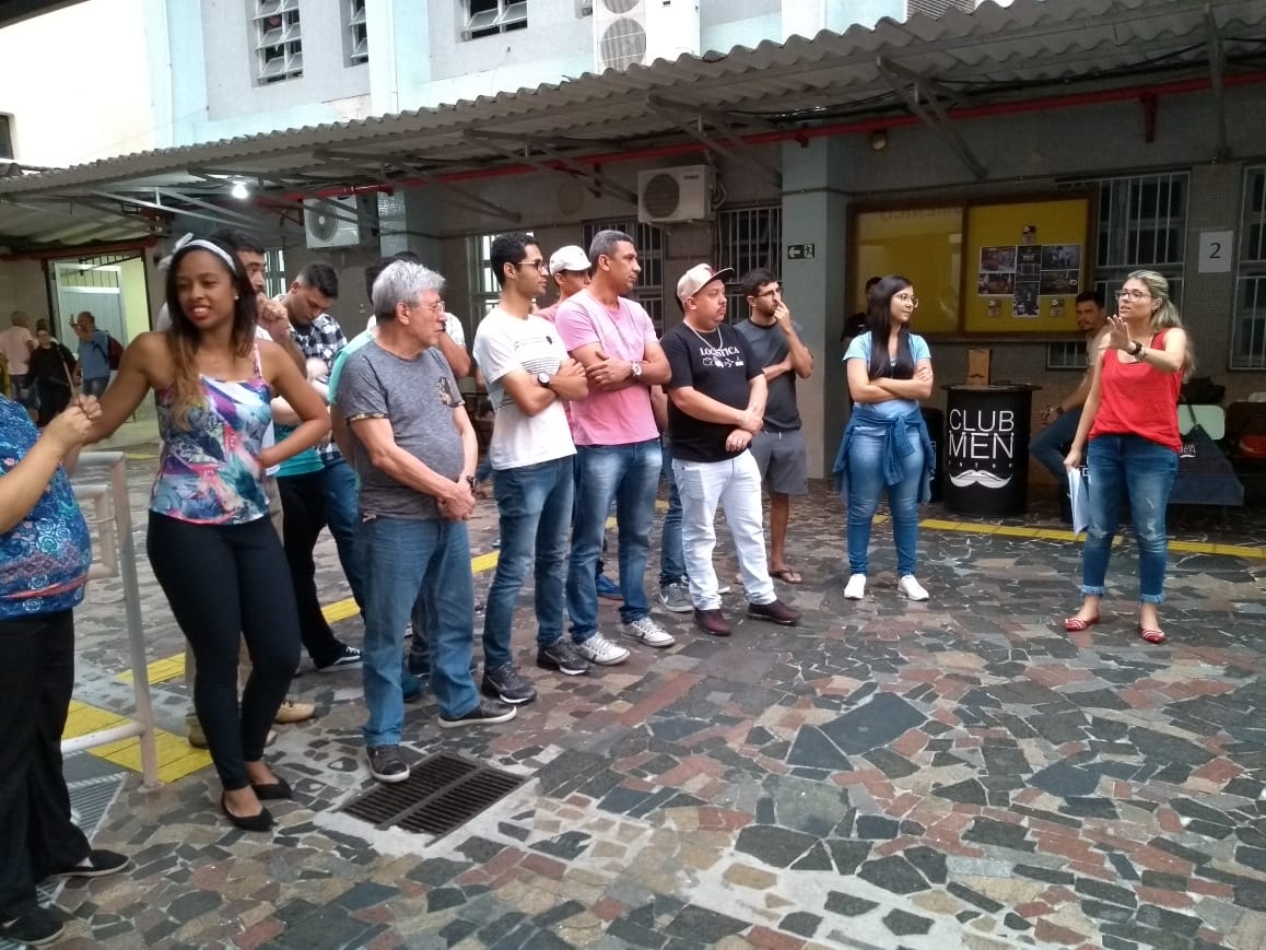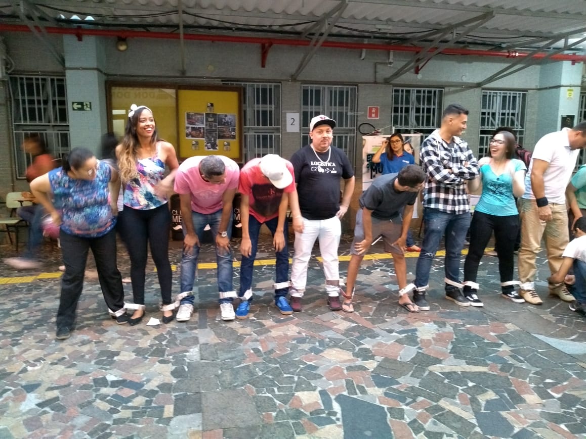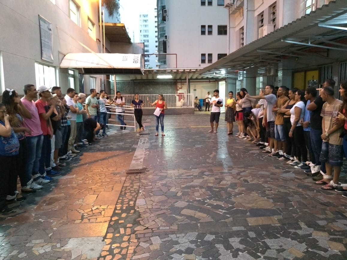“A dinâmica consistiu na divisão da turma em dois grandes grupos que representavam dois turnos de trabalho na produção de uma empresa. Ambos os grupos receberam o mesmo material para produção: jornais, tesoura, durex, barbante e grampeador, e tiveram alguns minutos para decidir como fariam para realizar a produção de anéis de jornal que devem ser presos aos participantes formando uma fila”, explicou.