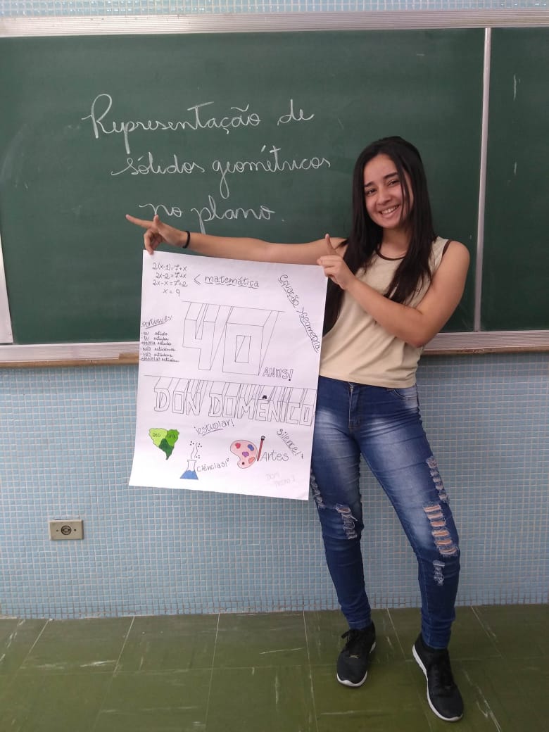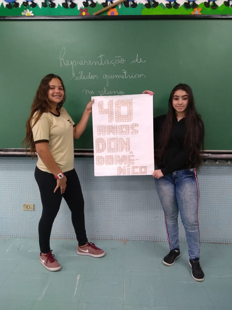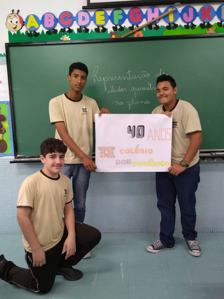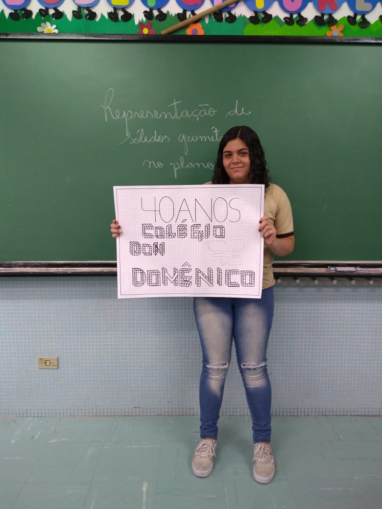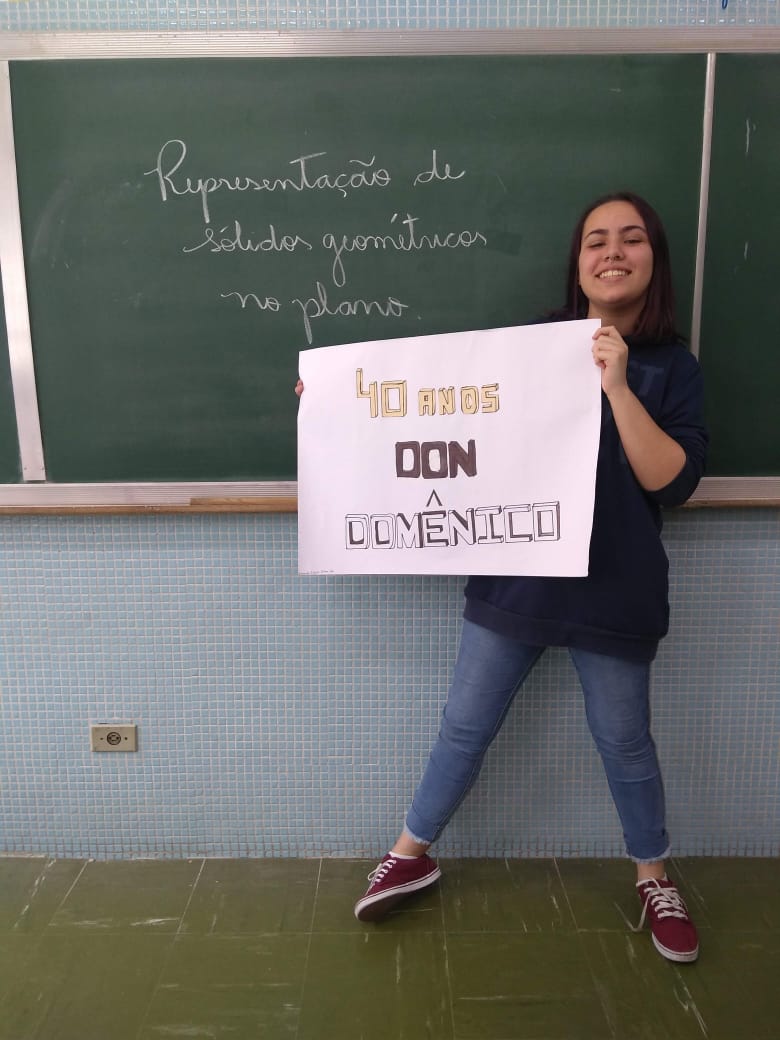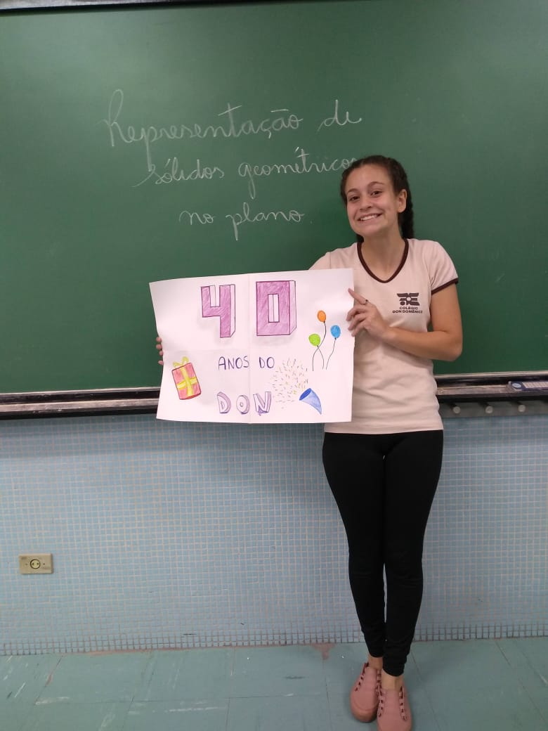Uma aula voltada para a Representação de Sólidos Geométricos no Plano serviu para homenagear os 40 anos do Colégio Don Domênico, completado no último dia 07 de novembro. “Aproveitamos a oportunidade de trabalhar o conteúdo e, ao mesmo tempo, homenagearmos data tão importante para a instituição”, afirmou Gisele.