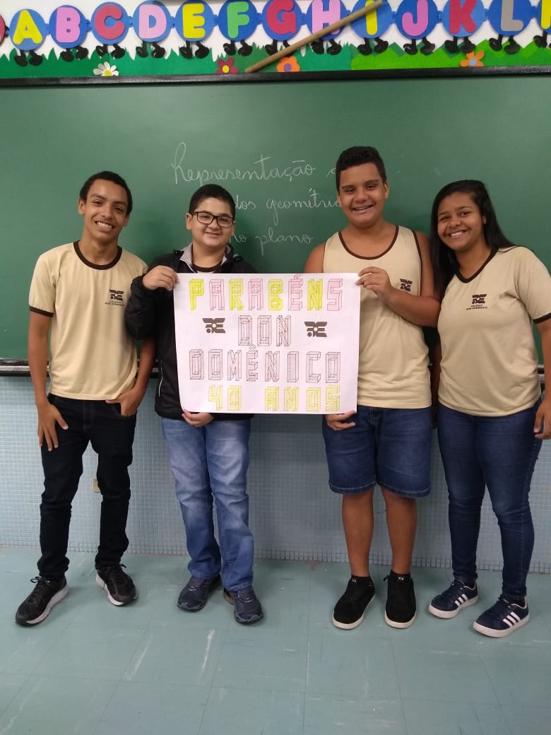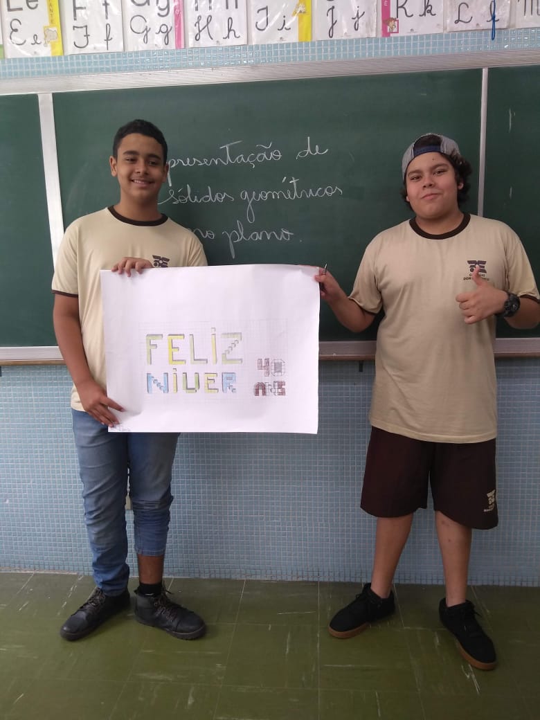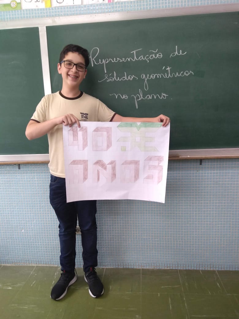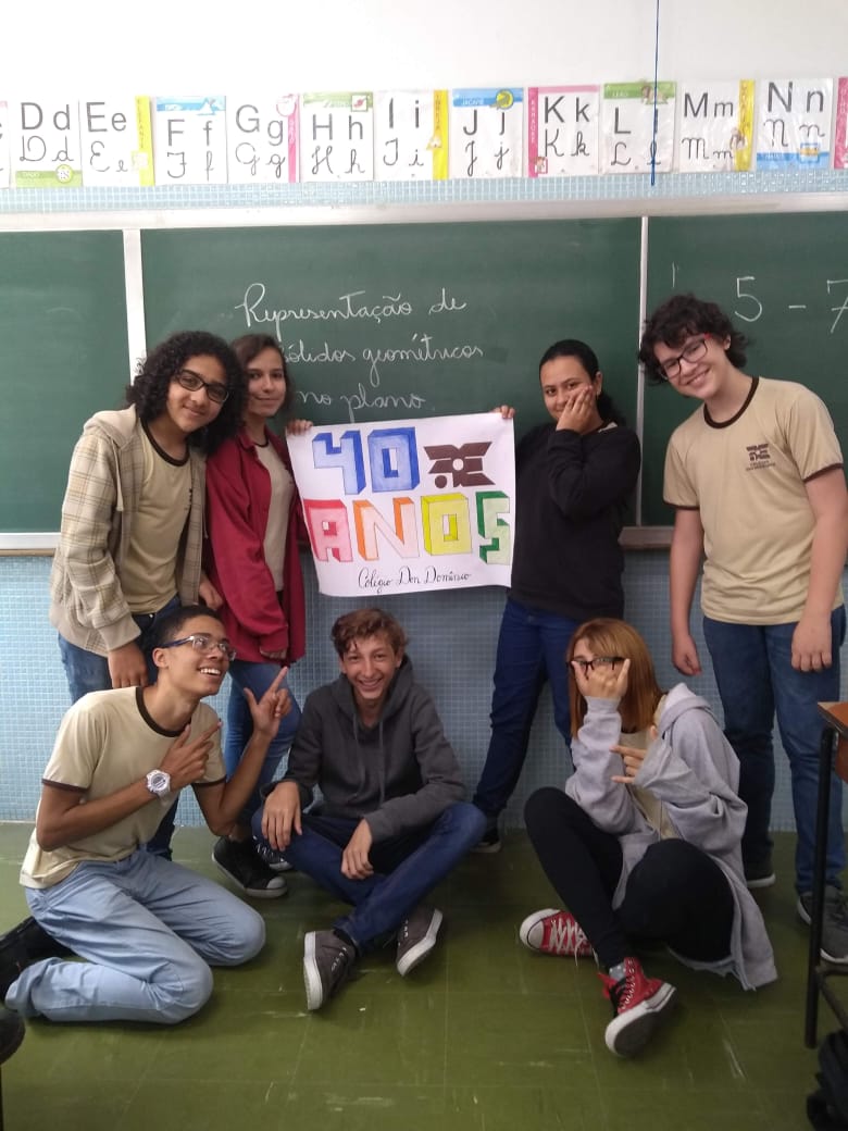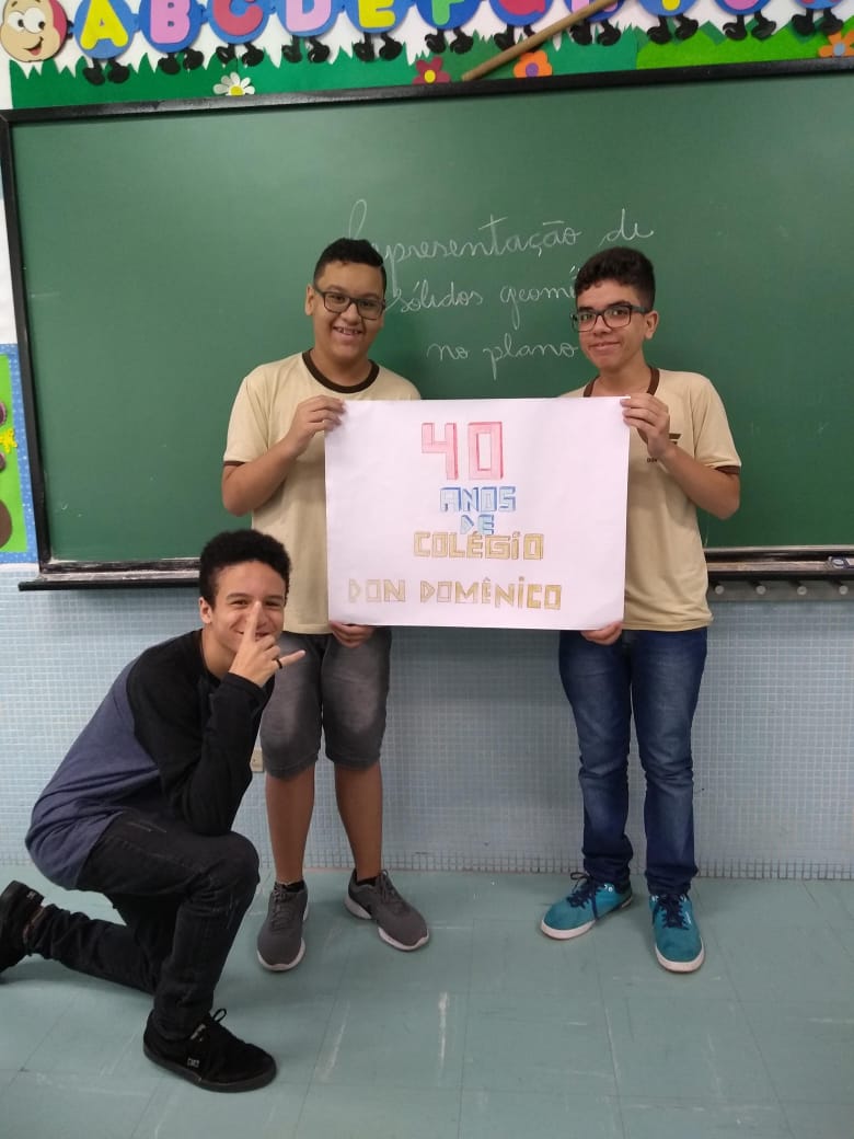 Uma aula voltada para a Representação de Sólidos Geométricos no Plano serviu para homenagear os 40 anos do Colégio Don Domênico, completado no último dia 07 de novembro. “Aproveitamos a oportunidade de trabalhar o conteúdo e, ao mesmo tempo, homenagearmos data tão importante para a instituição”, afirmou Gisele.