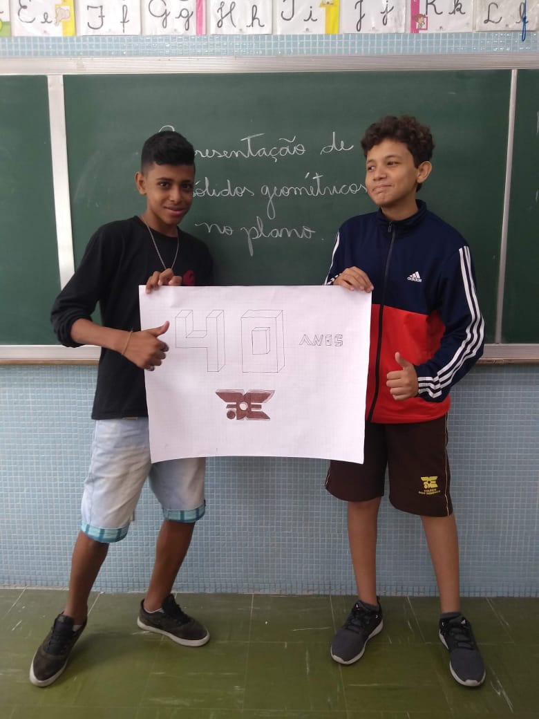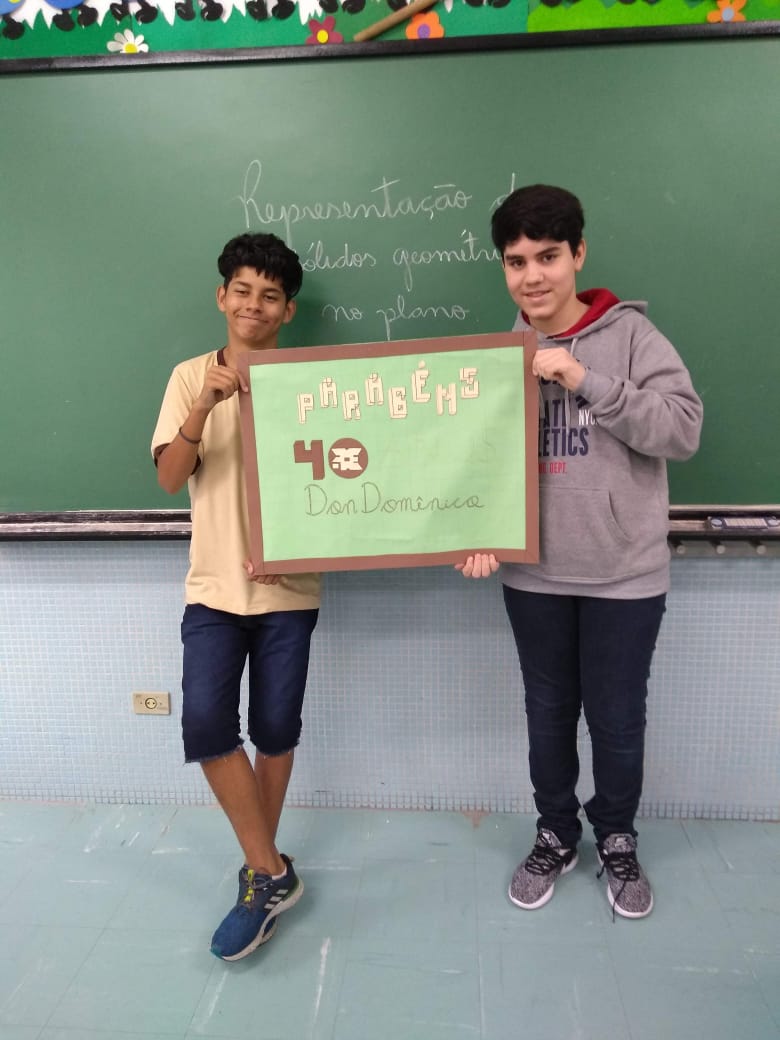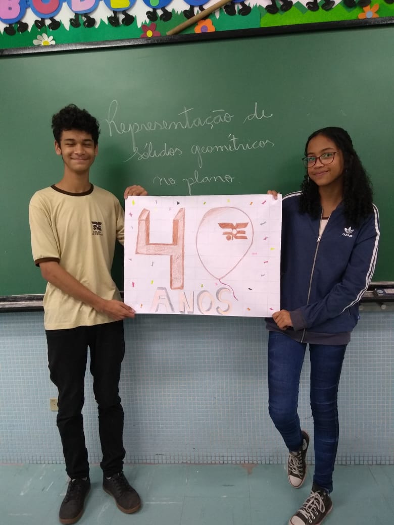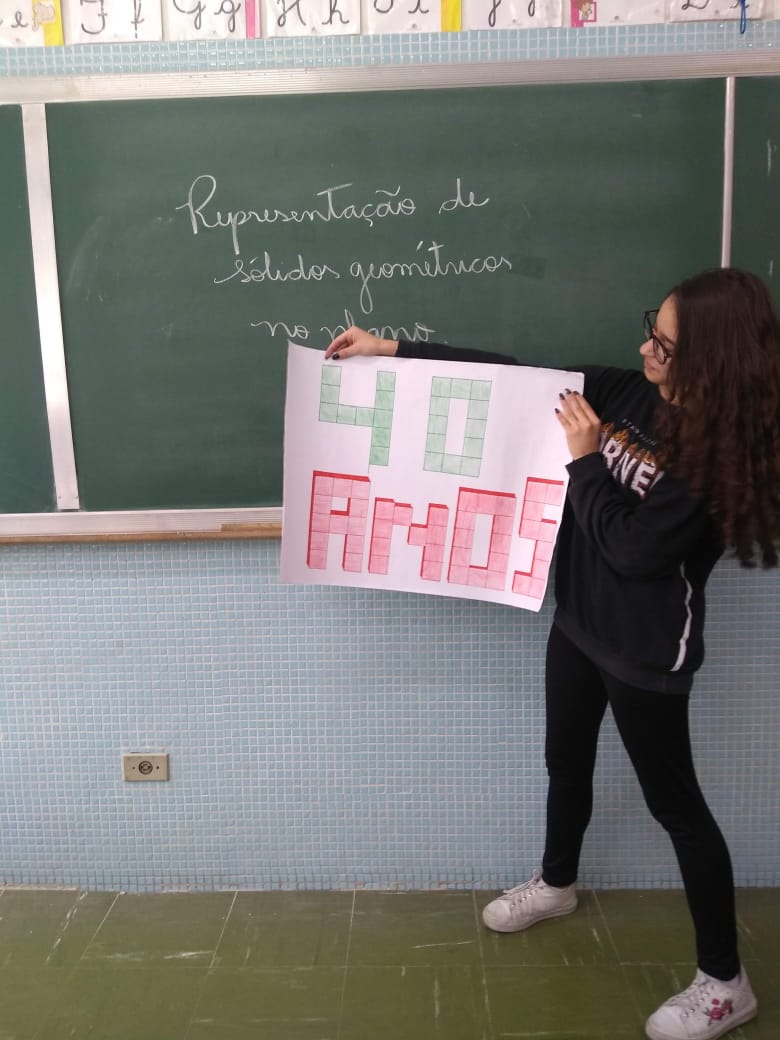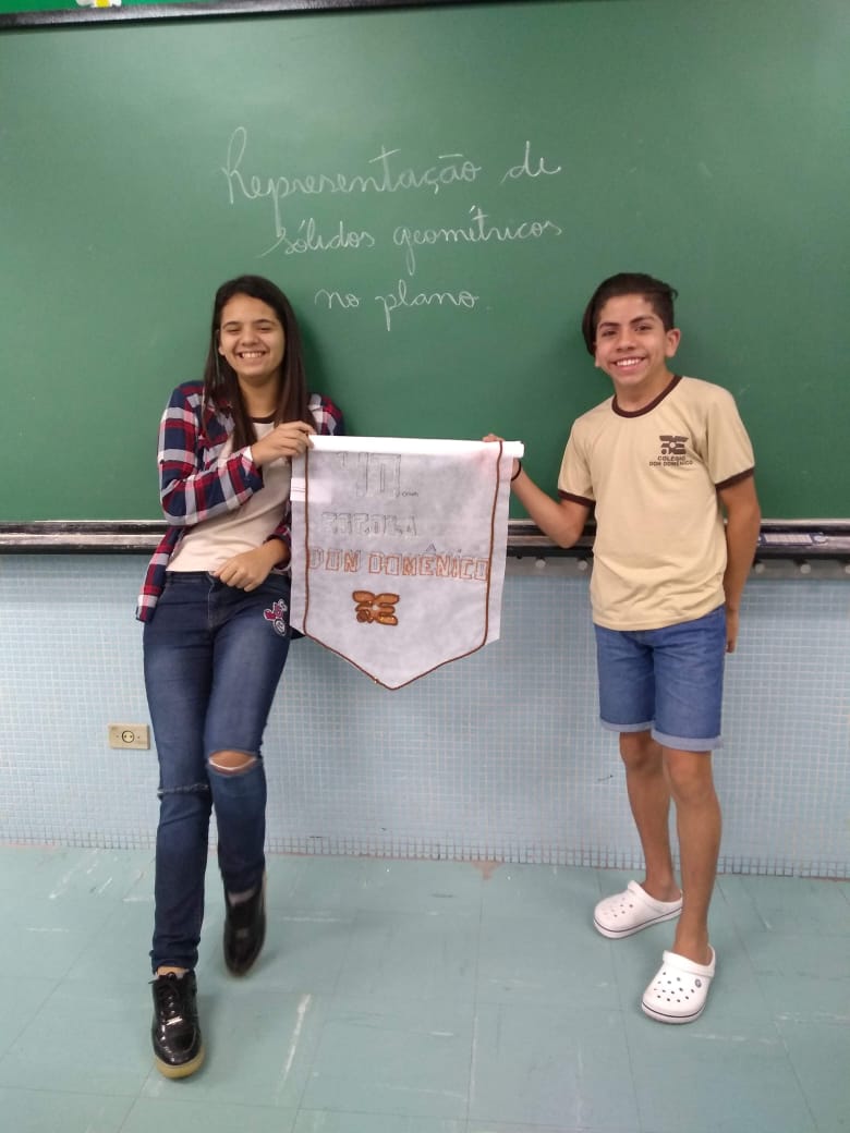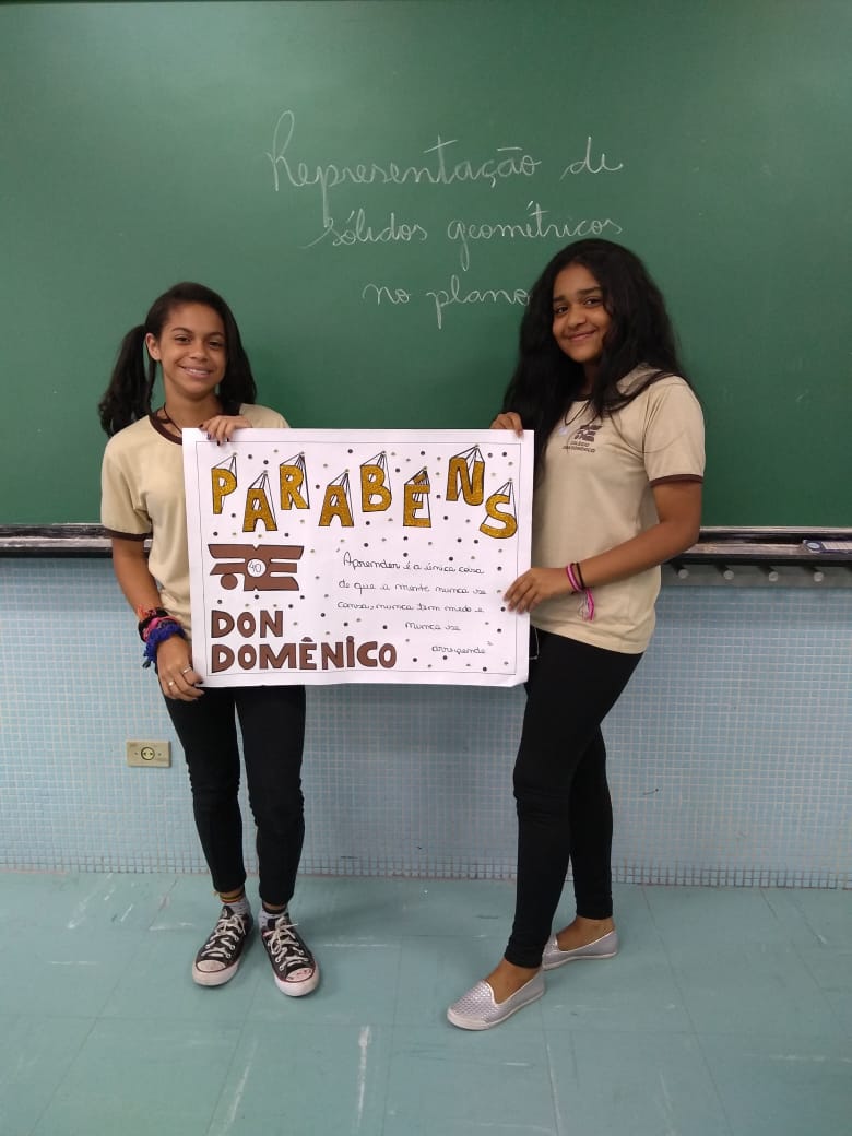 Uma aula voltada para a Representação de Sólidos Geométricos no Plano serviu para homenagear os 40 anos do Colégio Don Domênico, completado no último dia 07 de novembro. “Aproveitamos a oportunidade de trabalhar o conteúdo e, ao mesmo tempo, homenagearmos data tão importante para a instituição”, afirmou Gisele.