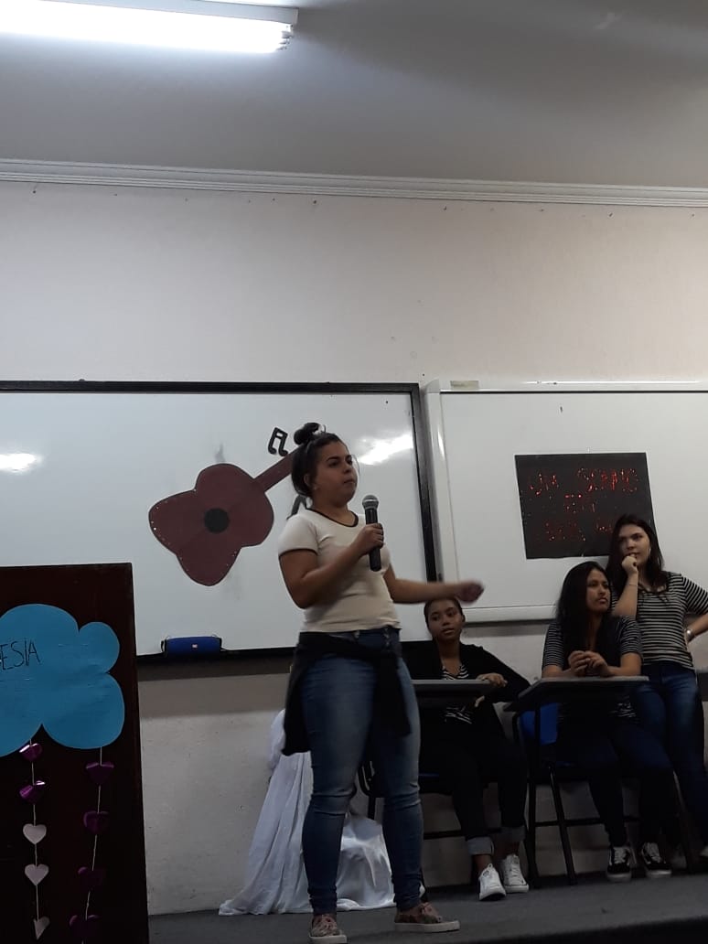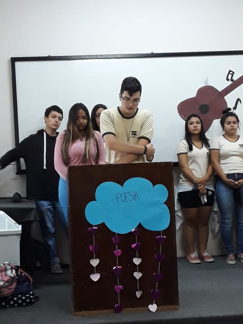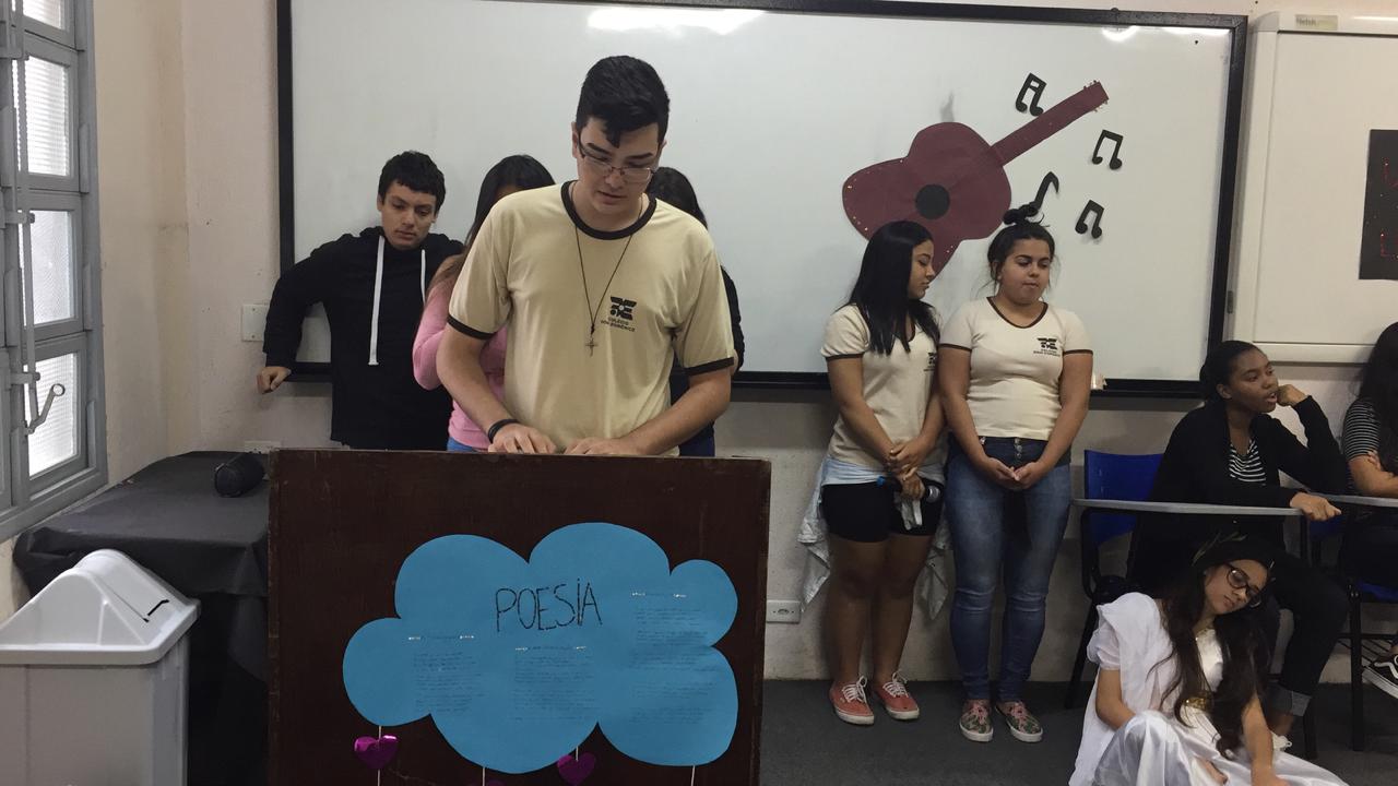 Os alunos do 2º Ano do Ensino Médio CA participaram de uma atividade diferente, o SARAU LITERÁRIO – Modernismo. “Os alunos fizeram uma pesquisa sobre o Modernismo, pois era o conteúdo a ser estudado este bimestre. Também foi usada a apostila de produção de texto onde o assunto abordado era jornal. Os alunos reproduziram uma reportagem com entrevistas e finalizaram com um blog”, afirmou a Leandro Queiroz.