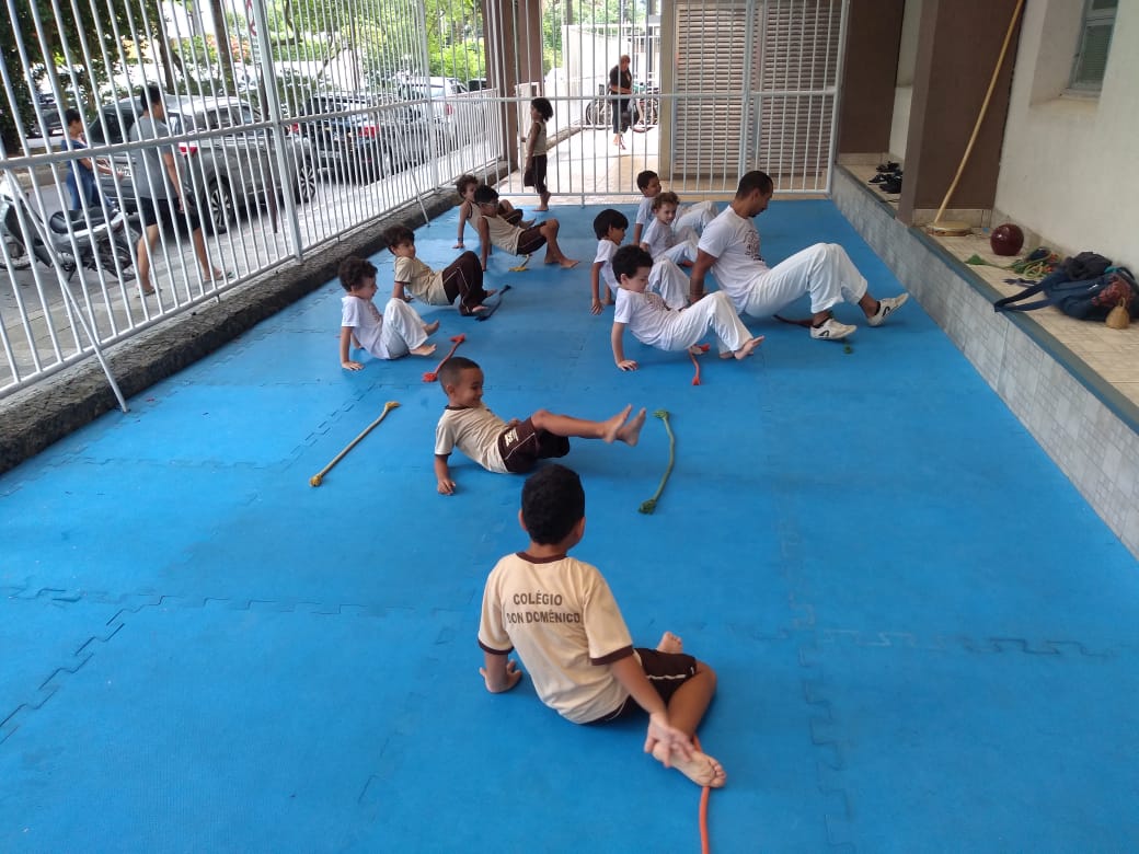 Na última semana, o Colégio Don Domênico deu início a uma série de atividades extraclasse, entre elas, a Capoeira Pedagógica que é sob responsabilidade do prof. Jabuti . As aulas reúnem alunos do Ensino Infantil e Fundamental I e II, divididos de acordo com a sua idade e conhecimento da capoeira. “Além de ser uma modalidade que estimula o exercício físico, as aulas servem ainda para trabalhar importantes princípios como a Educação, o Respeito, a Auto-estima a Cultura, Saúde, a Disciplina, a Coordenação motora e o Folclore”, afirma Jabuti.