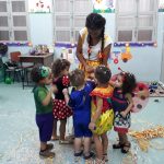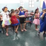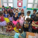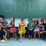 Em razão da chuva, este ano os alunos pularam carnaval de uma maneira diferente, utilizando as salas de aula e os corredores para a folia. A festa foi marcada por muitas músicas tradicionais do Carnaval, coreografias com fantasias, trenzinhos com princesas e super-heróis desfilando pelos corredores com muita alegria e diversão.