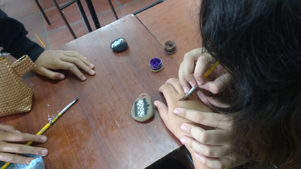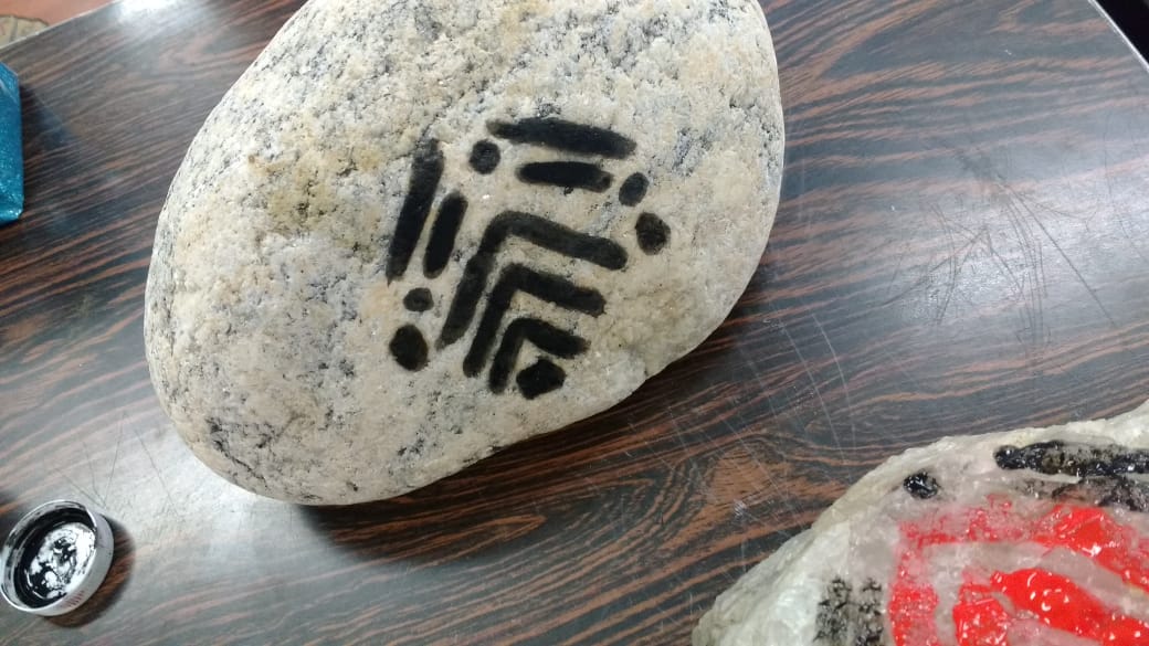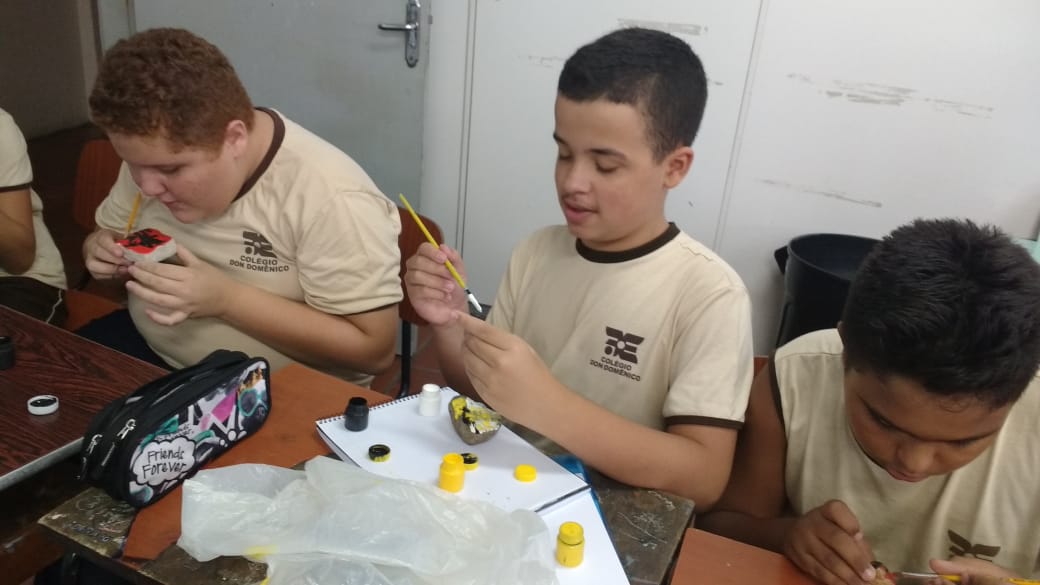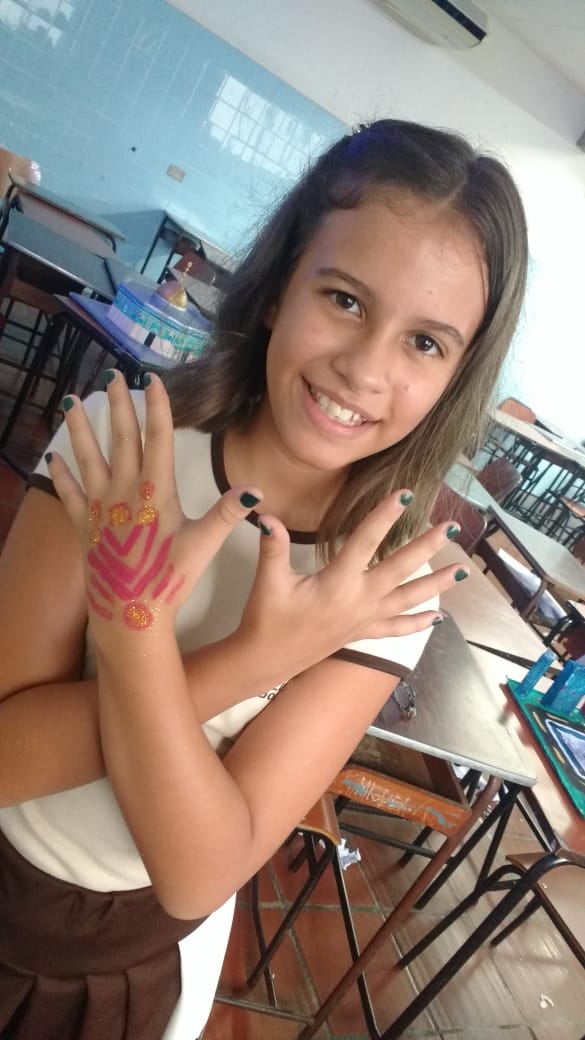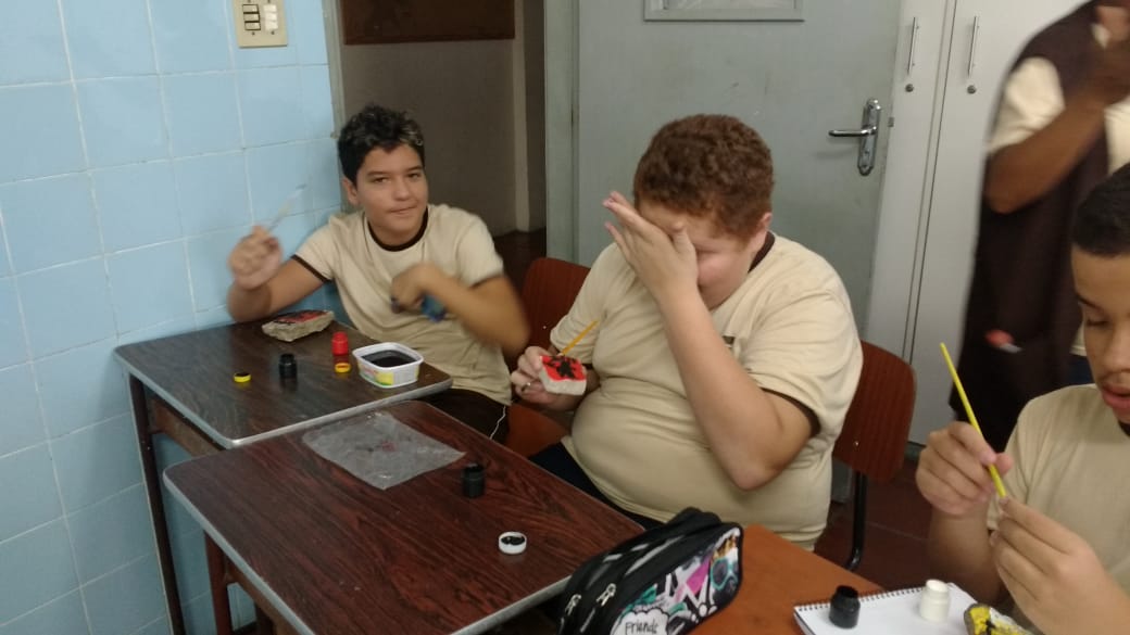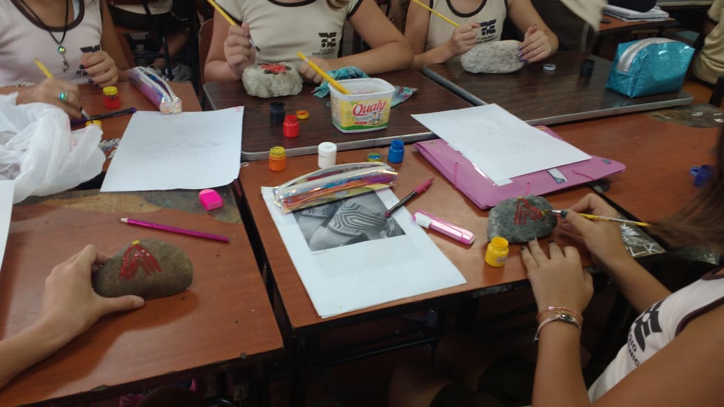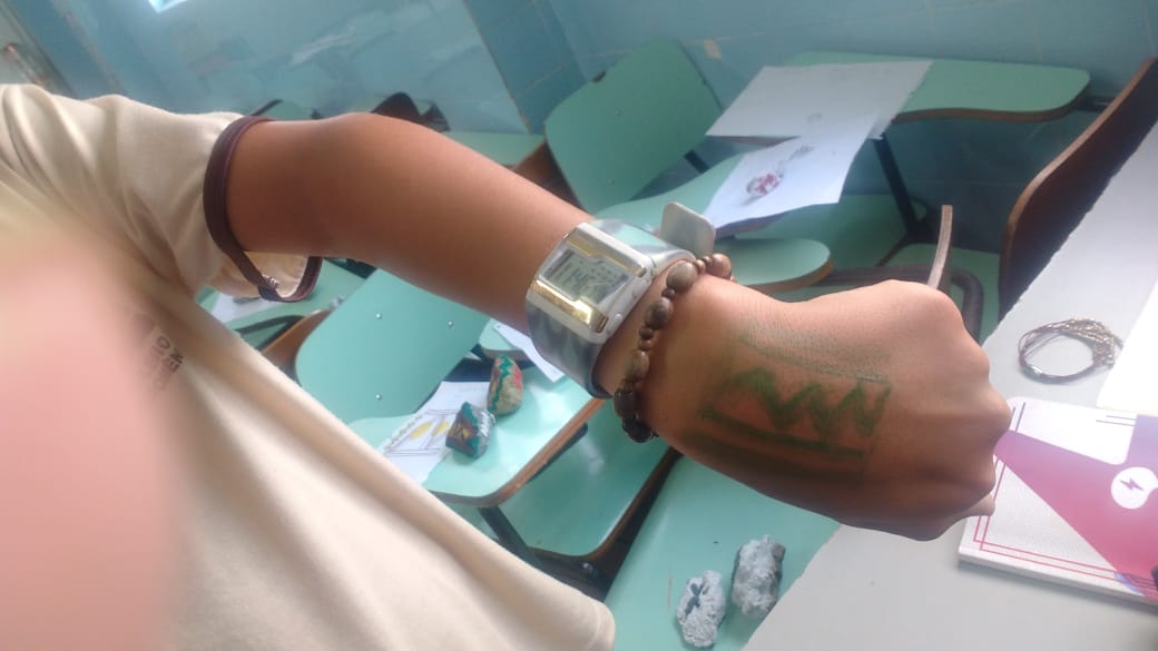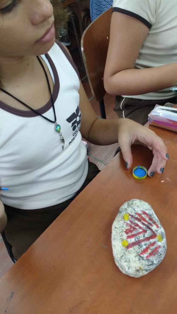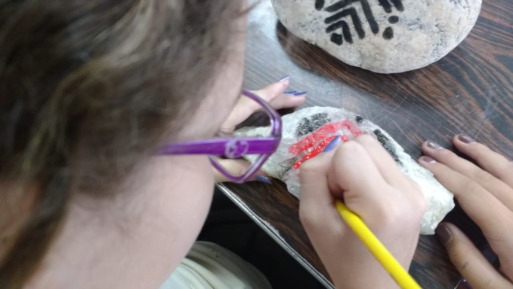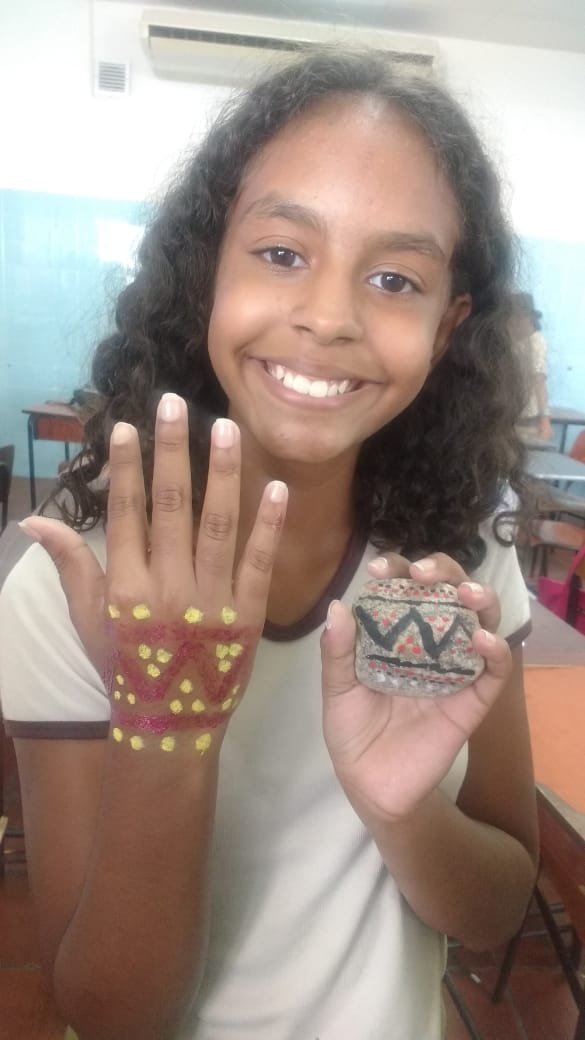 Ao fim da aula a profa. Ana Cristina com entusiasmo declarou: “eles foram muito criativos, desde a pintura nas pedras onde viram a dificuldade de desenhar numa pedra, até a pintura na pele, cada traço que fizeram com seus significados eles sem dúvidas me surpreenderam”.