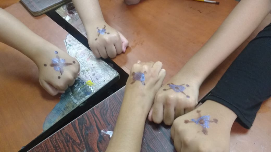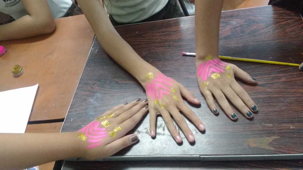 Na sequência, após pesquisarem sobre símbolos, os os alunos criaram em cada grupo “mini tribos” com “marcas próprias” utilizando a pintura corporal para demonstrarem seu trabalho. “Foi muito divertida a atividade, pudemos conhecer diversos símbolos e exercitar nossa criatividade”, afirmou um dos alunos envolvido na atividade.
