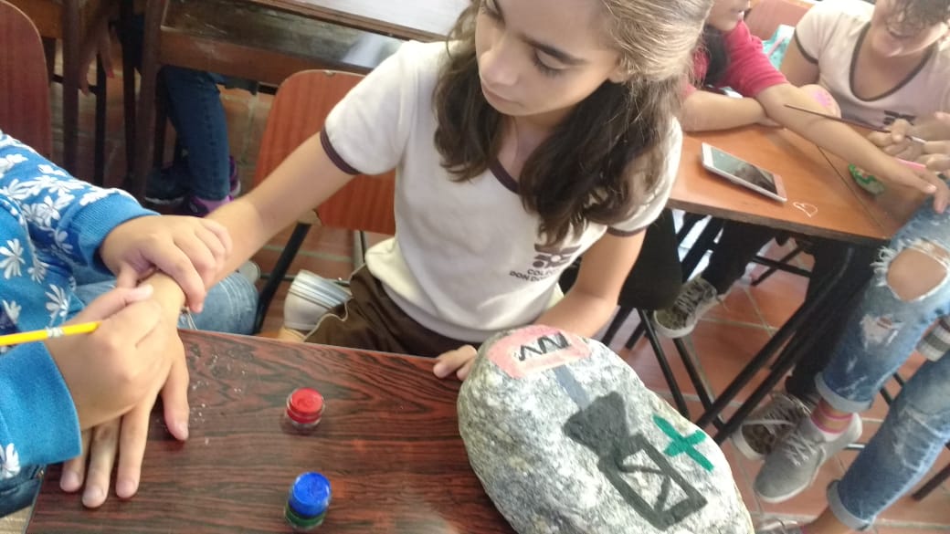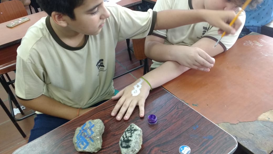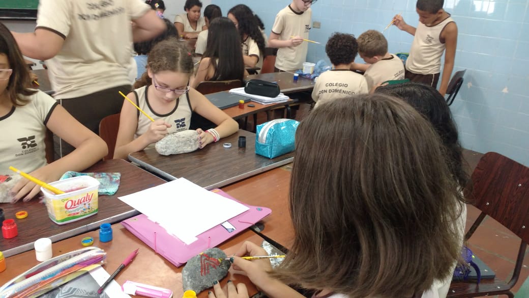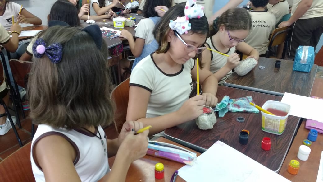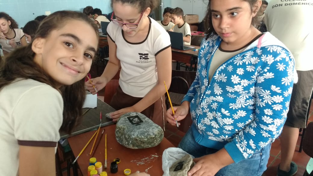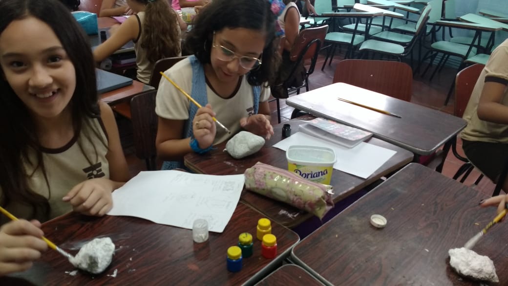 “Eu pedi que eles trouxessem pedras que encontrassem na praia, ou em algum outro lugar, mas que estivessem limpas e com as pedras eles fizeram as pinturas rupestres e cada uma ficou mais linda que a outra”, afirmou Ana Cristina.