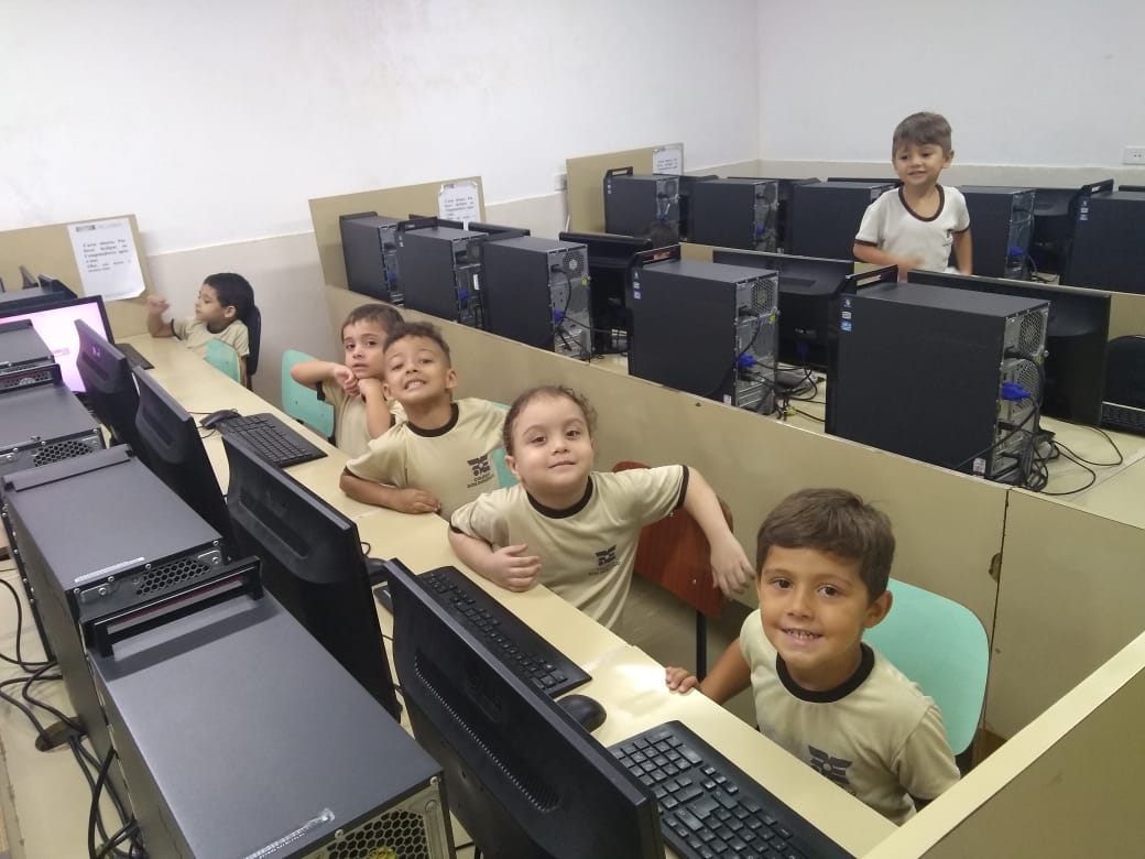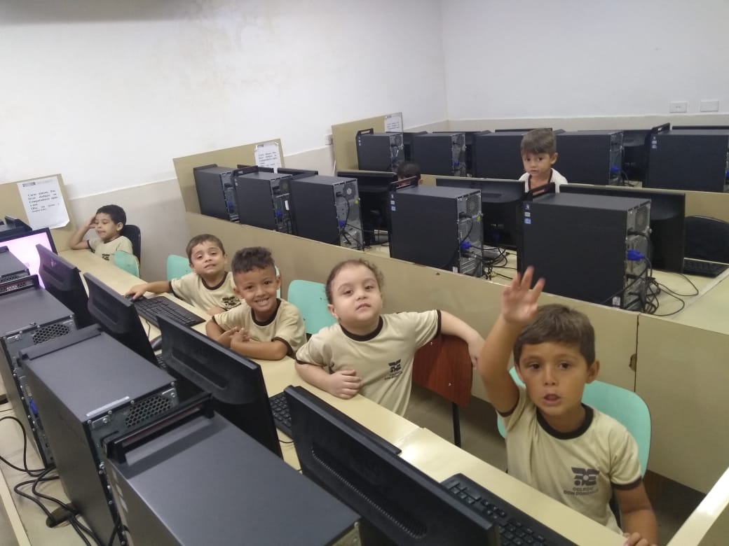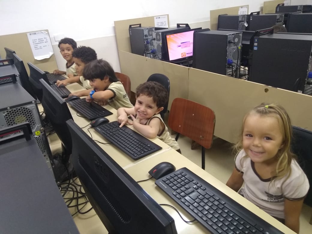 Os alunos do Pré I das professoras Katia e Sabrina participaram da 1ª aula de informática do ano. O professor Nelson Giuzio começou a aulas ensinando os alunos a se ambientarem com os computadores e os softwares educacionais disponíveis, com jogos pedagógicos para facilitar o primeiro contato dos alunos com o computador. “Os alunos estão aprendendo a usar a sua criatividade e coordenação motora enquanto brincam. Também aprendem funções básicas como mexer com o mouse e apertar as teclas com cuidado para não se machucarem e sem danificar as maquinas”, afirmou.
