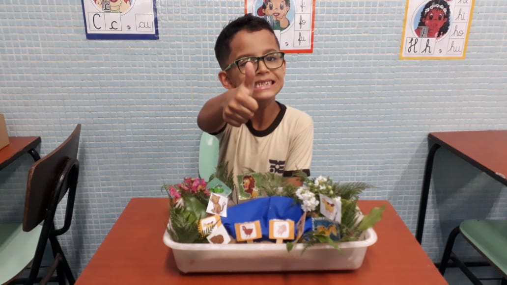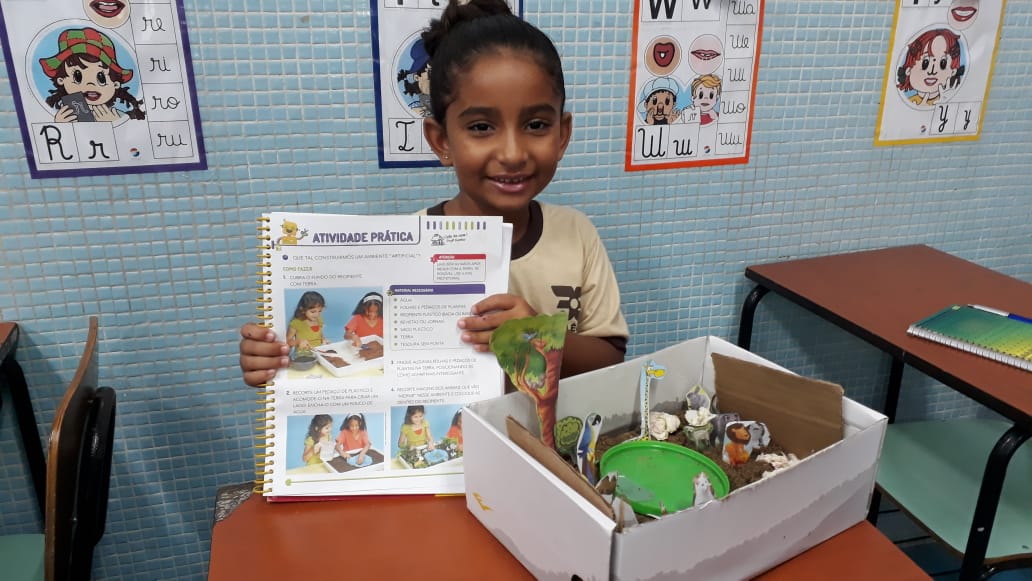 Os alunos se engajaram na atividade. “Foi muito legal fazer esse projeto. A minha mãe e o meu pai me ajudaram, fomos até o meu avô para ele me dar um pouco de terra do jardim dele. Adorei colocar as mãos na areia”, afirmou a luna Dafny Oliveira Cavalcante de apenas 7 anos de idade.