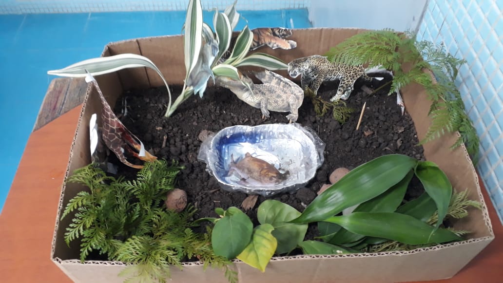 Os alunos do 2º BT participaram de uma atividade diferente baseado na Seção “Diferentes Ambientes”, da apostila de Ciências, na qual foram discutidos os diversos ambientes existentes no planeta terra. “Pedimos aos alunos que criassem seus próprios ambientes com terra, água e animais, como forma de colocar em prática os temas abordados em sala de aula de uma forma lúdica e dinâmica”, afirmou a professora Karina.