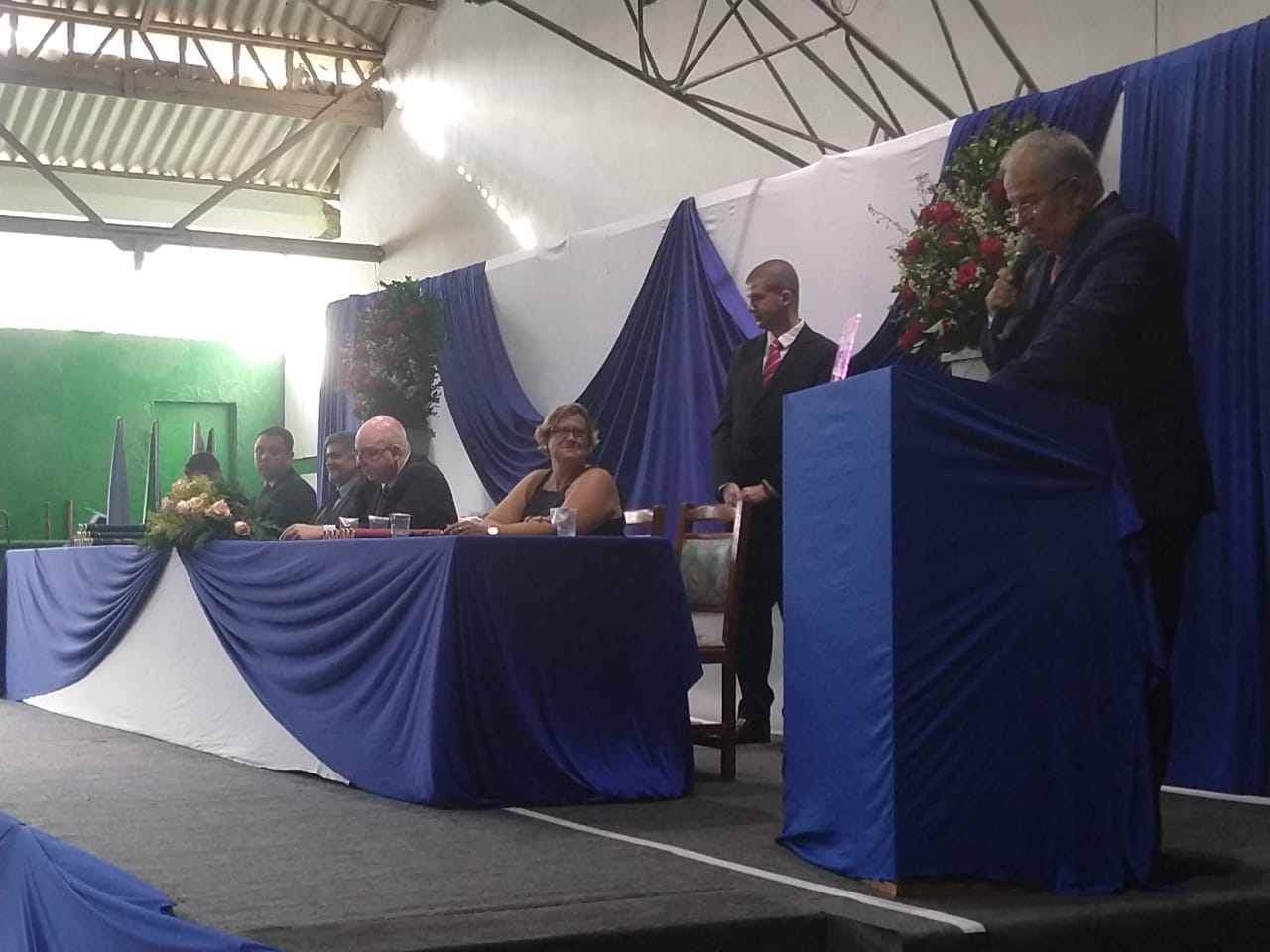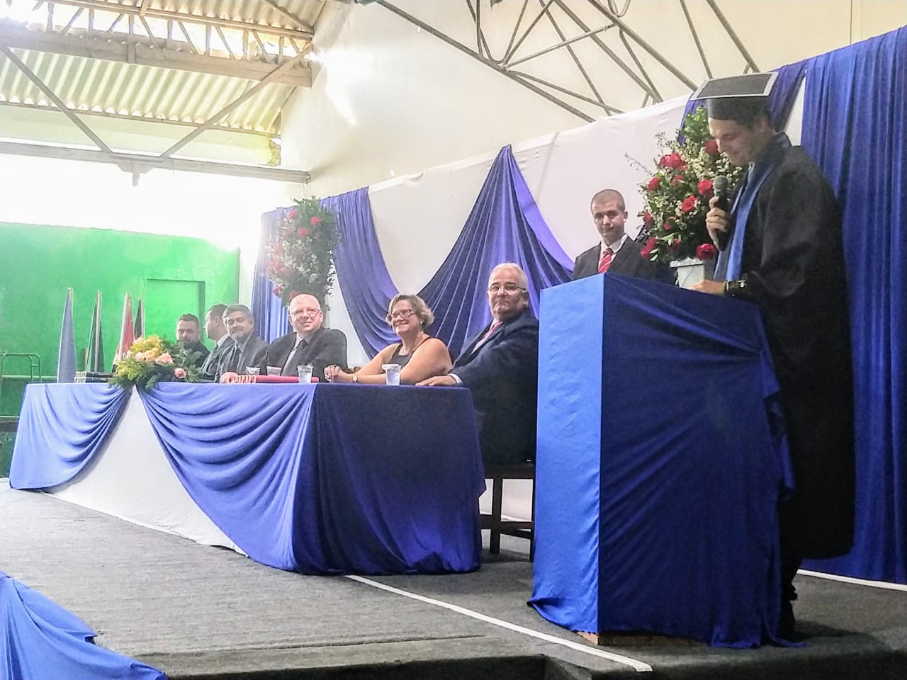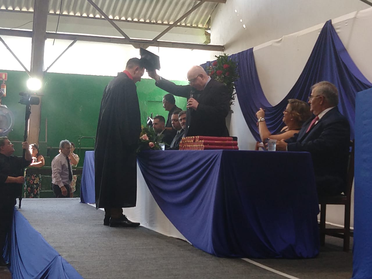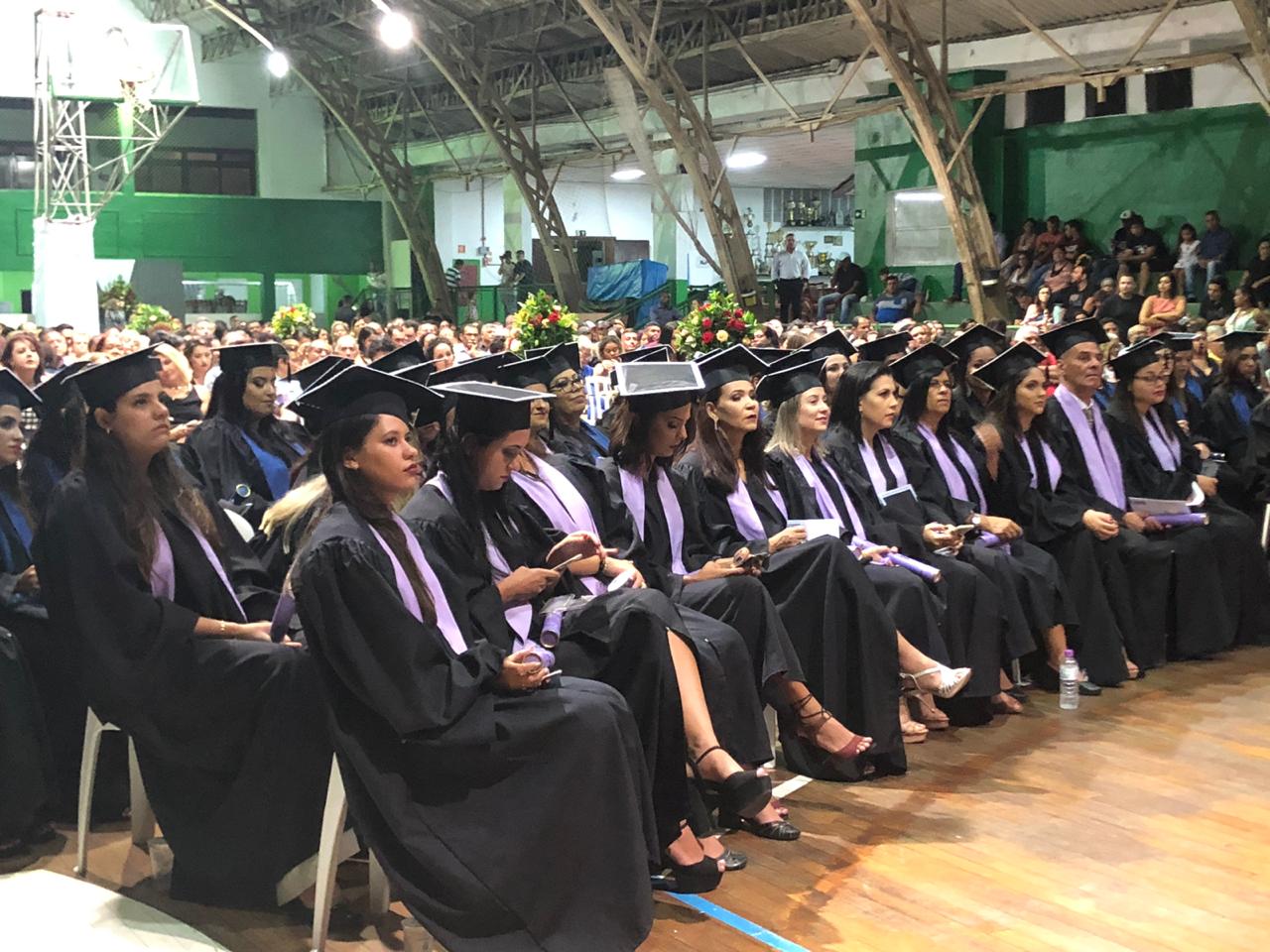 Aproximadamente 500 pessoas participaram da cerimônia que foi dividida em duas partes. Na primeira, os alunos de Administração e Ciências Contábeis receberam o grau e, na sequência, os alunos de Letras e Pedagogia. Excepcionalmente neste ano, a cerimônia ocorreu na sede do Vila Souza Atlético Clube, em razão de obras no Centro Esportivo Don Domênico.