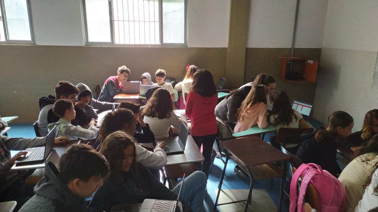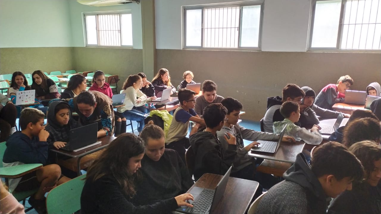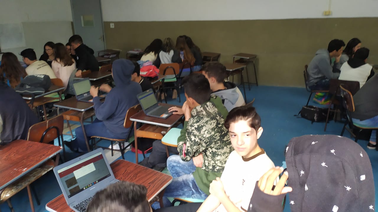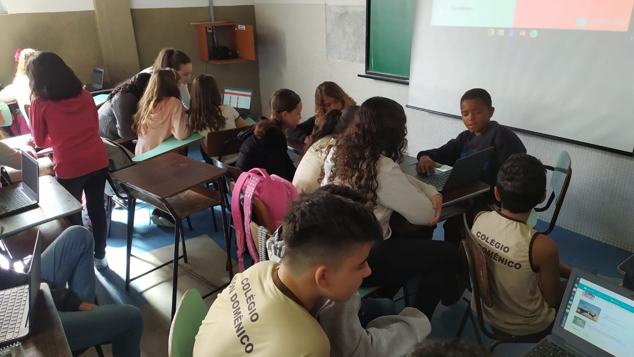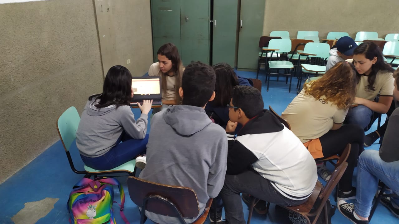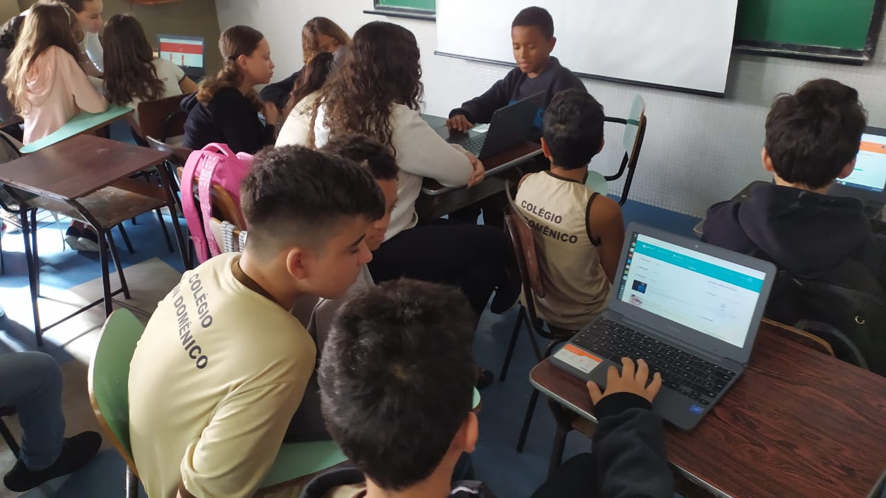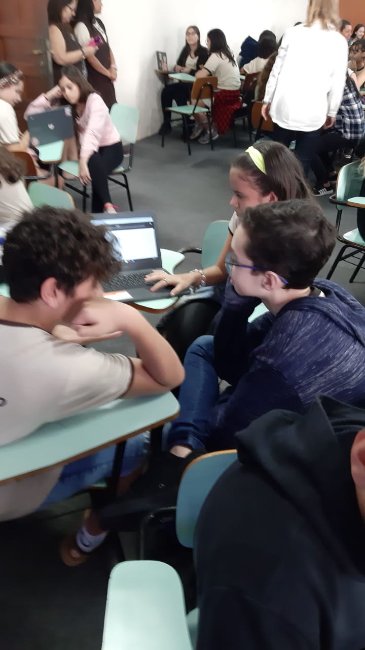 Os alunos do 6º ano do Ensino Fundamental II e 1º Ano do Ensino Médio que utilizam a Plataforma Educacional Geekie One participaram de uma ação coordenada pelos professores José Tartanhar e Gisele Dutra que consistia na apresentação do sistema para os alunos do colégio que ainda não estão contemplados no programa.