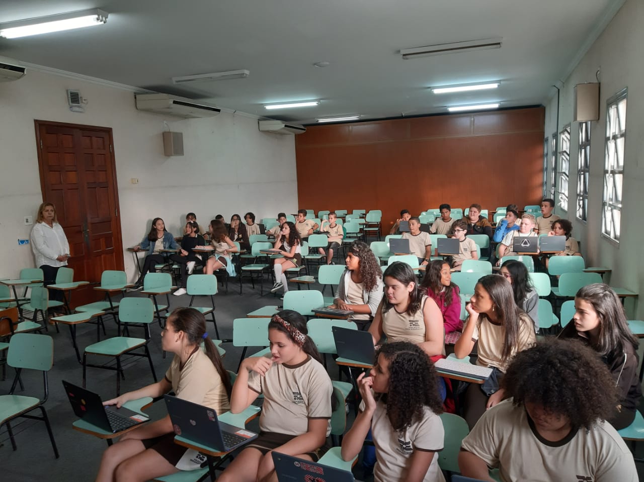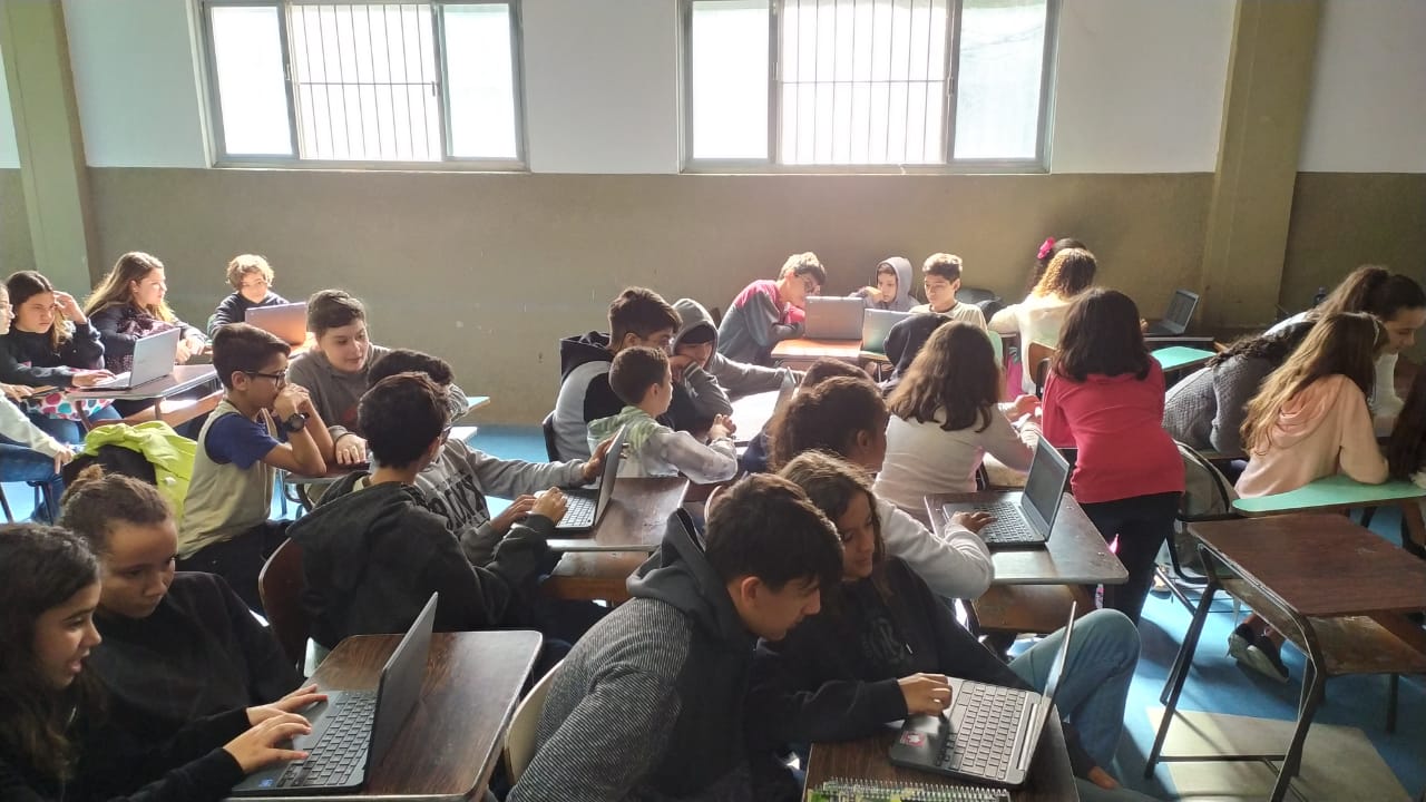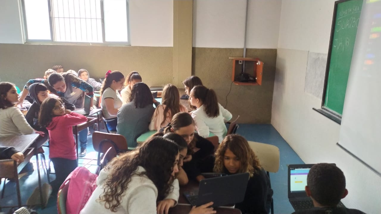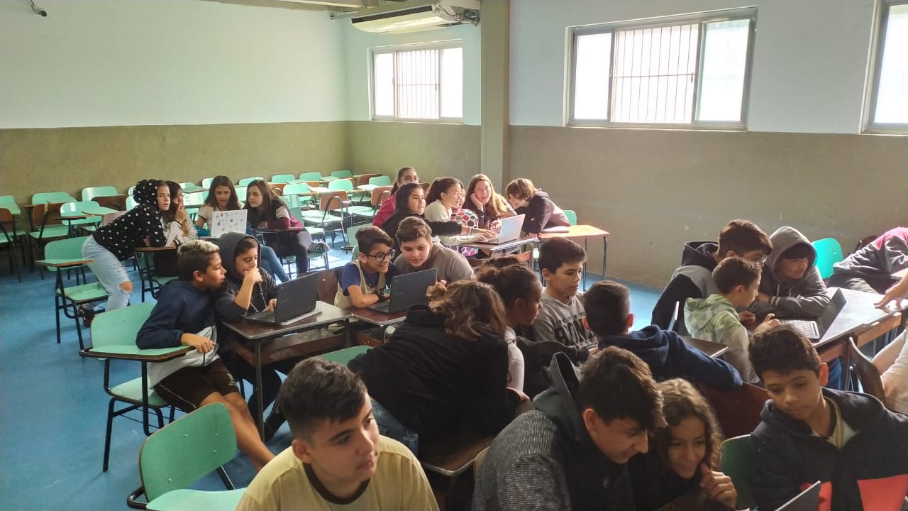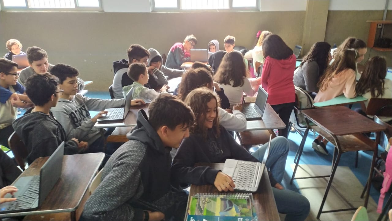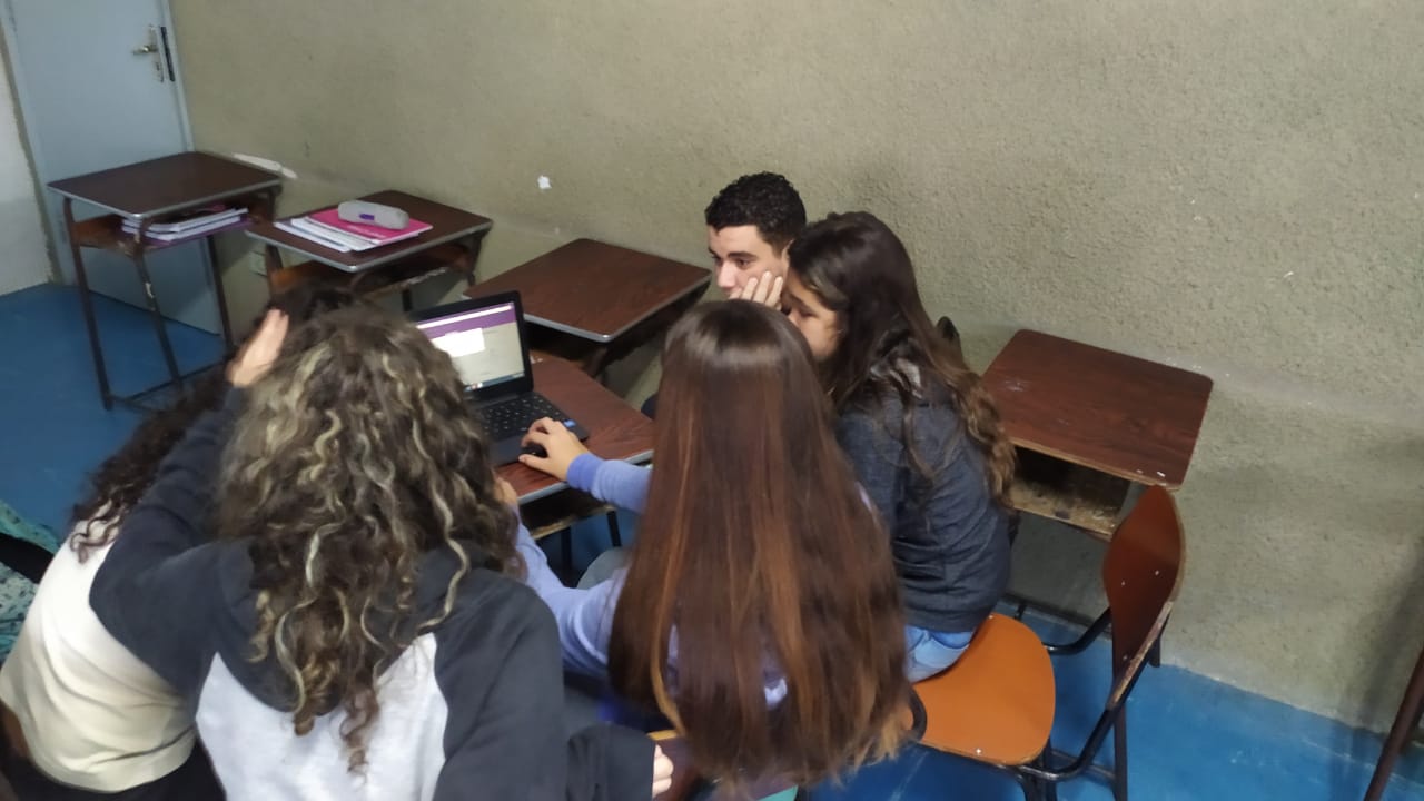 Os alunos do 6º ano do Ensino Fundamental II e 1º Ano do Ensino Médio que utilizam a Plataforma Educacional Geekie One participaram de uma ação coordenada pelos professores José Tartanhar e Gisele Dutra que consistia na apresentação do sistema para os alunos do colégio que ainda não estão contemplados no programa.