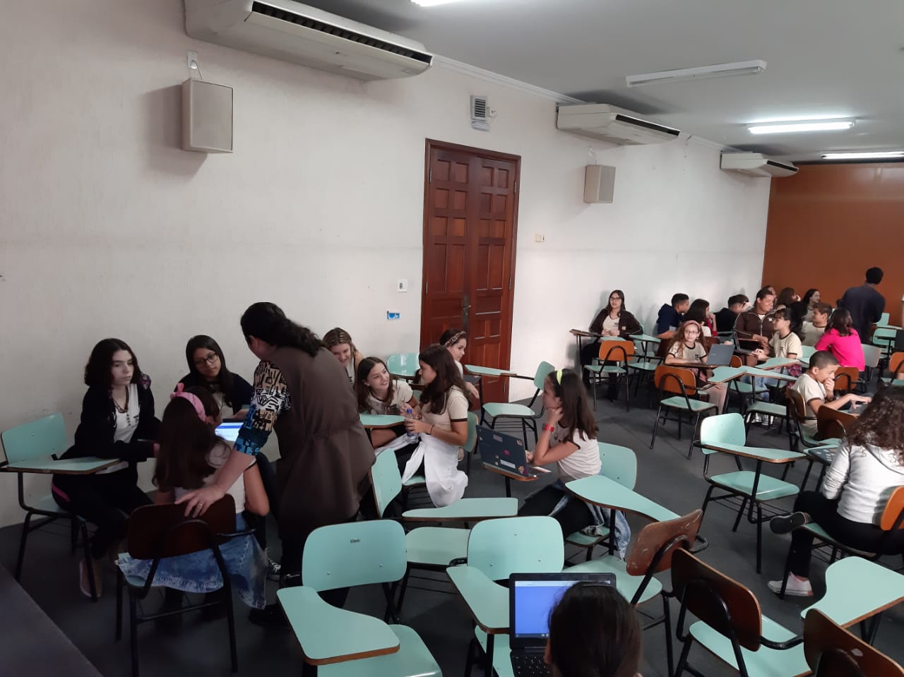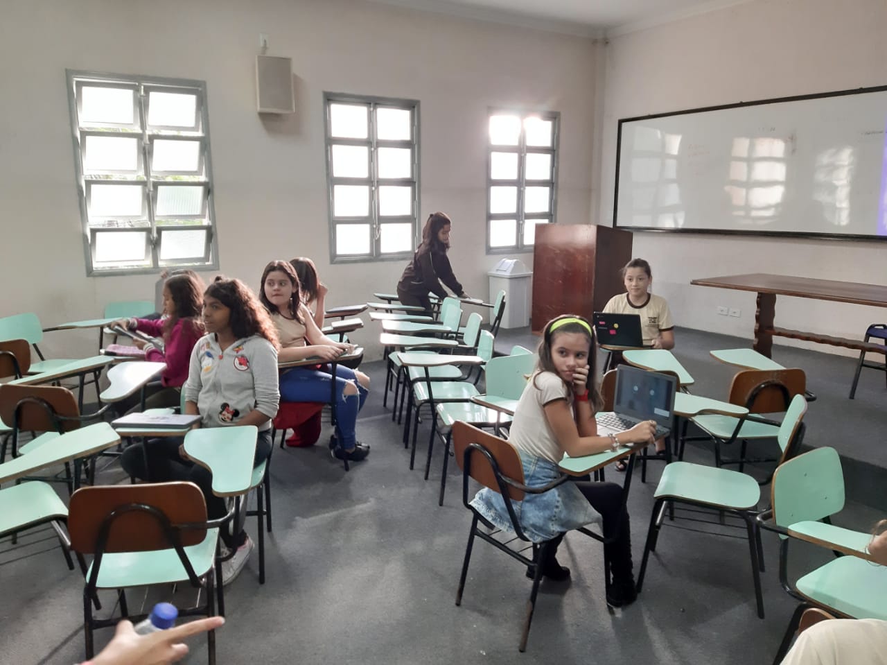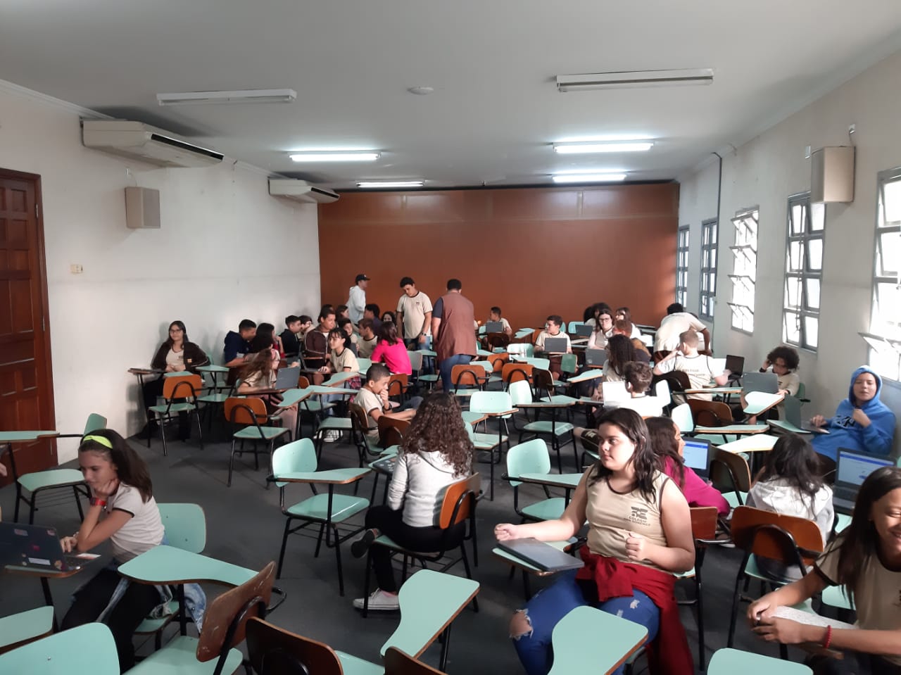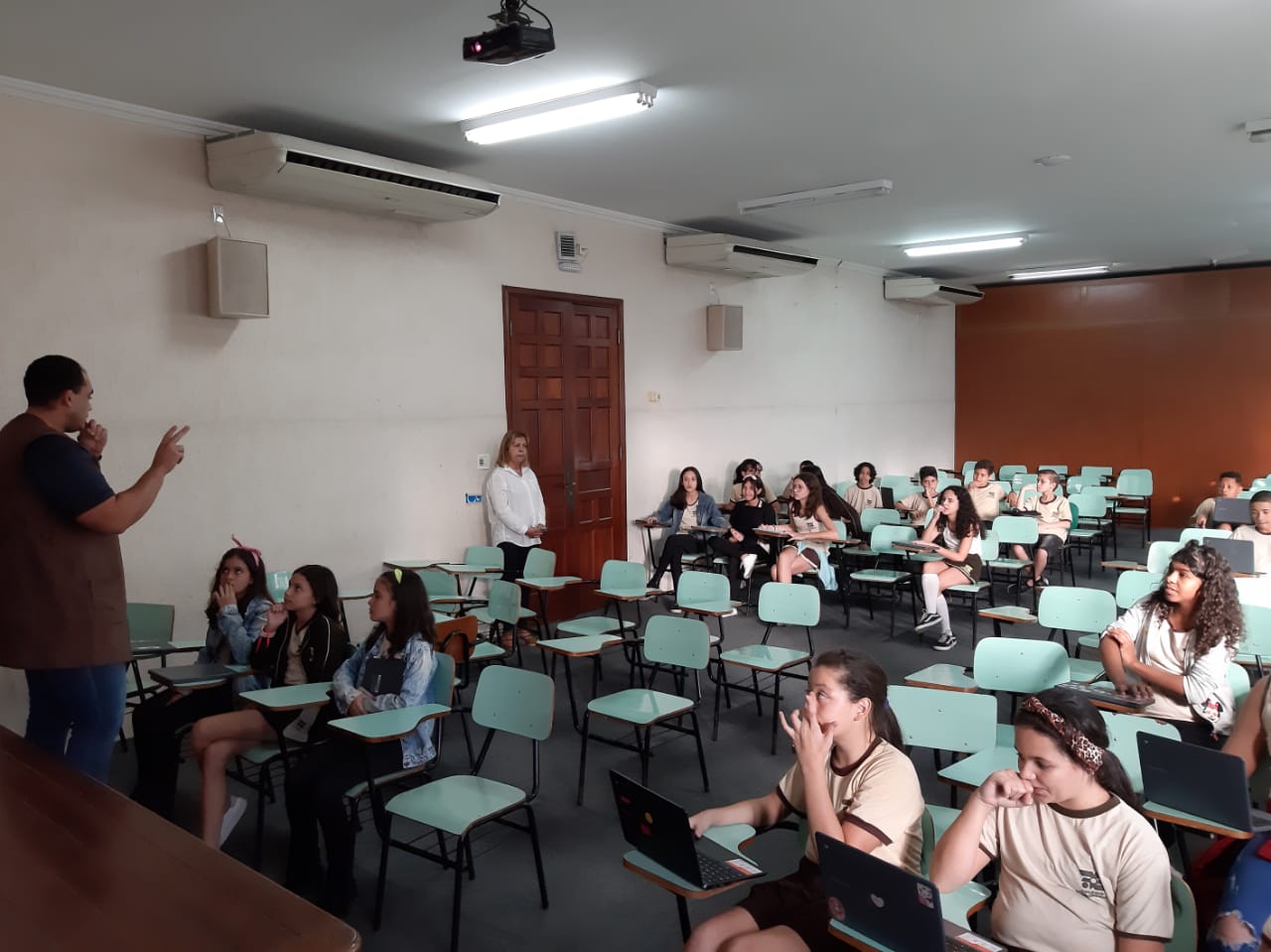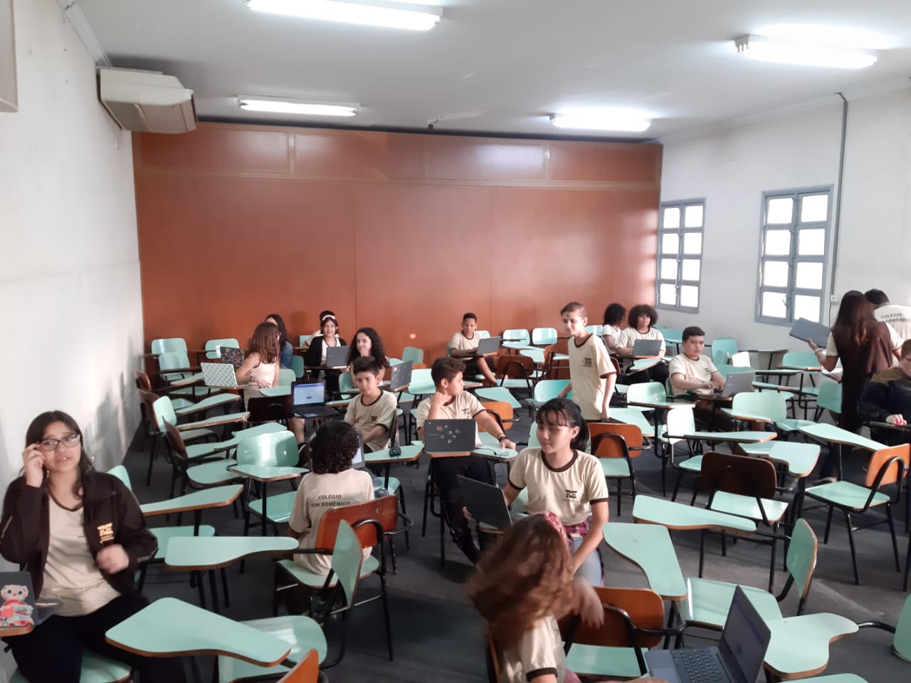 Os alunos do 6º ano do Ensino Fundamental II e 1º Ano do Ensino Médio que utilizam a Plataforma Educacional Geekie One participaram de uma ação coordenada pelos professores José Tartanhar e Gisele Dutra que consistia na apresentação do sistema para os alunos do colégio que ainda não estão contemplados no programa.