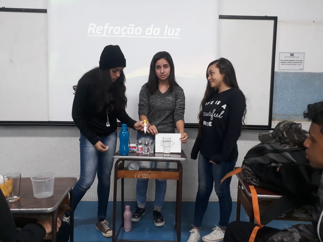 Com o objetivo de avaliar o grau de absorção pelos alunos do conteúdo sobre Luz e Ondas, as Profa. de Ciências Suzeli Gil pediu aos alunos que demonstrassem na forma de uma apresentação aquilo que aprenderam durante as aulas. “Um dos pontos interessantes é que todos os grupos de alunos que apresentaram foram bem, cada um explicando da sua forma, mas todos conseguiram passar os principais conceitos relacionados à matéria em questão”, afirmou Suzeli.