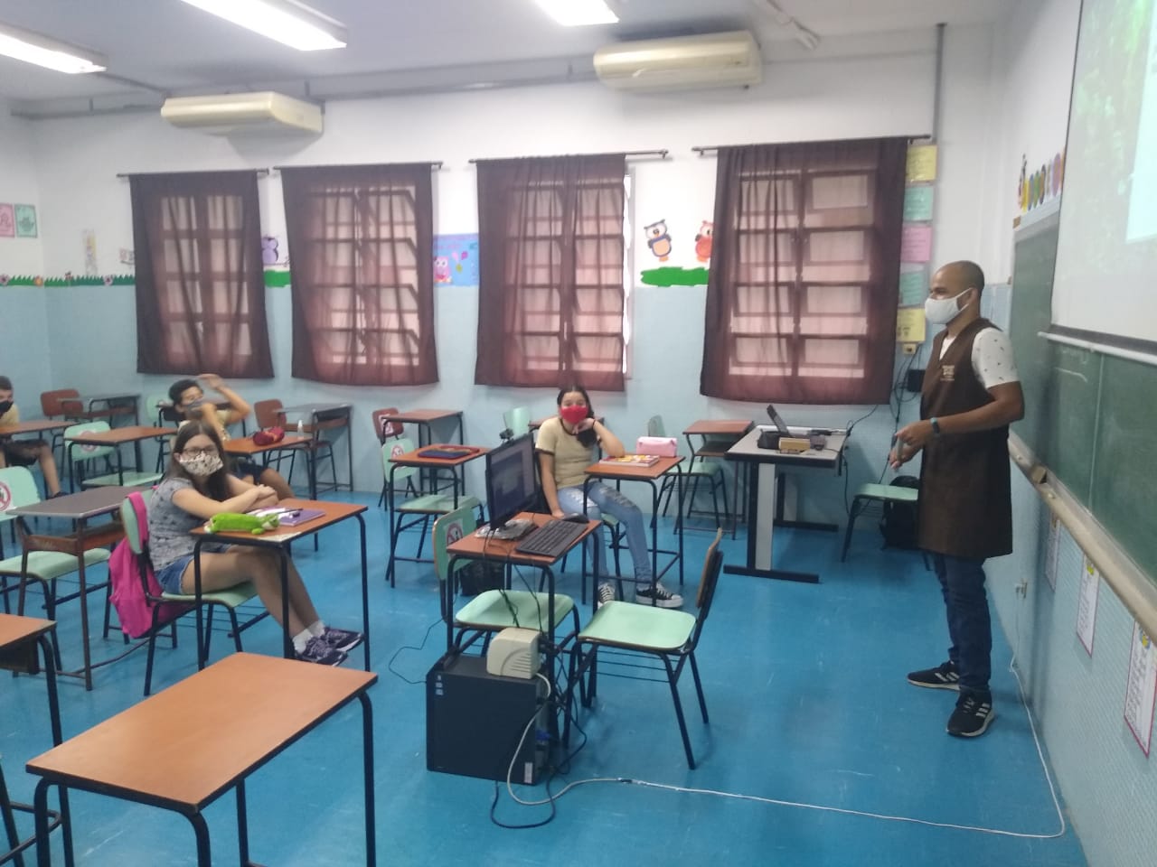 No cenário atual o colégio está adotando o ensino híbrido, tendo alunos dentro da instituição e de forma remota. Para isso, todas as salas contam com equipamentos que permitem que os alunos acompanhem as aulas presencialmente e em suas casas. “Investimos em tecnologia que permite que possamos desenvolver nossas atividades de forma eficaz, sem prejuízo para os alunos presentes e os que optaram por ficar em casa”, lembra o coordenador Pedagógico, Dennis Campos.